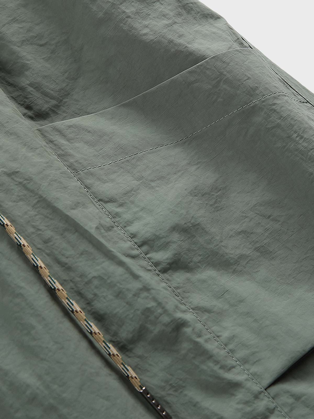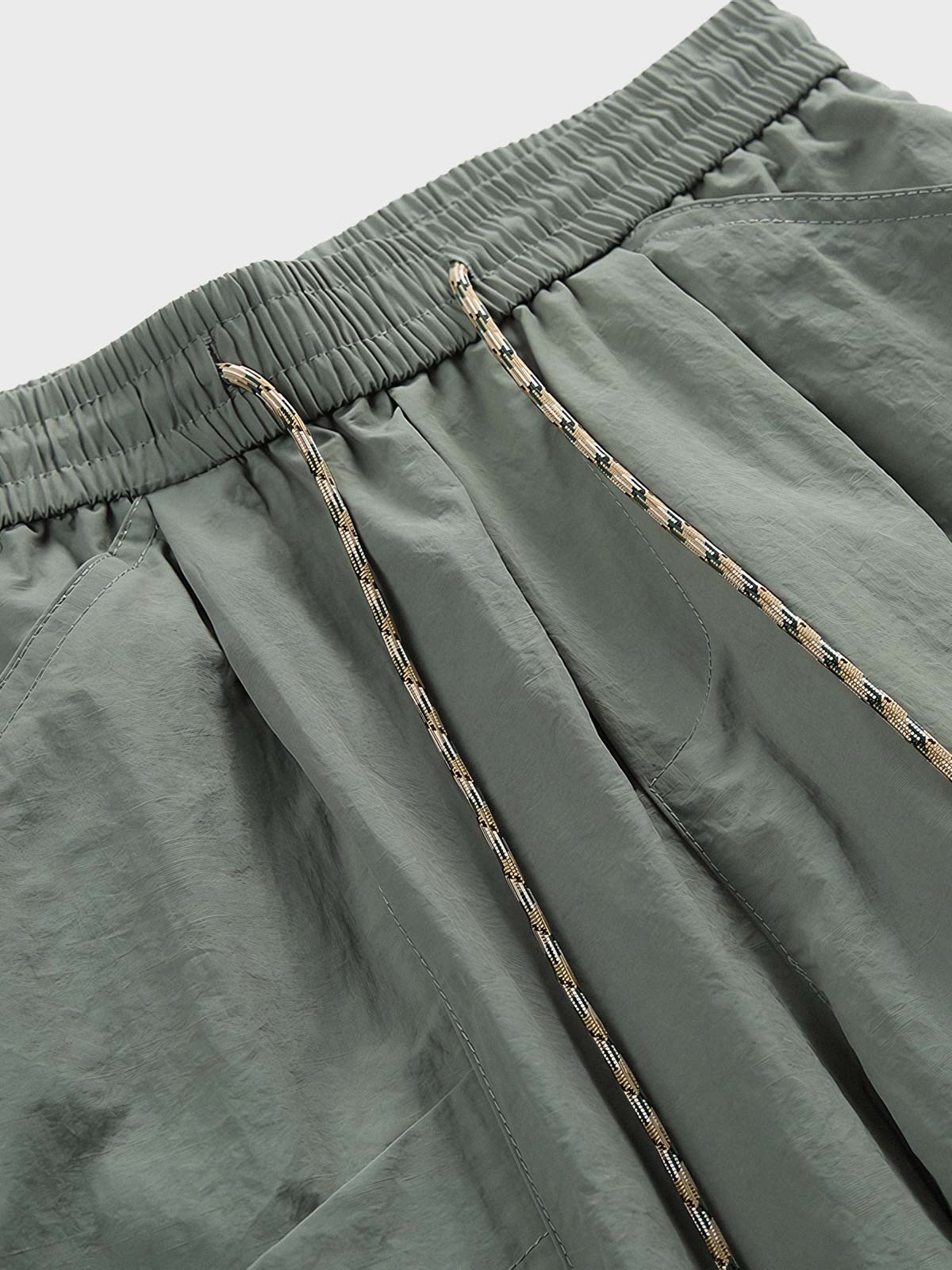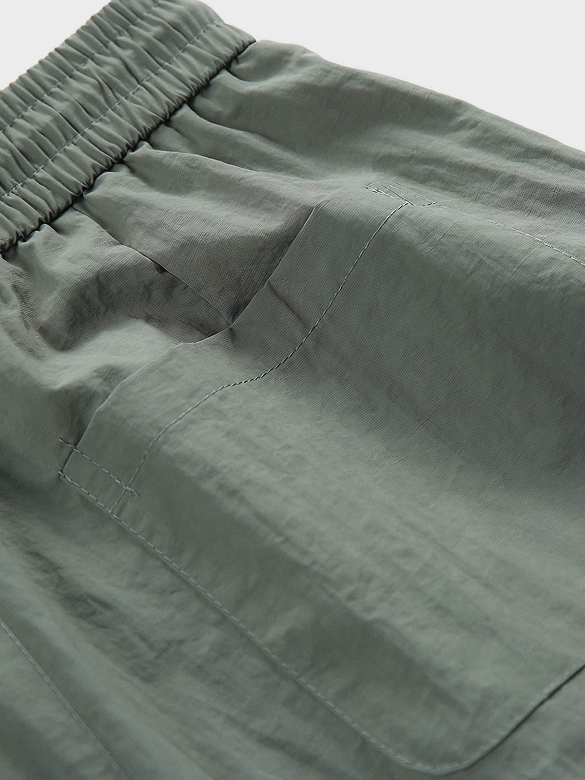 ウエストはゴムとドローストリングで調節可能であり、リラックスしたフィット感を提供します。ストレートカットのシルエットは動きやすさを考慮しており、日常のあらゆるシーンでの快適な着用感を約束します。