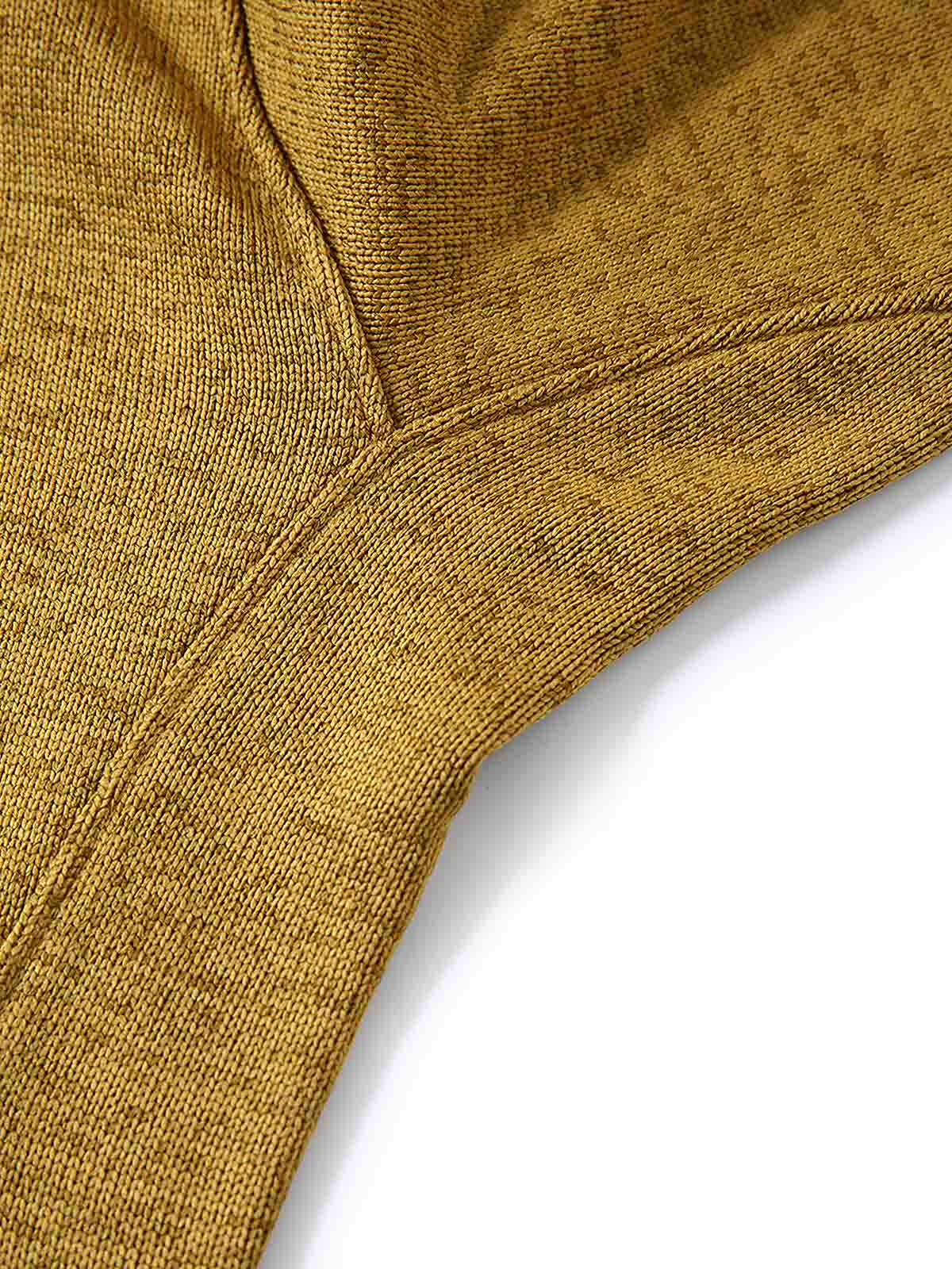 このスタンドカラーフリースジャケットは、多孔構造(ポーラス構造)を採用したマイクロポーラス膜技術により、透湿度5000g/m²/24h以上を実現しています。湿気を効率的に排出し、ムレを軽減しながら快適な着用感を提供します。4方向ストレッチ素材を使用し、優れた伸縮性と耐久性を備え、360°自由な動きをサポートします。内側は起毛仕様で、柔らかく滑らかな肌触りを実現します。高い蓄熱性を持ち、通常のコットン素材の3倍の保温性を発揮します。軽量で通気性にも優れており、ムレ感を防ぎつつ快適な着用が可能です。スタンドカラーデザインが防風性と保温性を高め、首元に立体感をプラスします。前身頃には立体メッシュ素材を内側に採用し、吸湿性と通気性を強化しています。背面の起毛素材が恒温性を向上させ、アウトドアや日常の多様なシーンで活躍する機能性とデザイン性を兼ね備えた一着です。