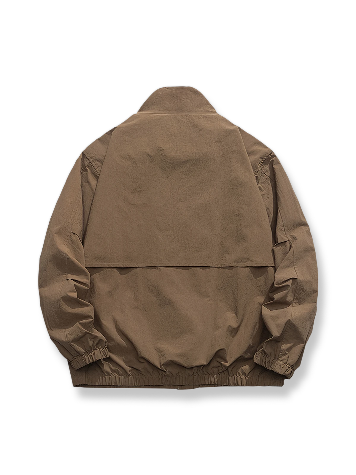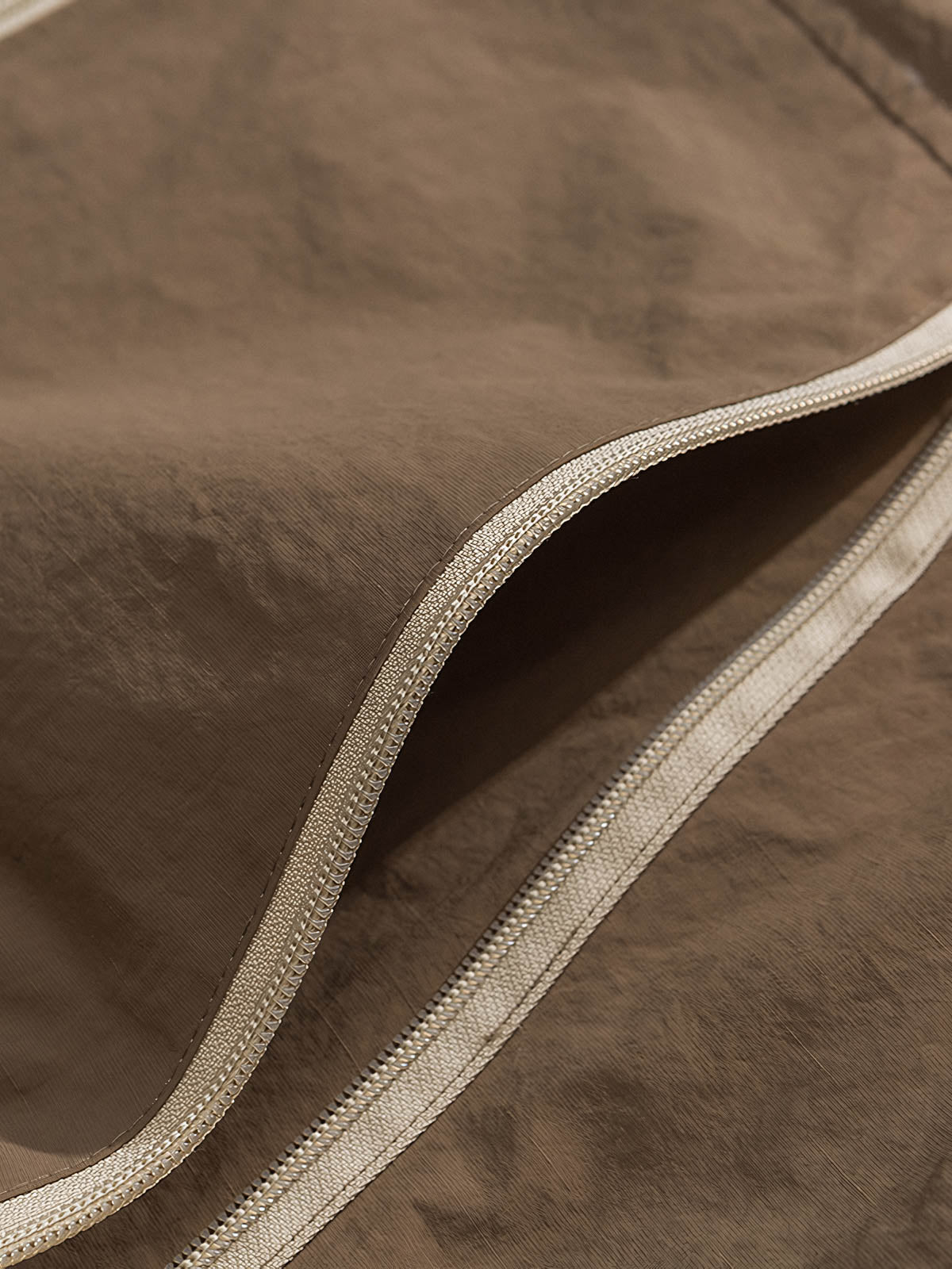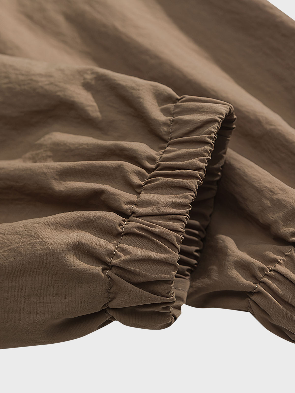 ゆとりのあるシルエットと軽量な生地の使用は、活動中の快適性と自由な動きをサポートします。ゴム製の裾と袖口は風の侵入を防ぎ、保温性を提供します。