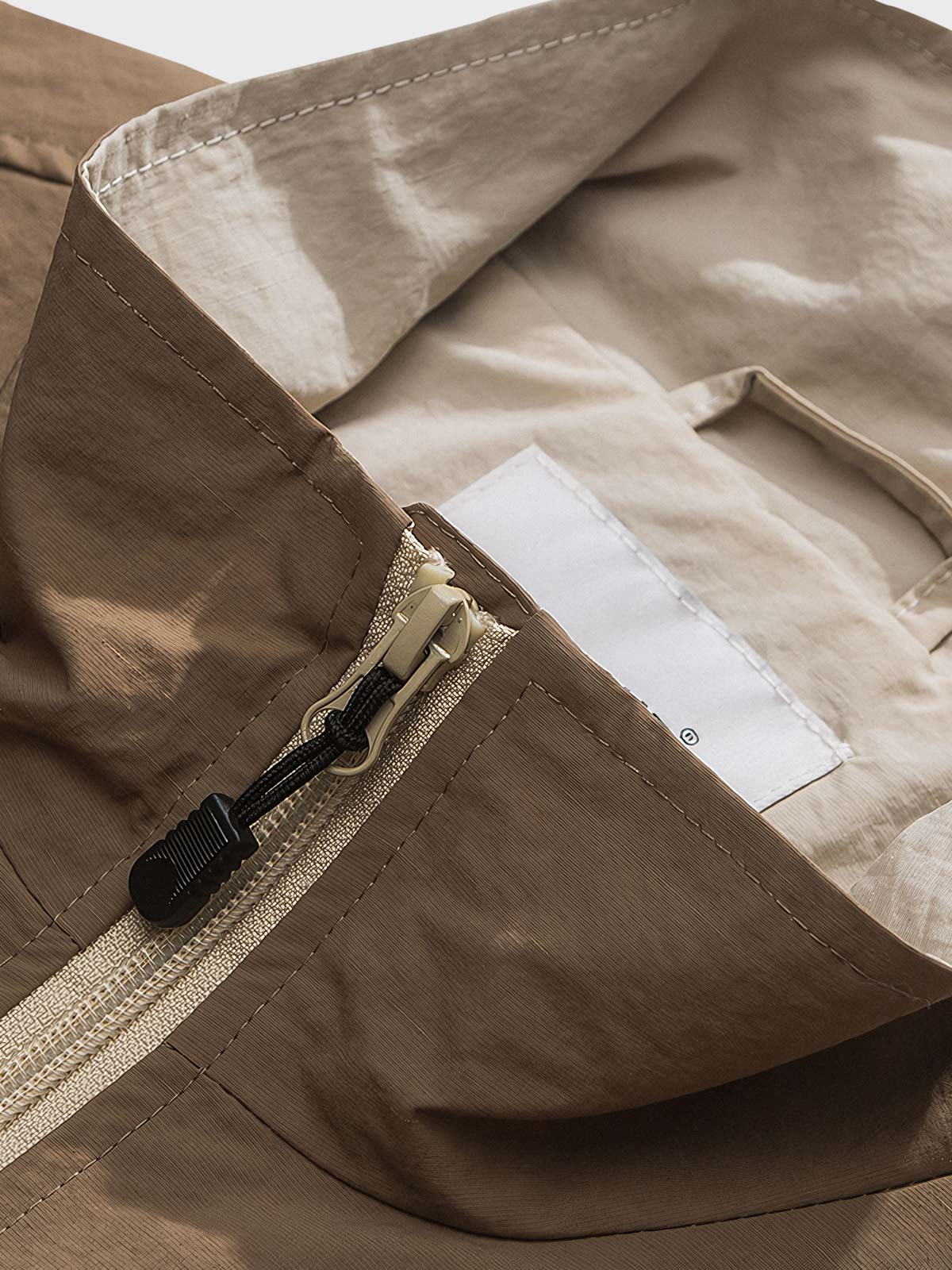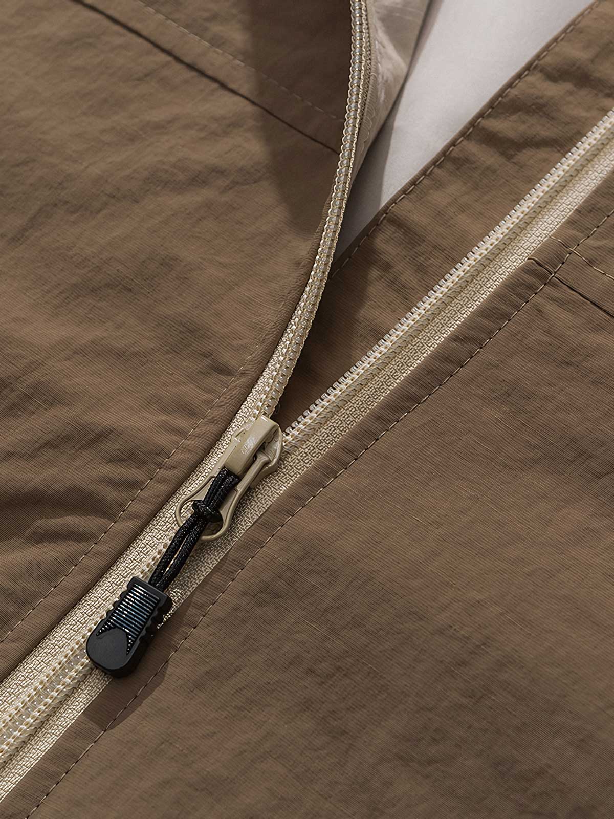 このジャケットは、機能性を重視したアウトドアウェアと都市的なライフスタイルの融合からインスピレーションを得ています。配色の切り替えが特徴で、モダンでスタイリッシュなアウトドアアクティビティへの適応性を示しています。