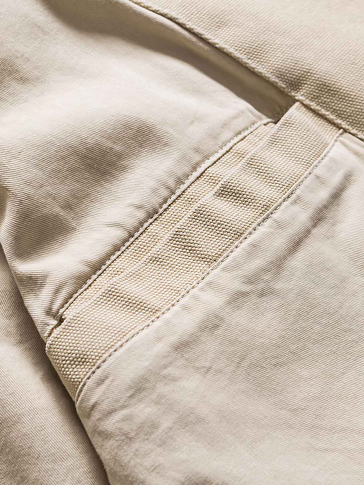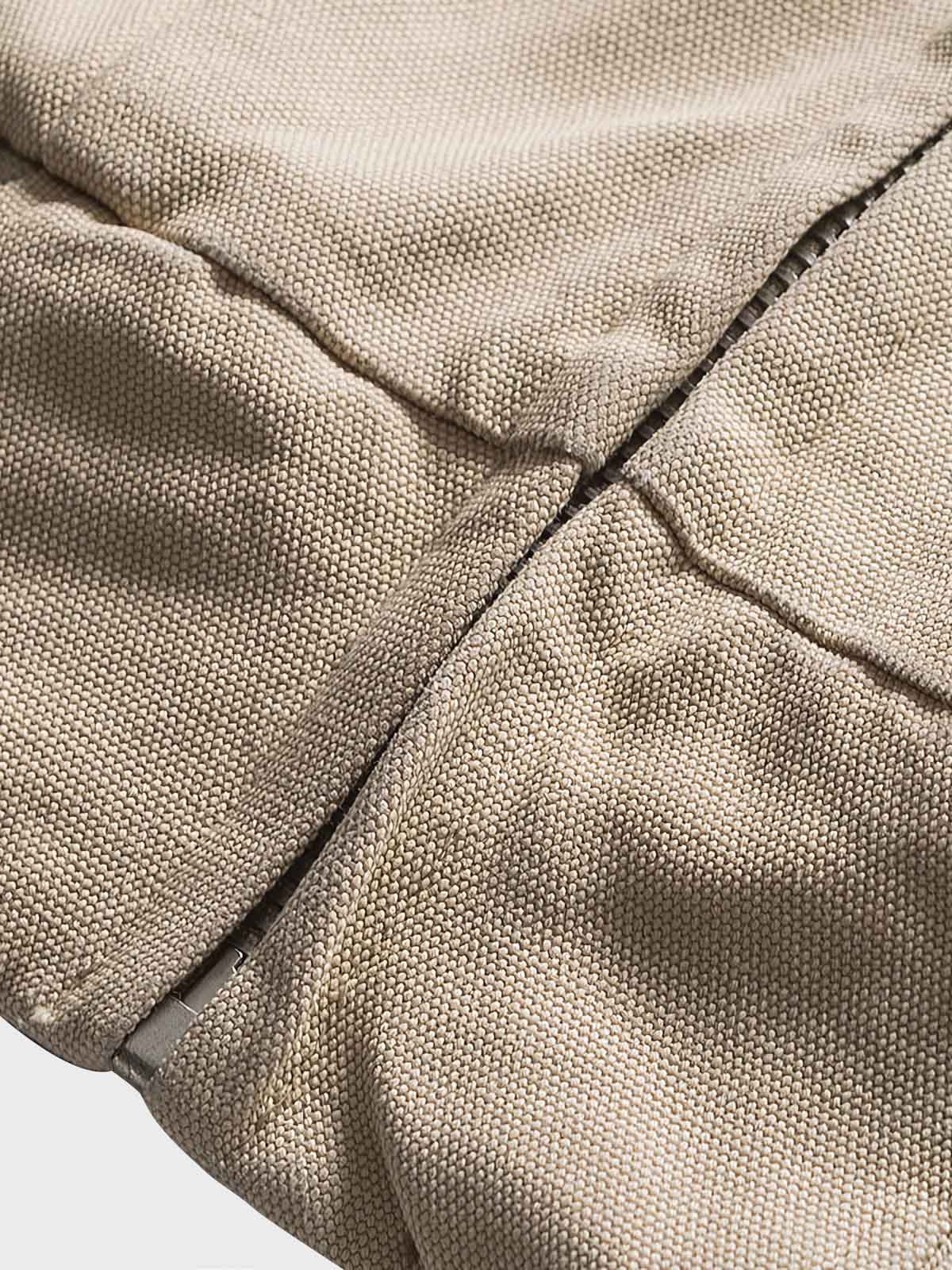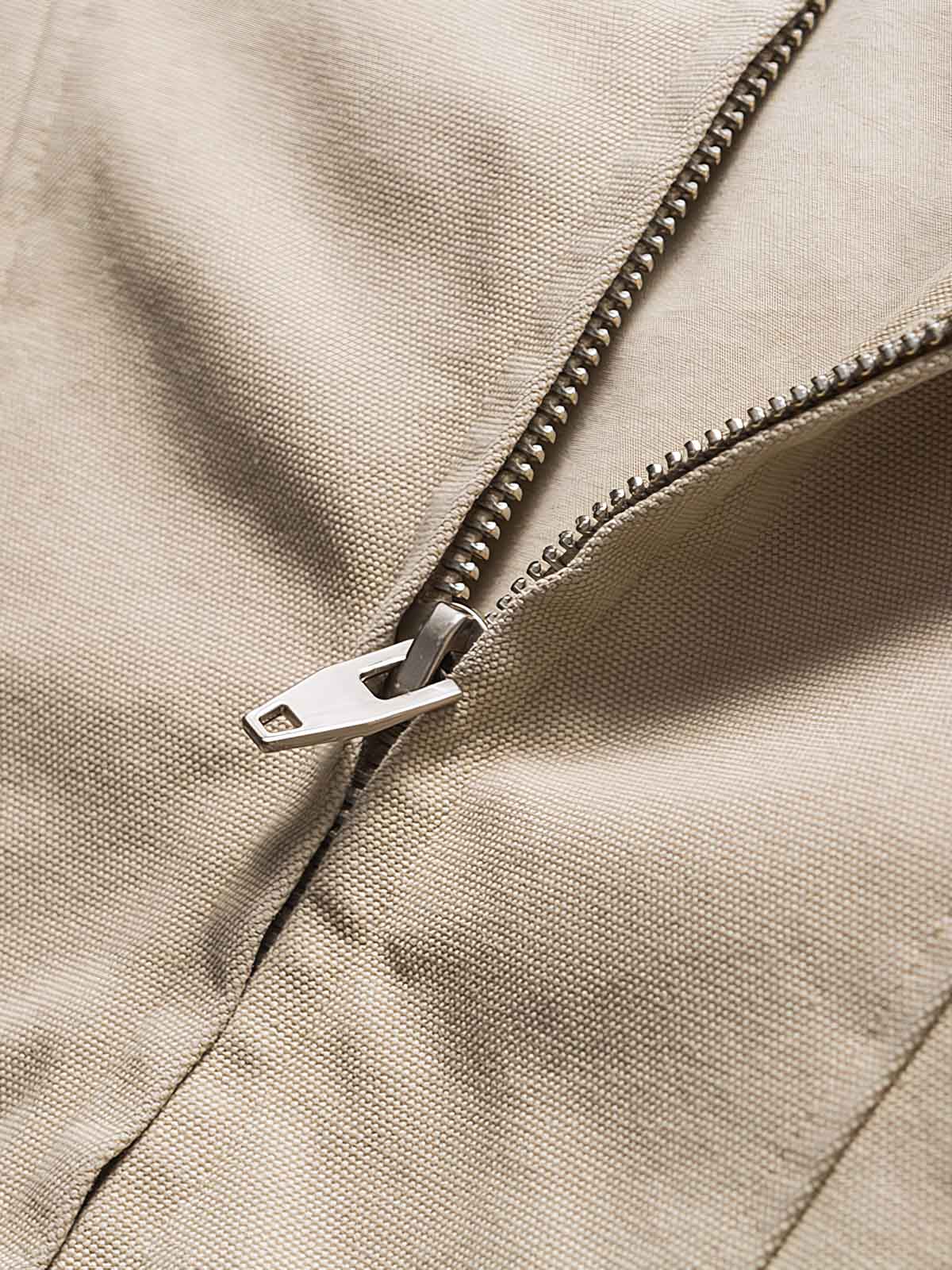 シルエットはリラックスフィットで、運動性を損なうことなく快適な着用感を実現しています。袖口と裾のリブニットは体のラインを拾いつつ、自由な動きを妨げない設計になっており、都市生活におけるアクティブな動きに対応します。