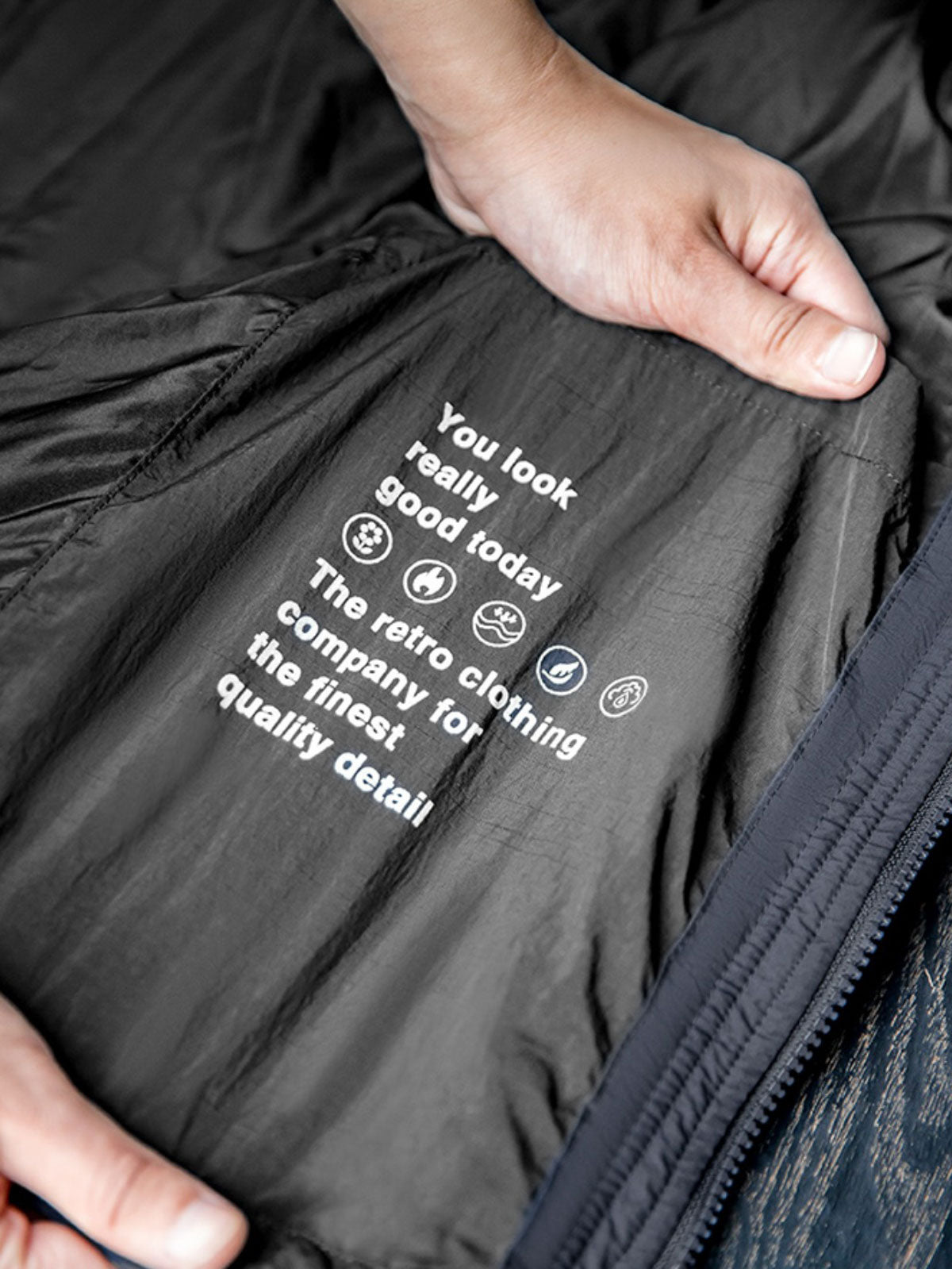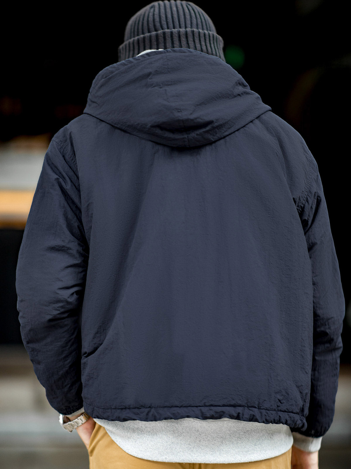 このジャケットは通常、暖かさと耐久性を兼ね備えた高密度の生地で作られています。内部には薄手で保温性に優れた絶縁材料が使用されており、秋や冬に適しています。フロントのボタンはシンプルで実用的であり、素早く着脱できるように設計されています。