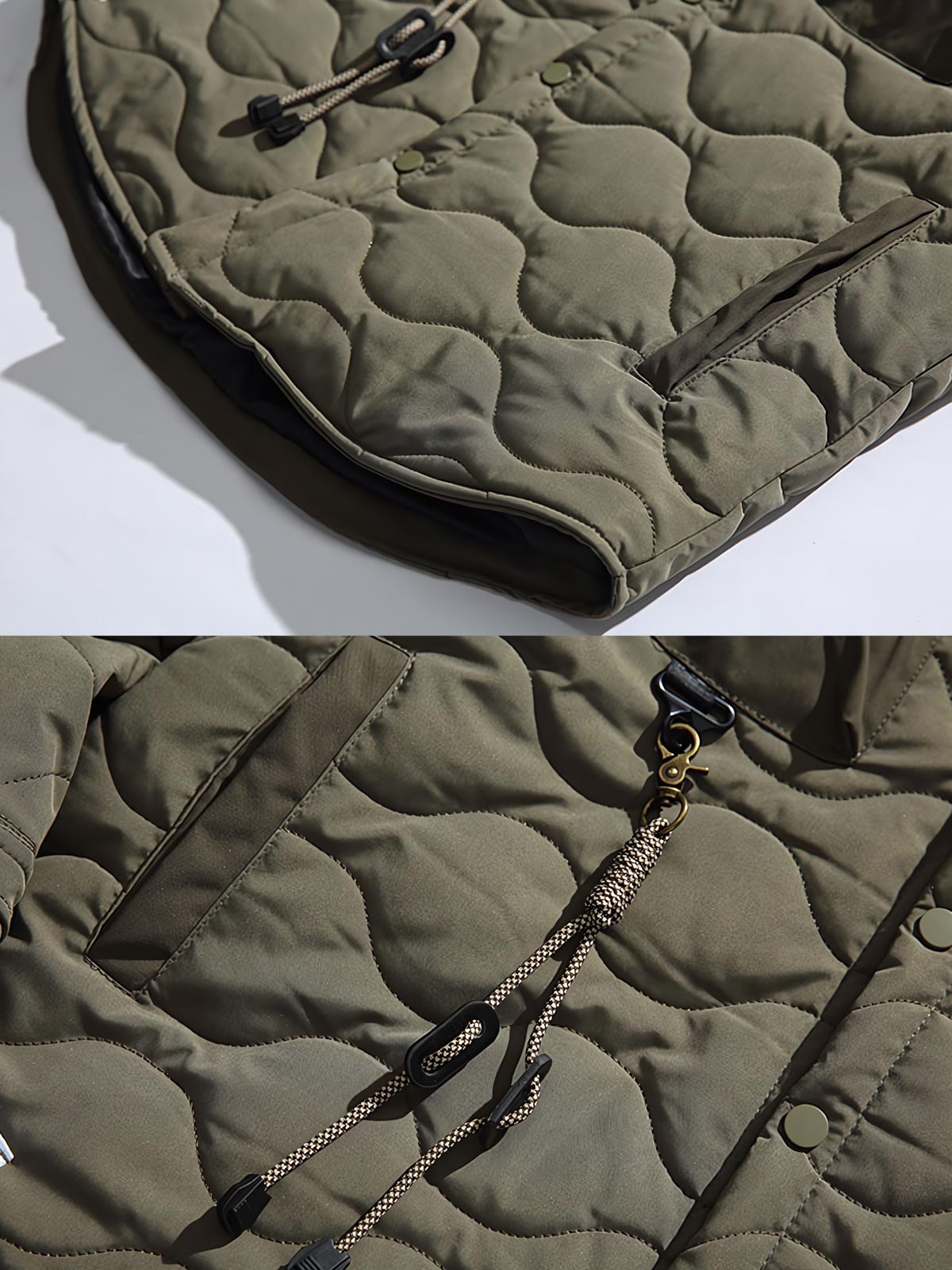 これらのコットンジャケットは、現代の都市服とクラシックな服装の要素を融合させています。ディテール面では、実用的なポケットと調節可能なドローストリングが機能性を高めています。高品質のジッパーとボタンは耐久性を強調し、細かなステッチと象徴的なバッジはブランドの特徴を加えています。