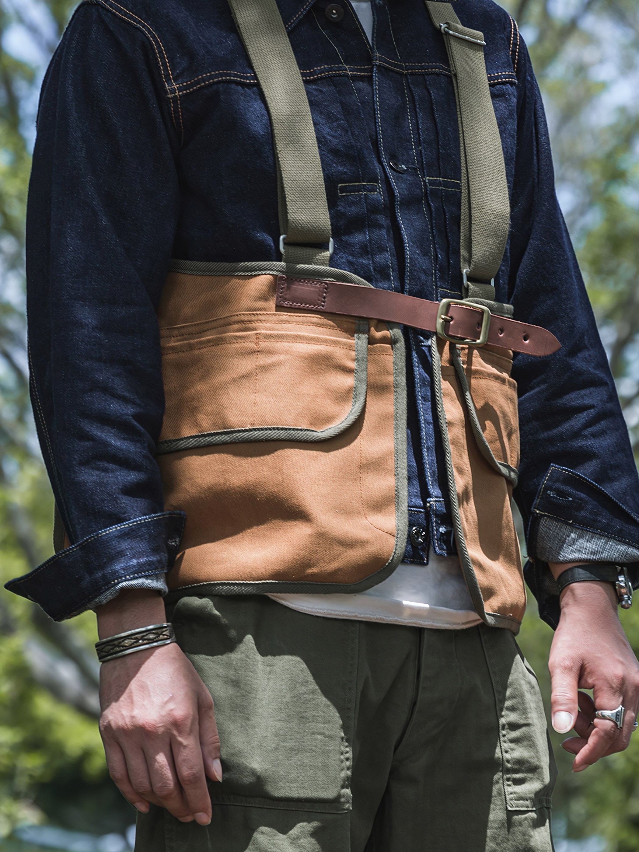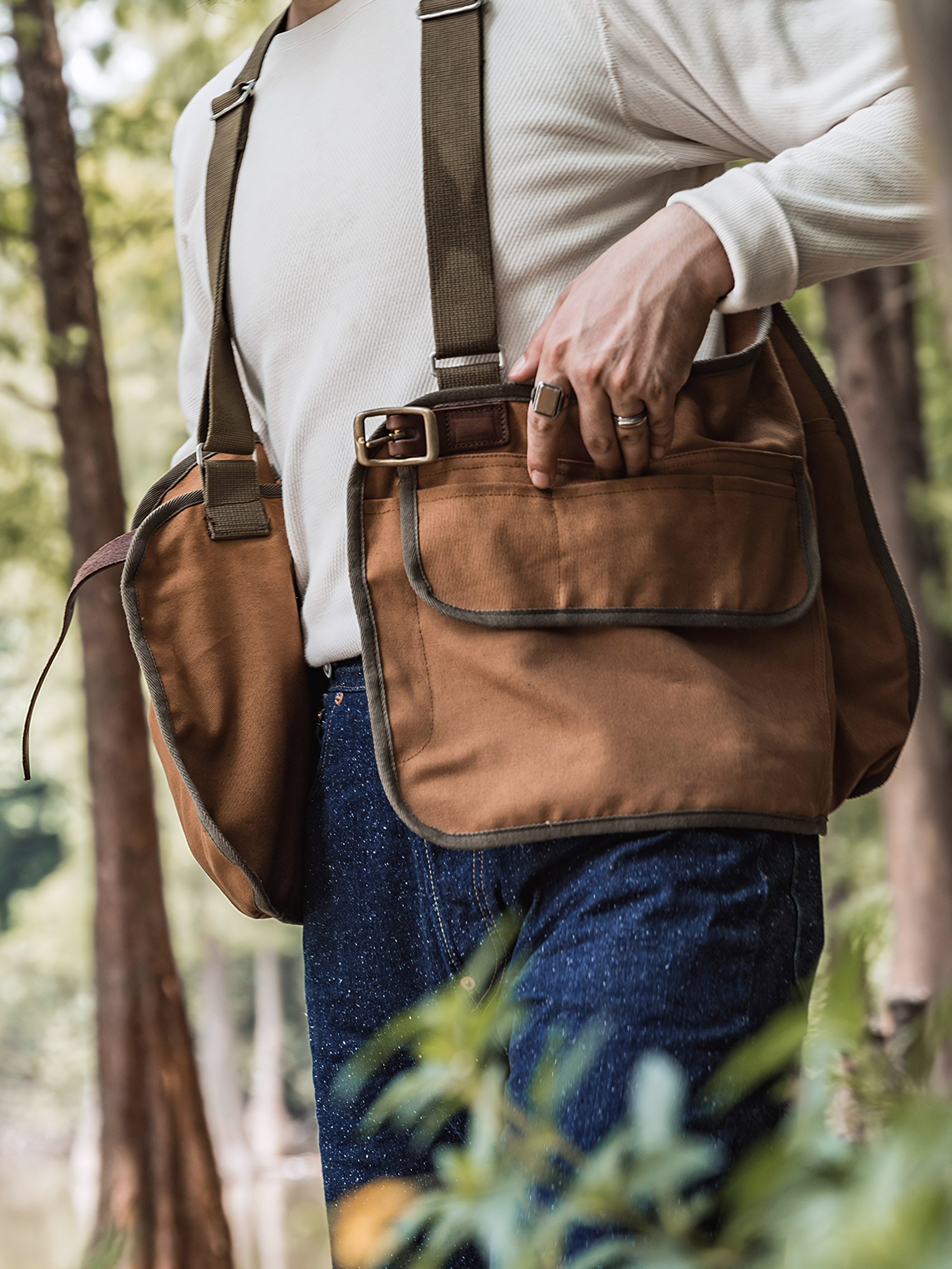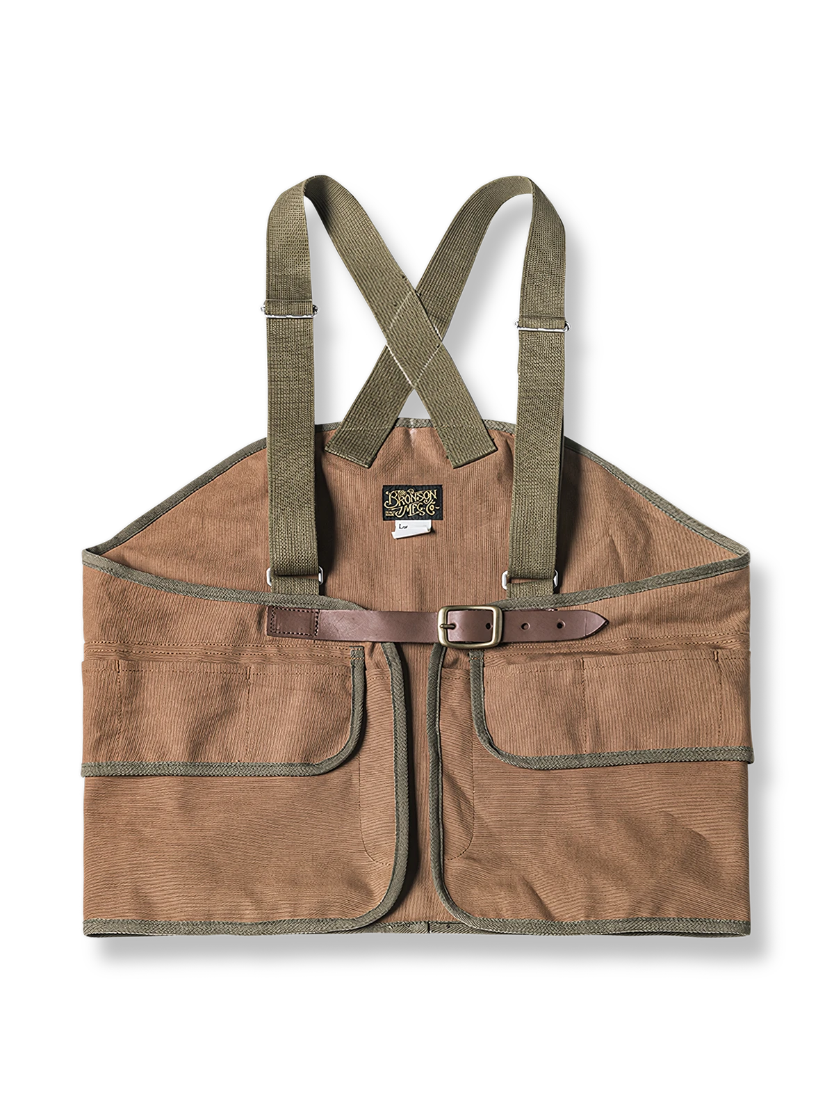 このベストのデザインは実用性と機能性に焦点を当てています。調整可能なショルダーストラップとウエストベルトが備わり、着用者は個人の好みや必要に応じてベストのフィット感を調整できます。ベストには複数のポケットがあり、フラップ付きのポケット、前面の大型ポケット2つ、背中のハンティングポケットが含まれています。これらのポケットは豊富な収納スペースを提供し、非常に実用的です。