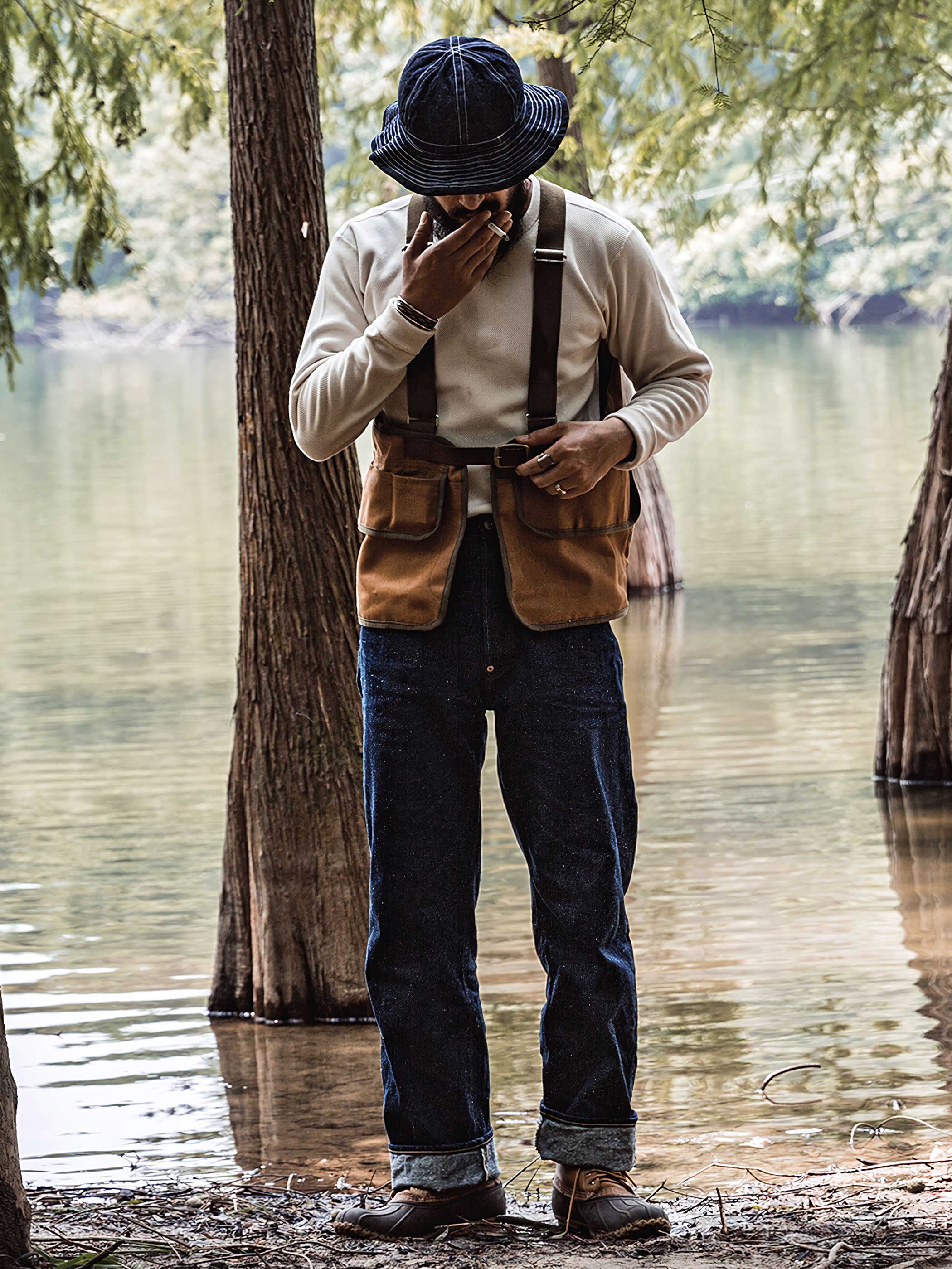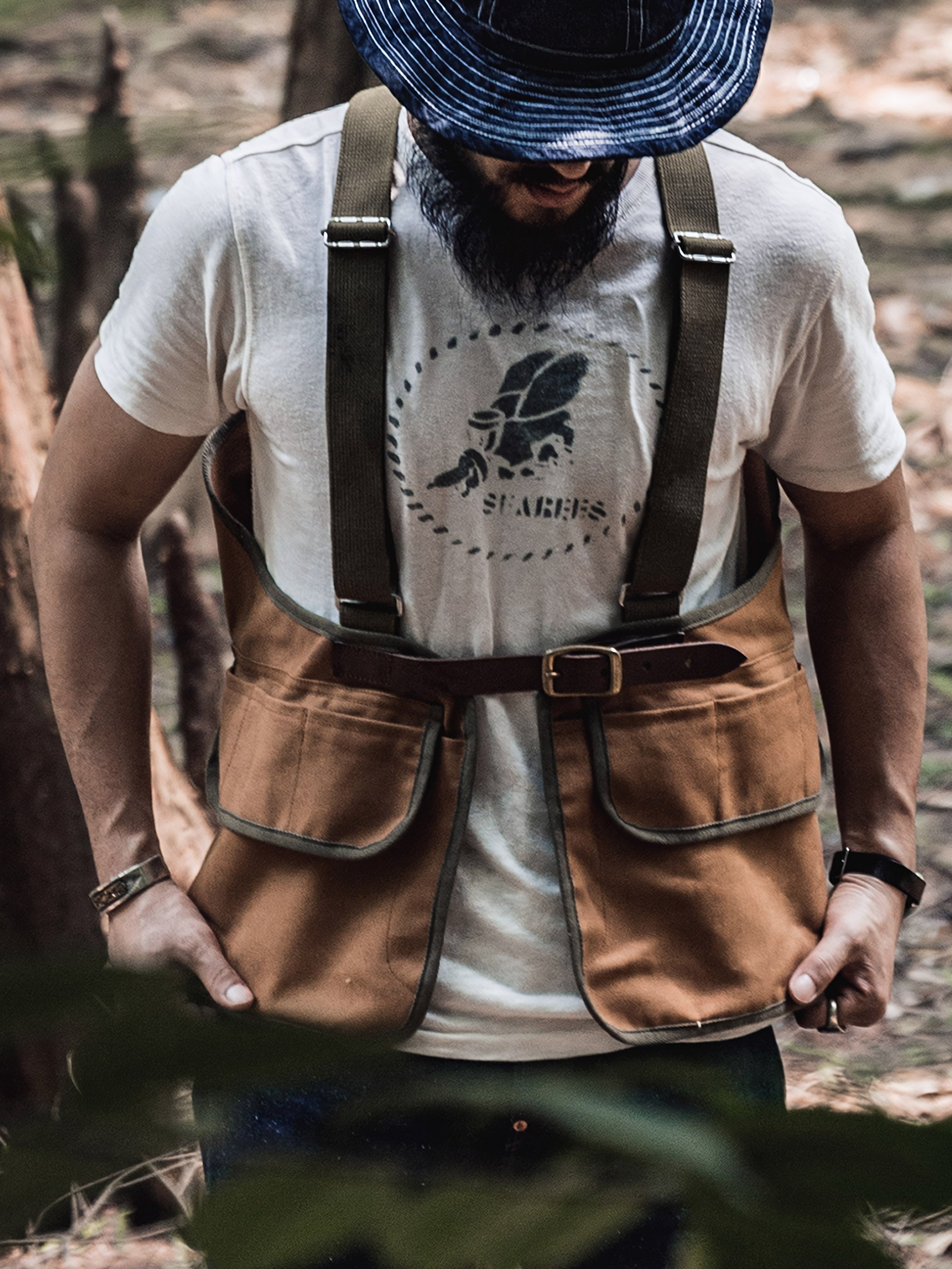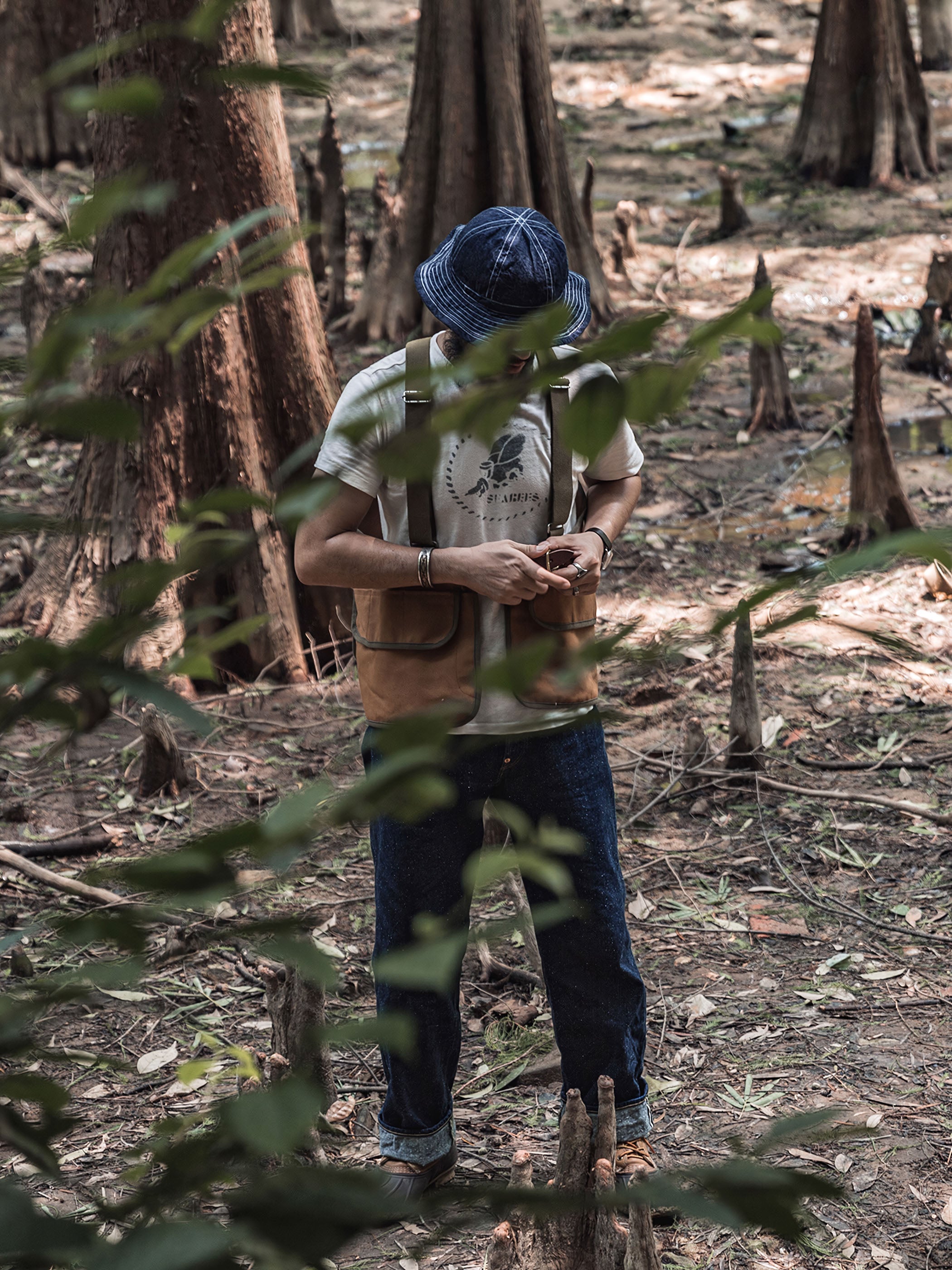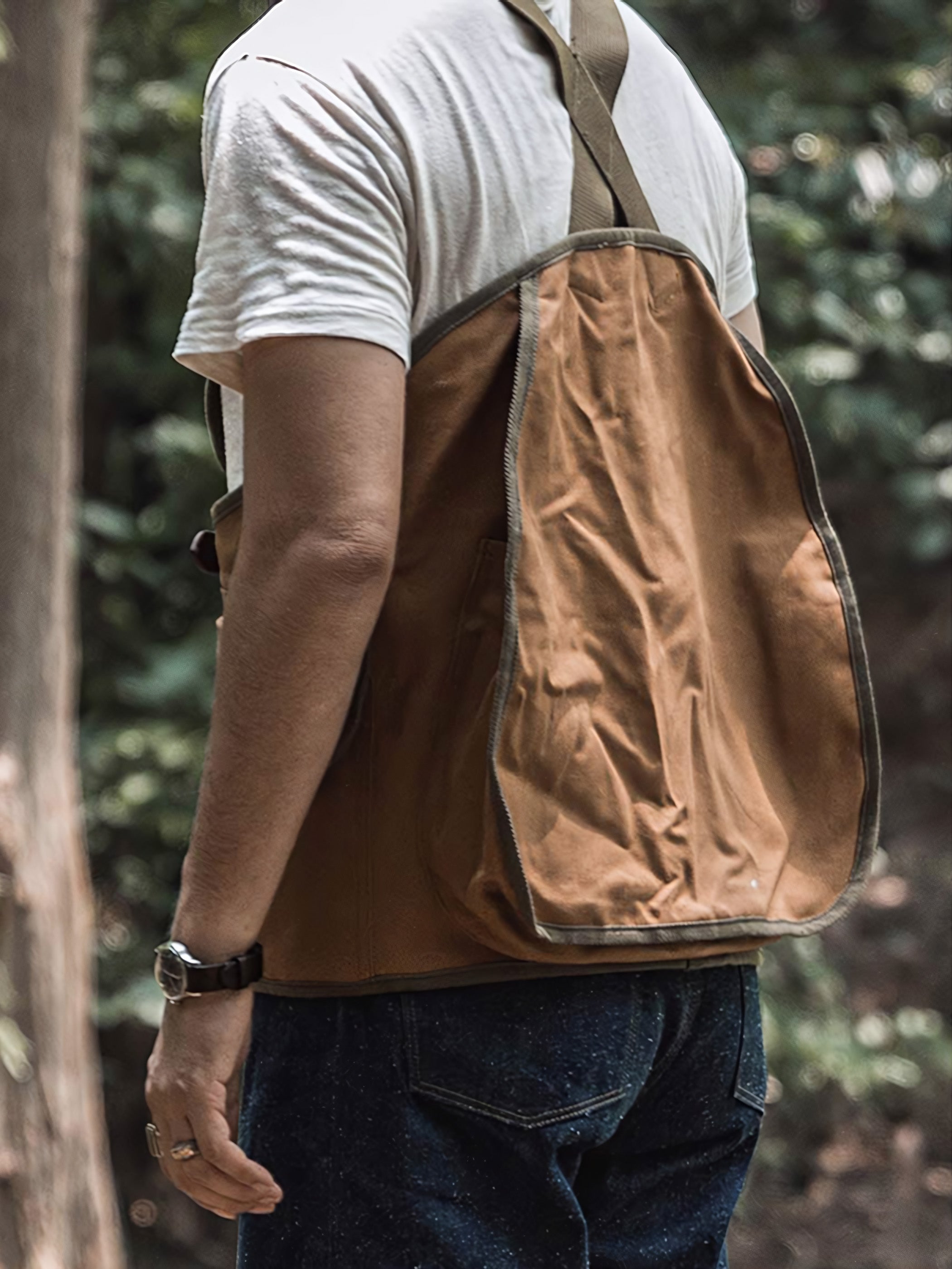 このベストのデザインは実用性と機能性に焦点を当てています。調整可能なショルダーストラップとウエストベルトが備わり、着用者は個人の好みや必要に応じてベストのフィット感を調整できます。ベストには複数のポケットがあり、フラップ付きのポケット、前面の大型ポケット2つ、背中のハンティングポケットが含まれています。これらのポケットは豊富な収納スペースを提供し、非常に実用的です。