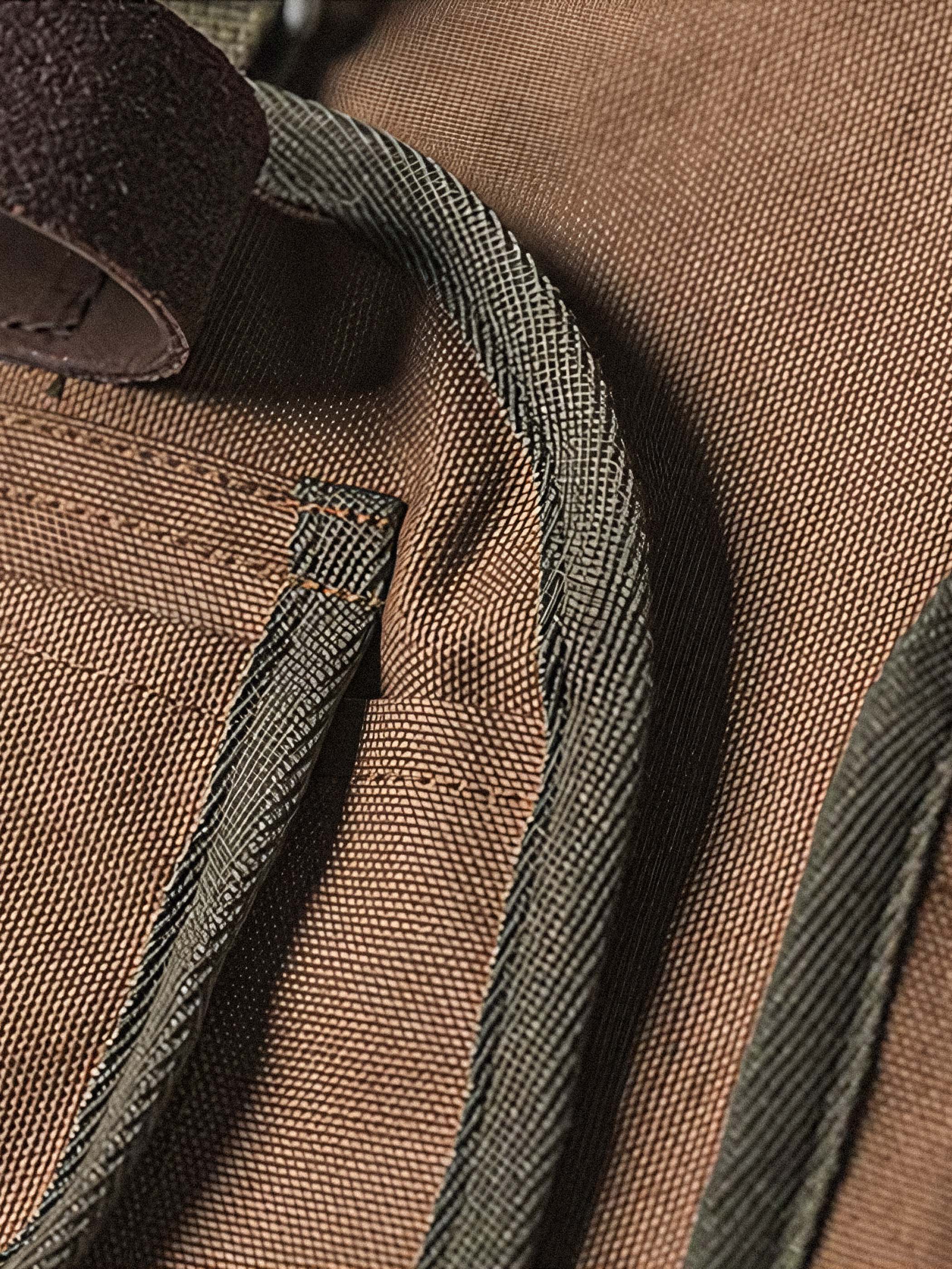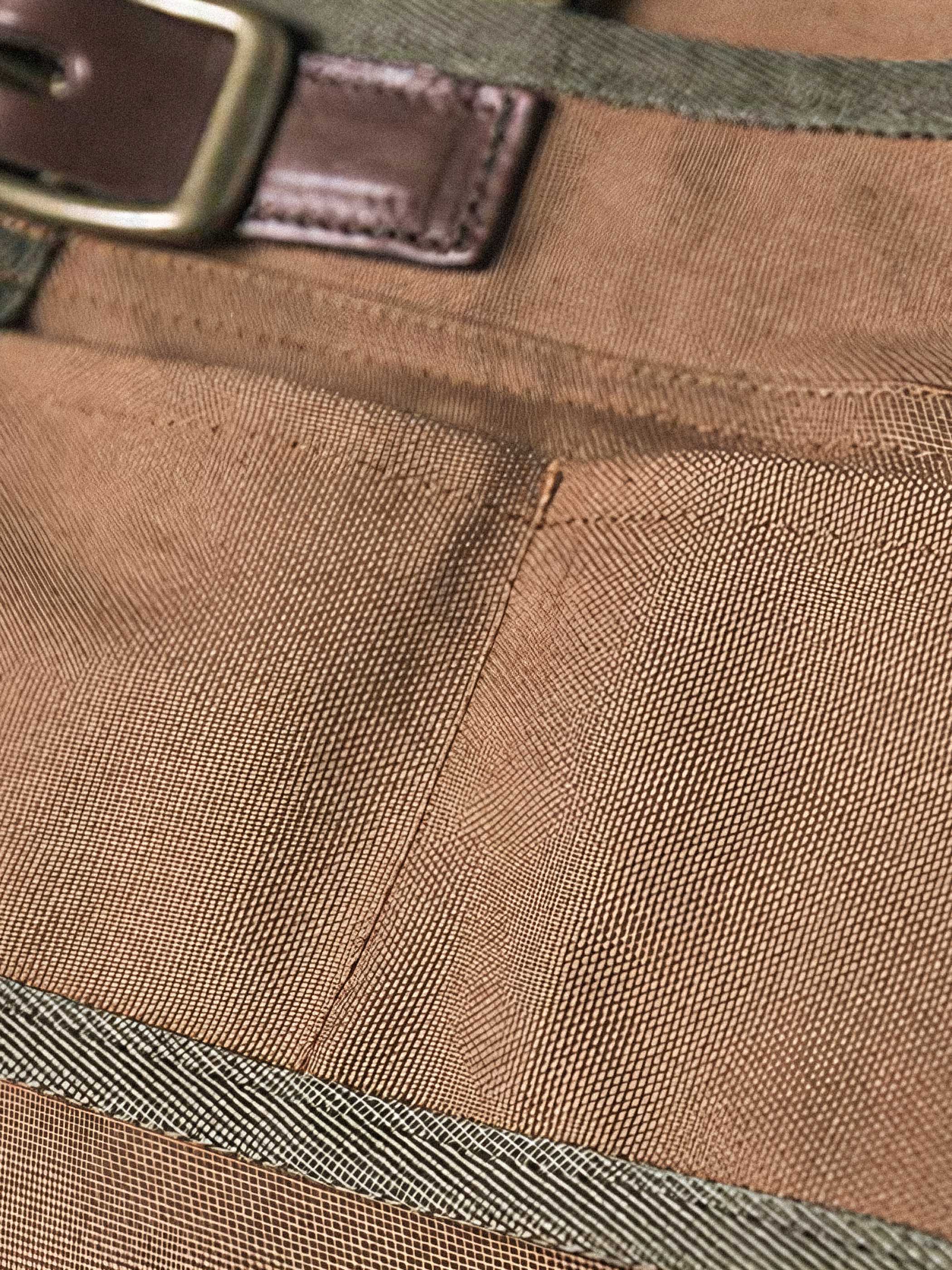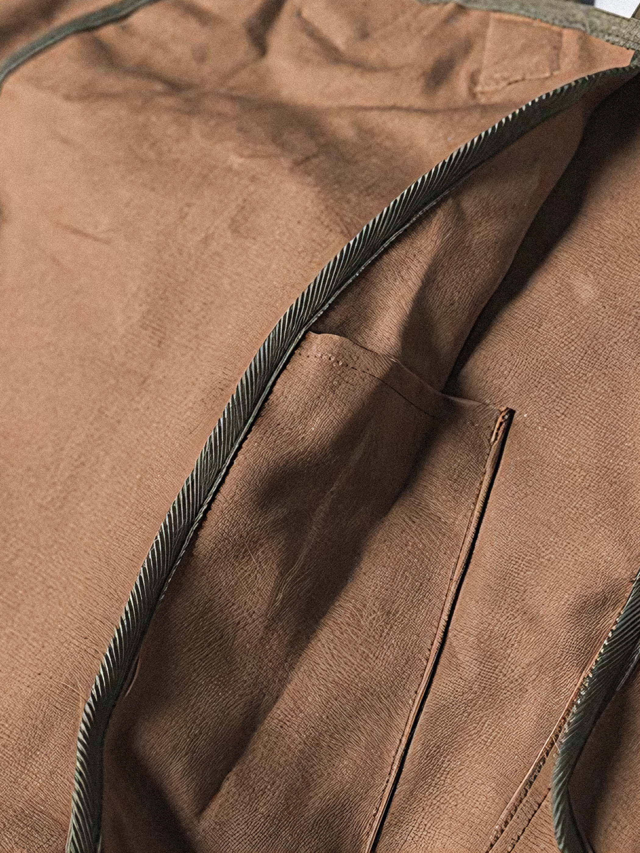 エッジには軍用の緑色のテープが施されており、耐久性を高めるだけでなく、ベストに軍風のデザイン要素を追加しています。