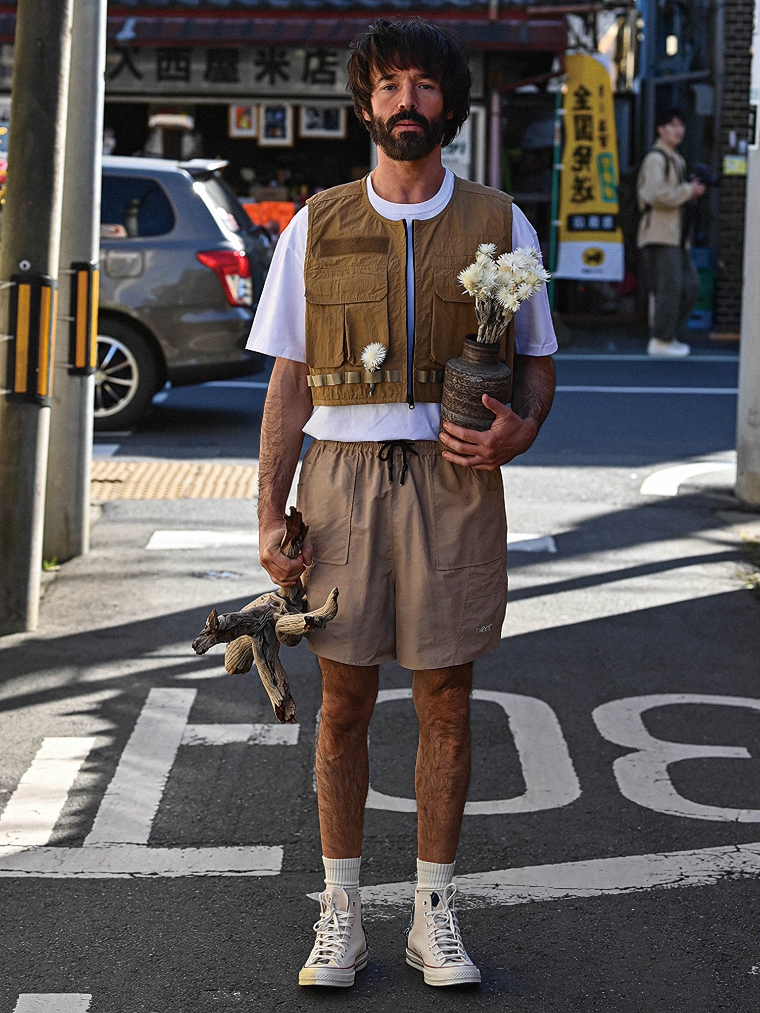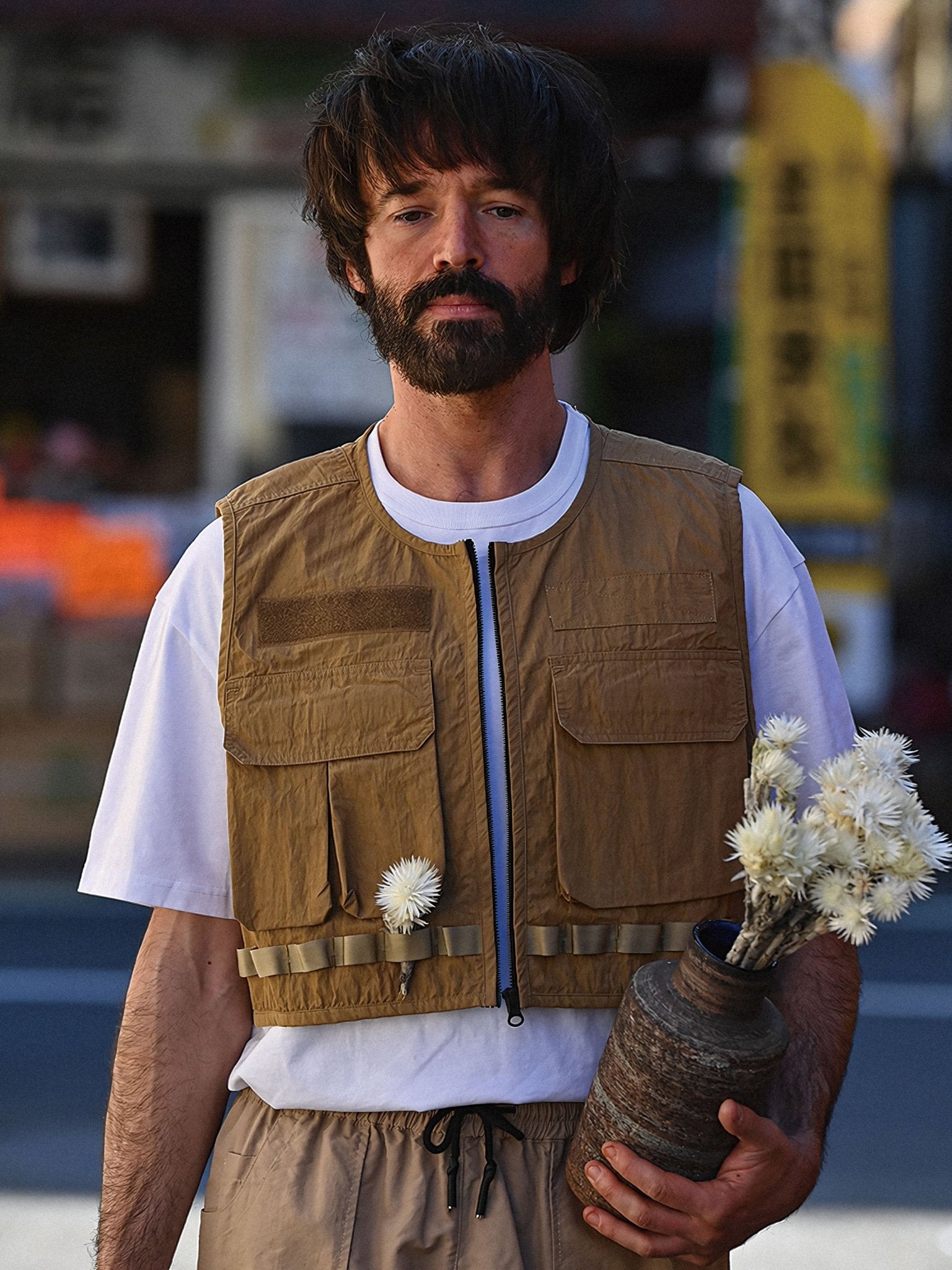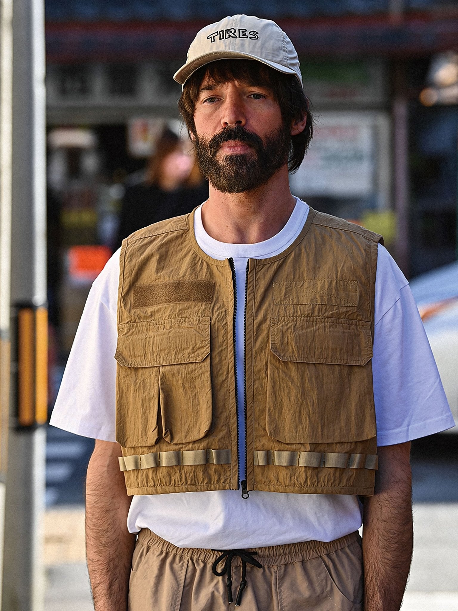 このベストはショート丈のデザインが特徴であり、独自のファッションスタイルを表現しています。複数のポケットと非対称のデザインにより、ベストは独特の視覚的魅力と個性を備えています。