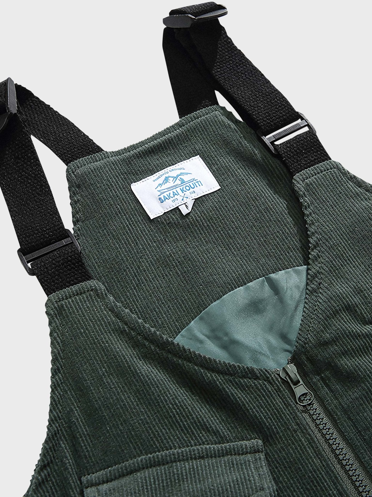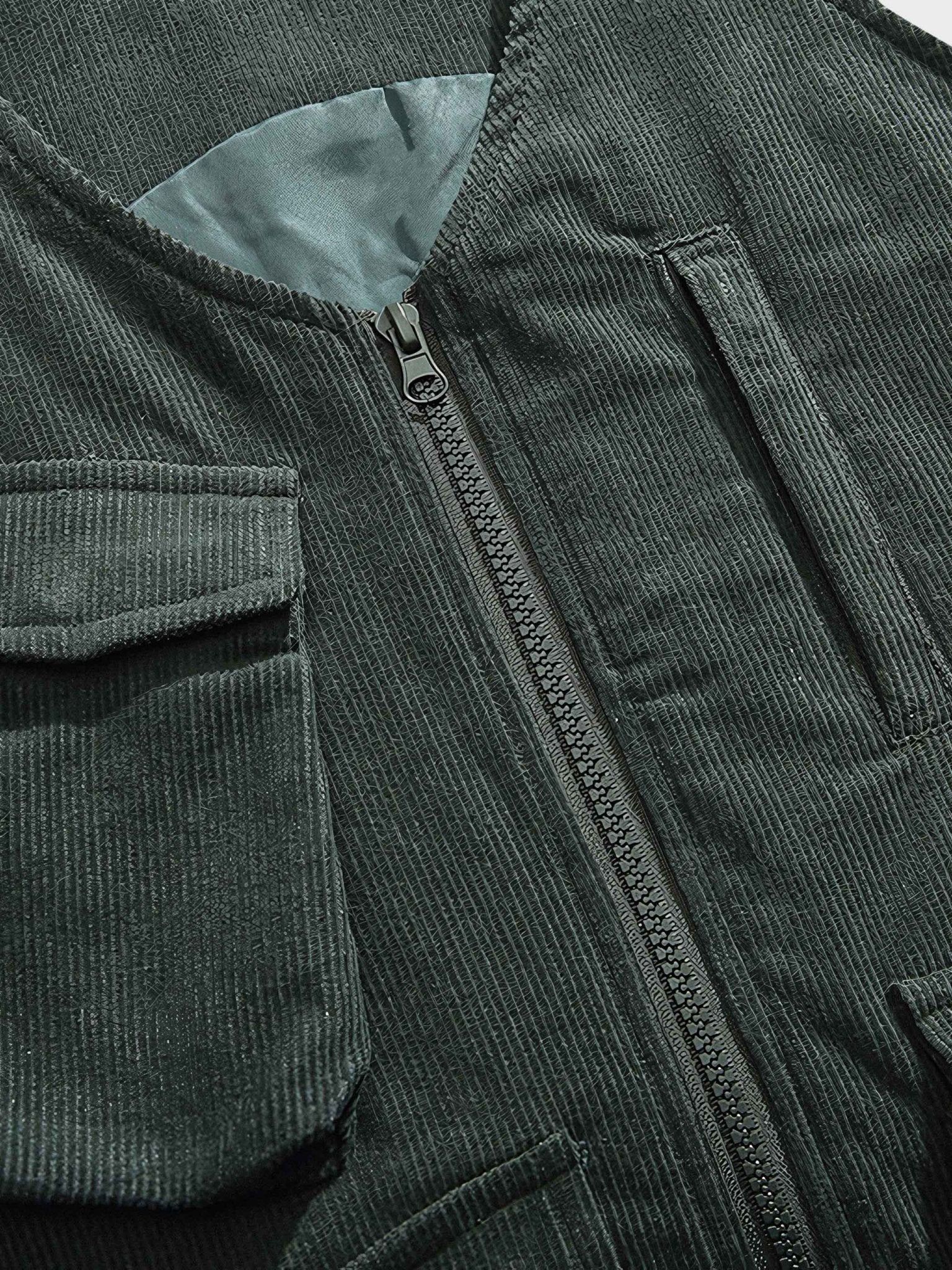 このベストは正面に4つのポケットをデザインし、実用性に富んだ特徴を持たせています。これらのポケットは小物を収納するだけでなく、ベストのデザインに装飾的要素を加えています。深い緑色の選択肢はベストに深みのある独特の視覚効果をもたらし、個性的な雰囲気を醸し出します。