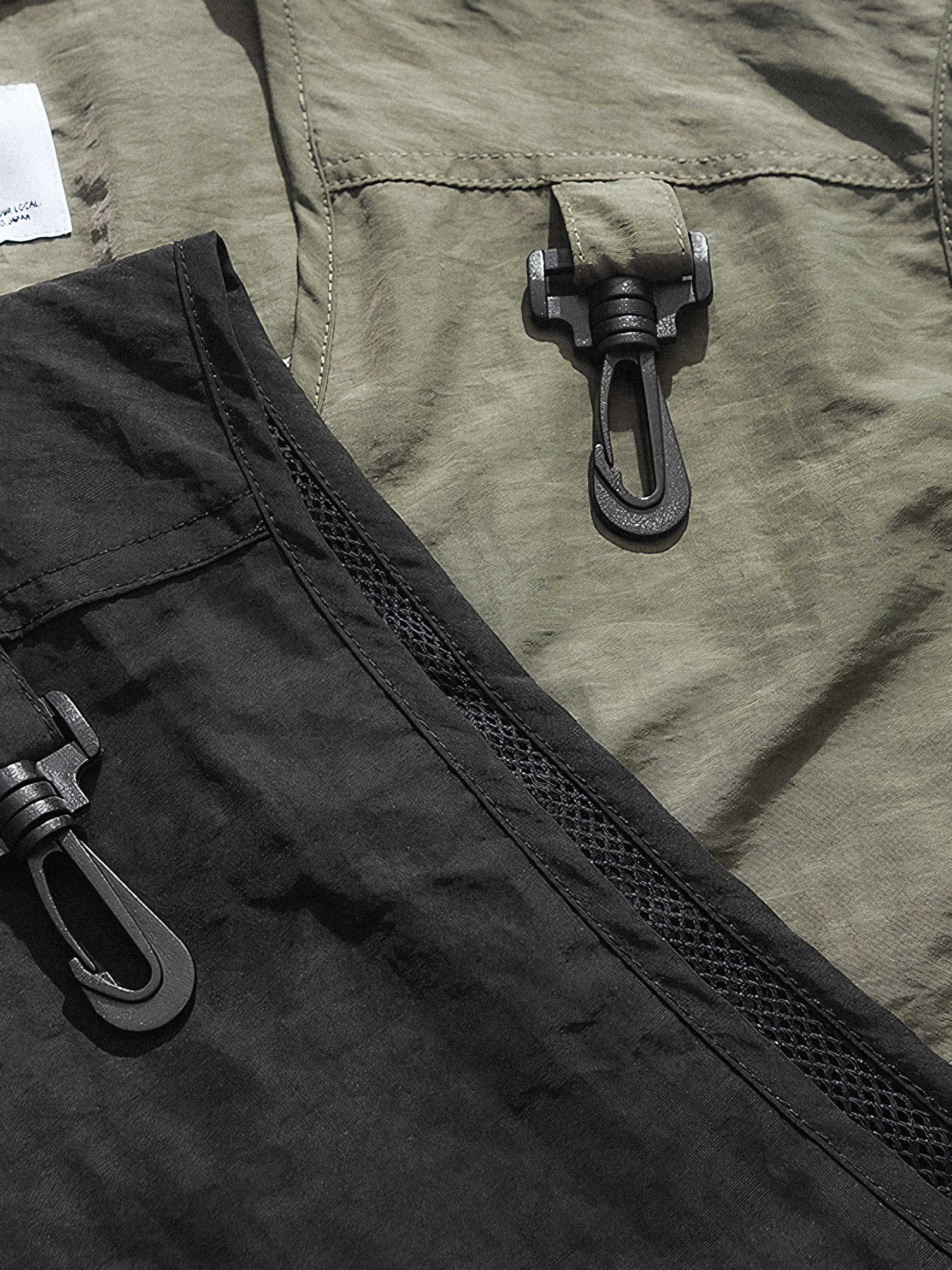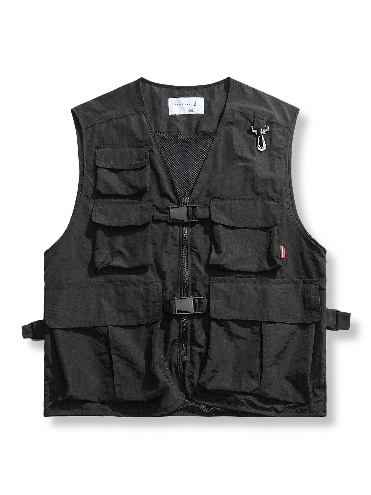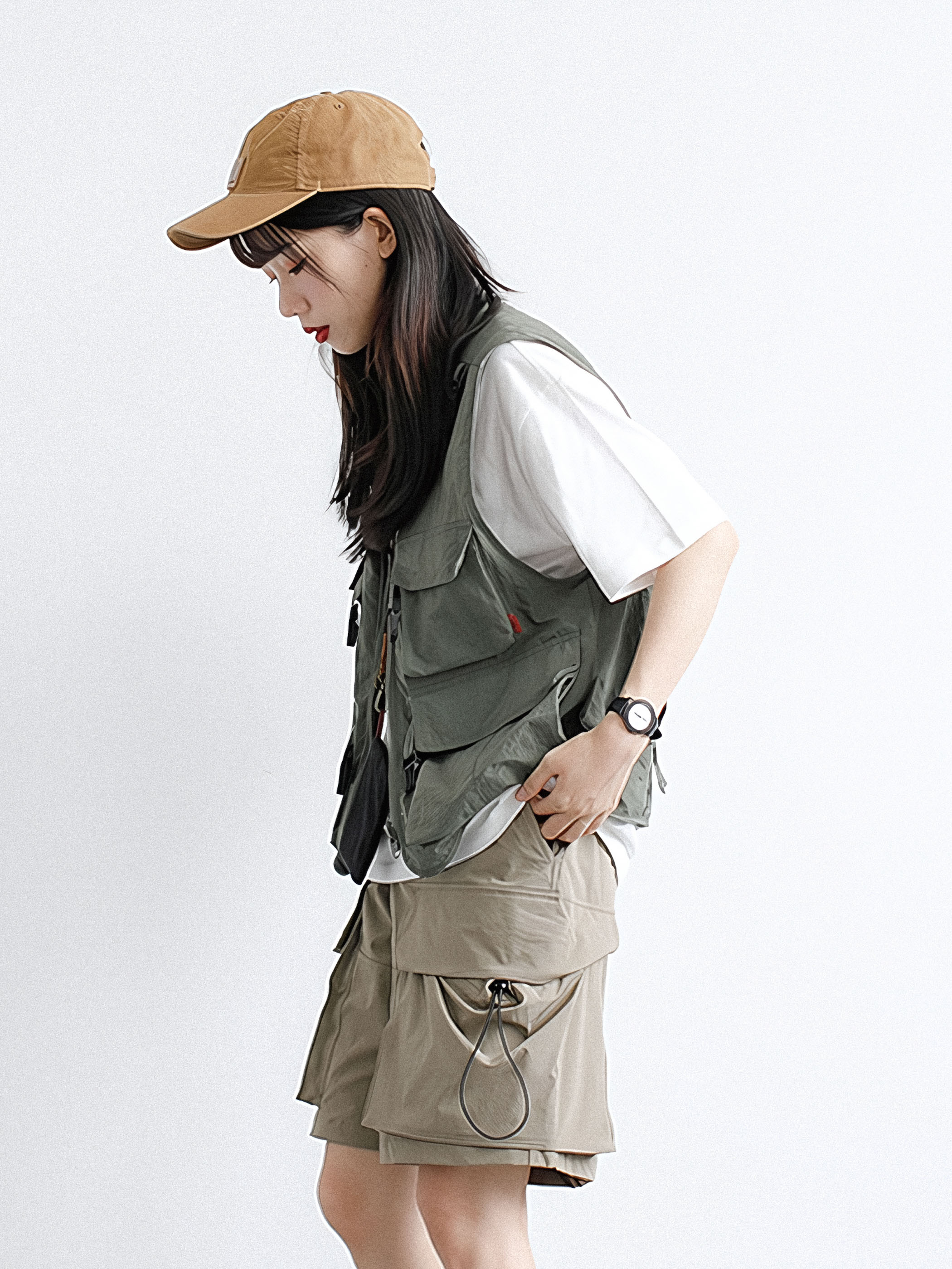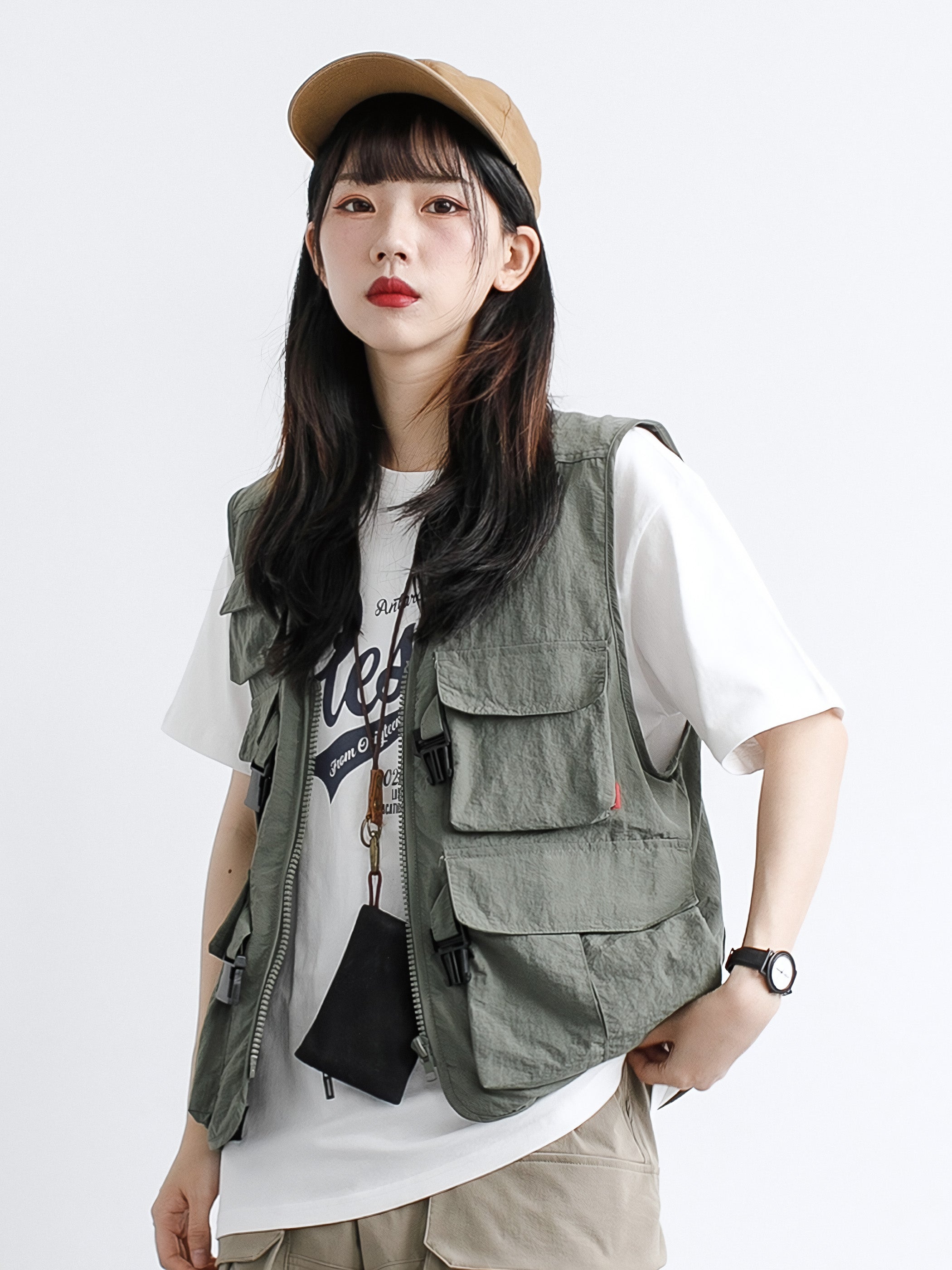 これらのポケットは実用性を高めるだけでなく、ベストの外観にも独自の特徴をもたらしています。また、ファスナーやボタンなどの細部にも工夫が凝らされており、デザイン全体を引き立てています。