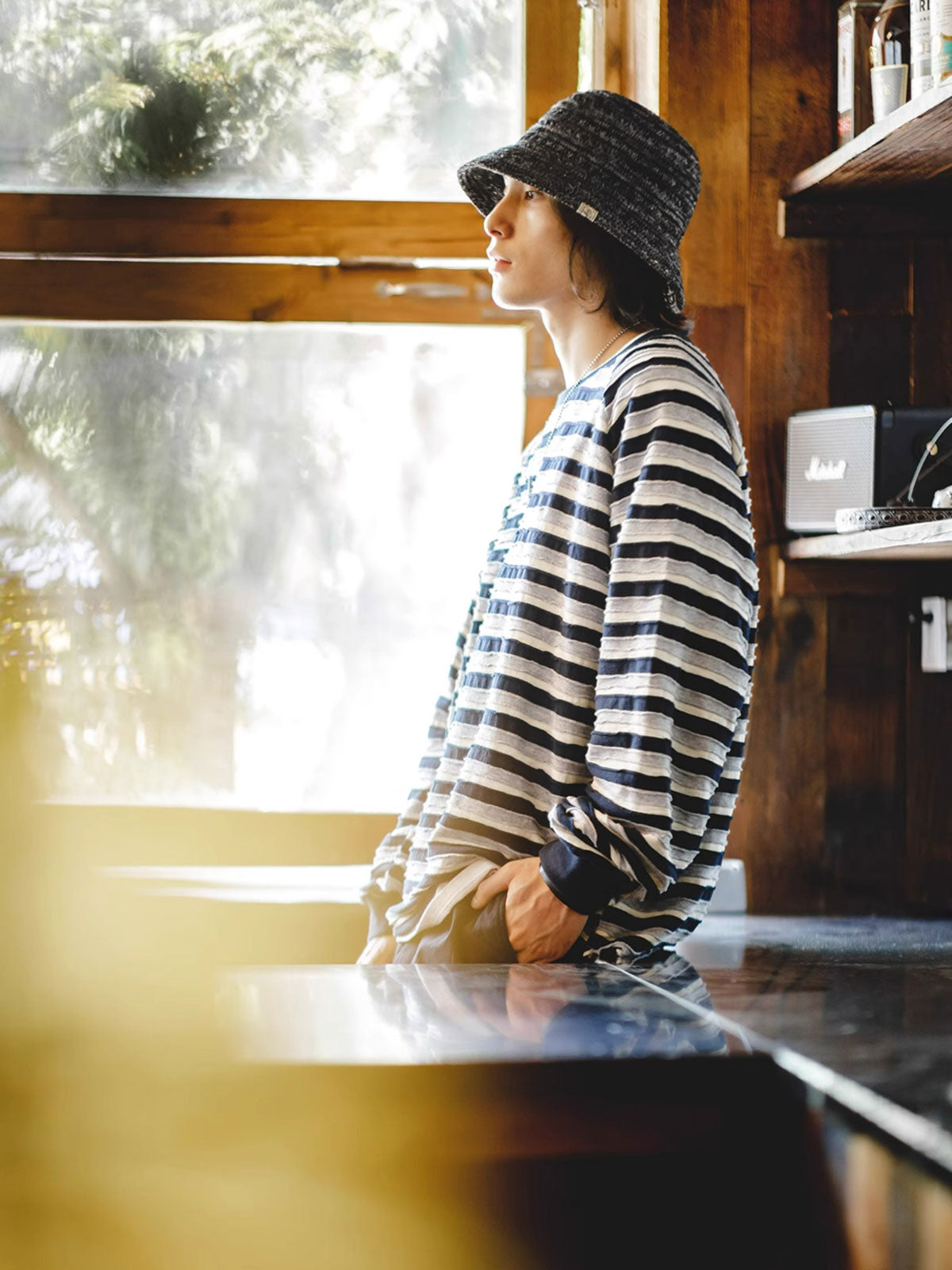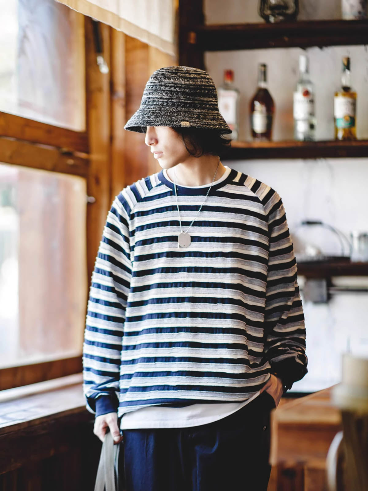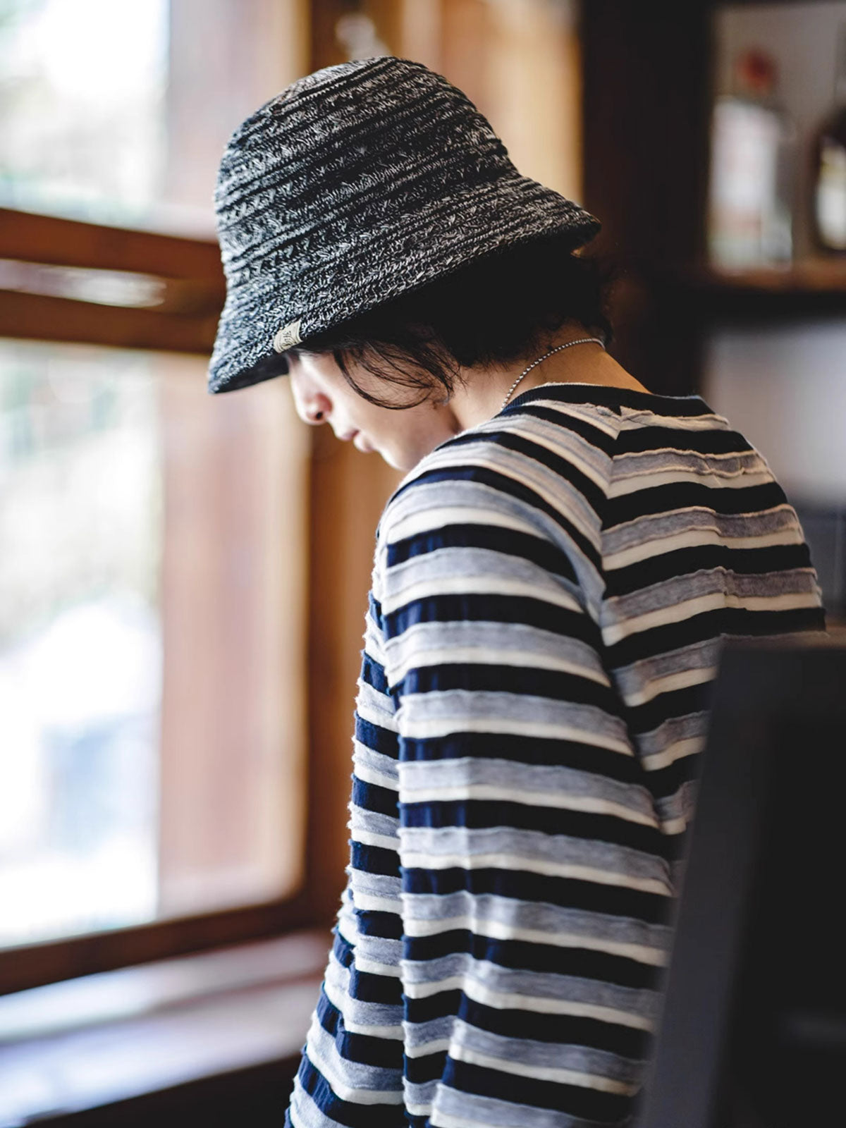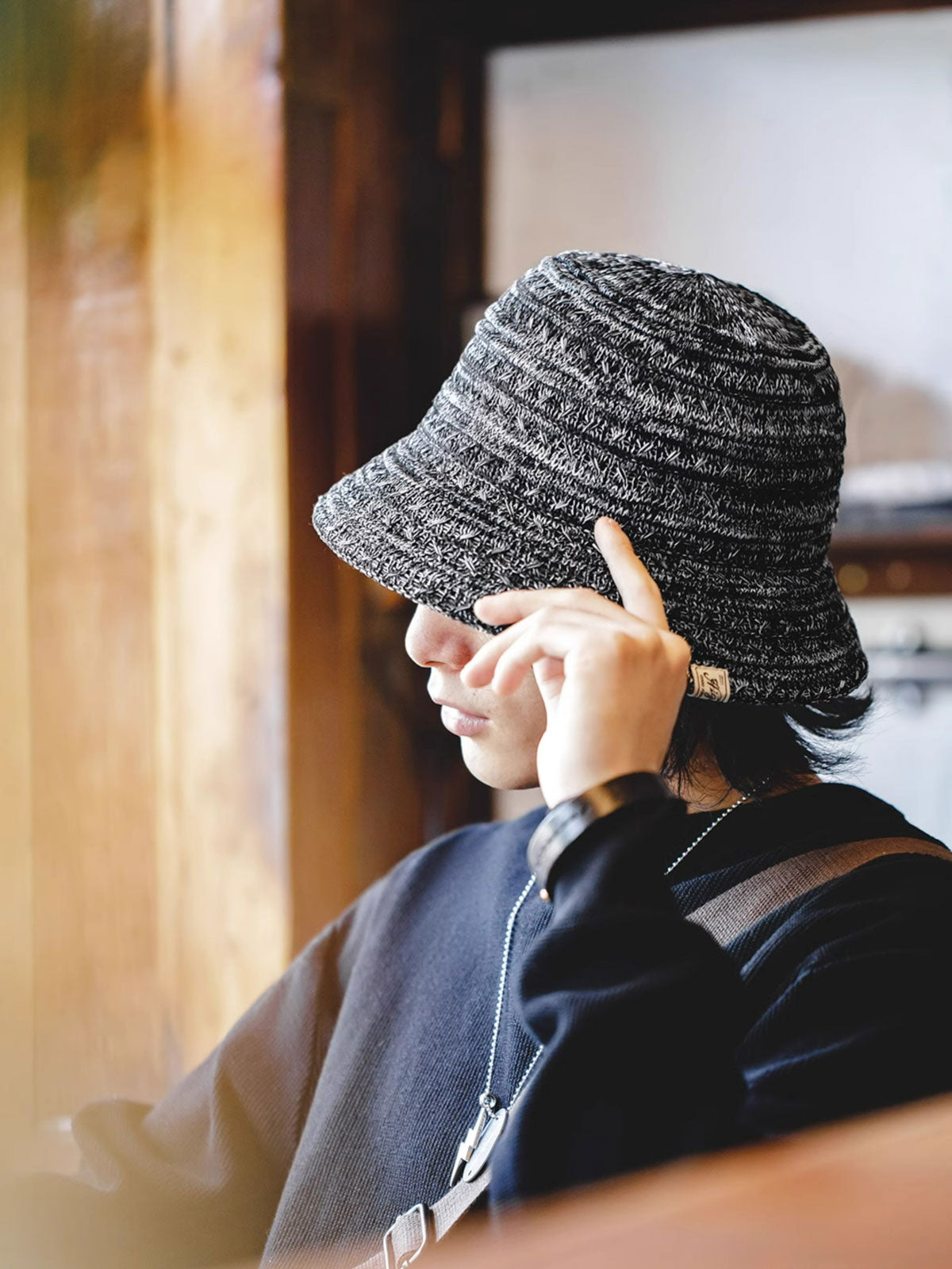 この帽子は、現代的な技術を用いた硬質ポリエステル糸を特徴としており、洗練された都会的なスタイルを演出します。伝統的なハットの形状に現代のテキスタイル技術を融合させ、機能性とデザイン性を高めた一品です。このハットは、カジュアルな街着からアウトドアまで幅広いシーンに適しています。夏の日差しを避けつつスタイリッシュに装いたい時に最適です。