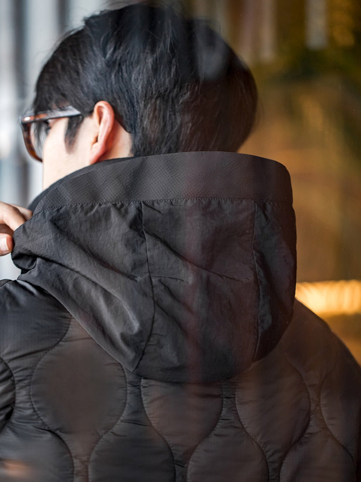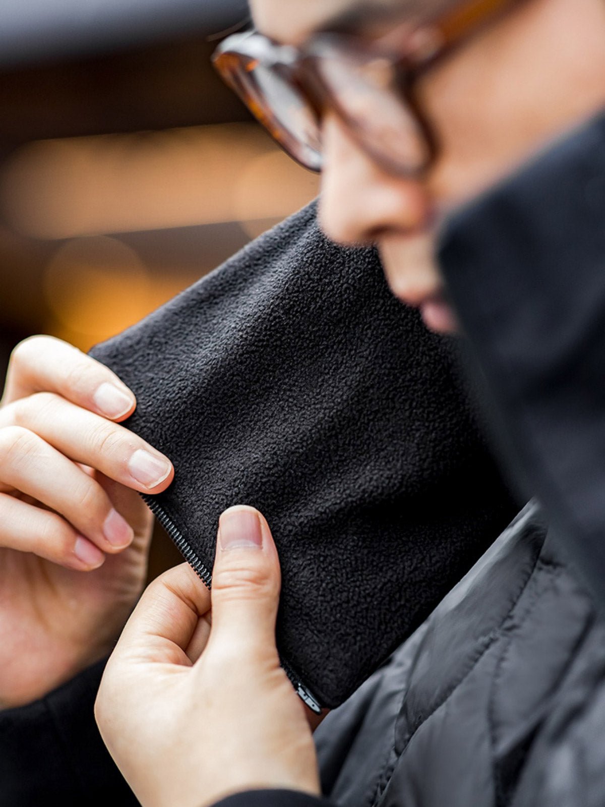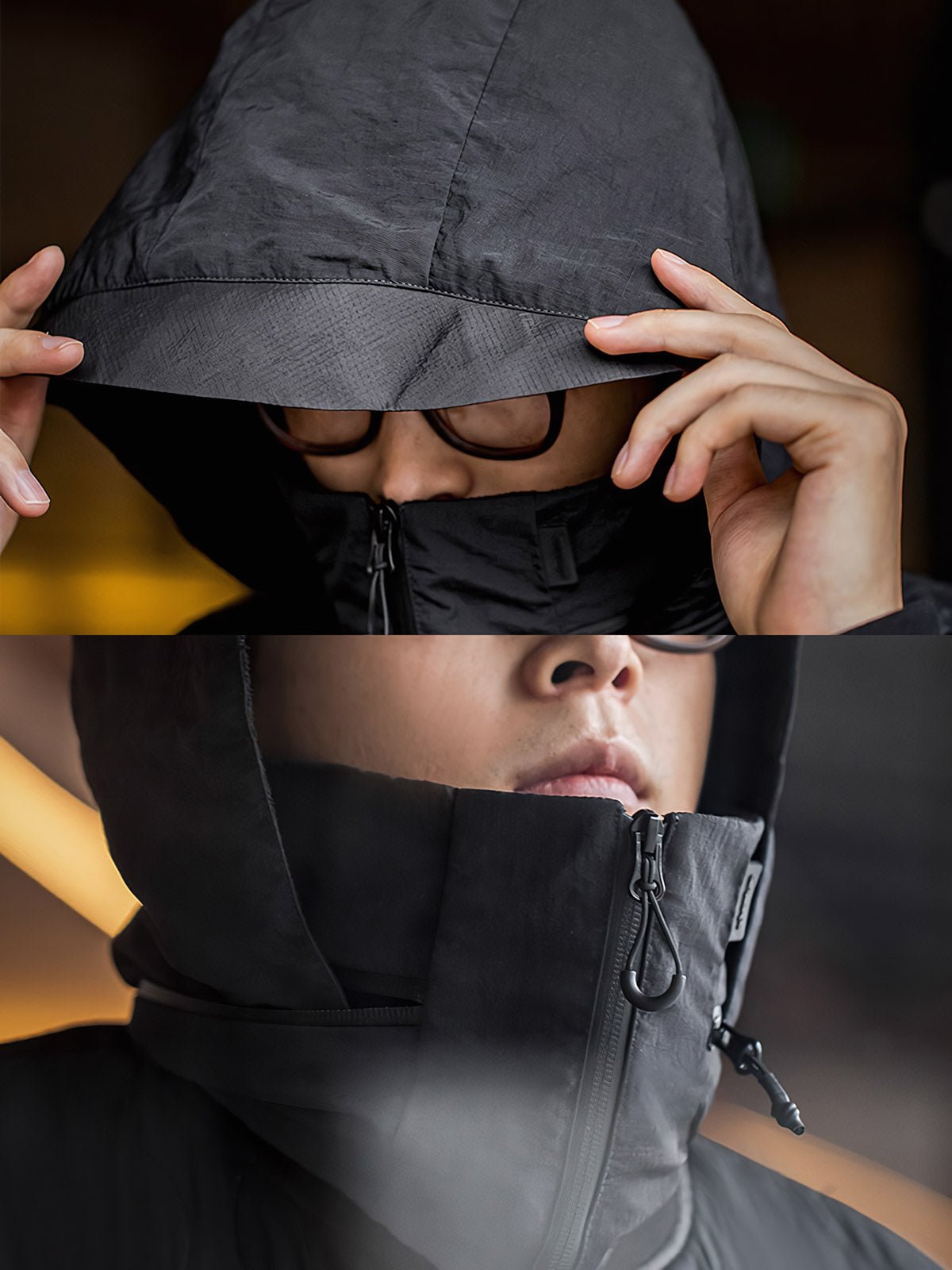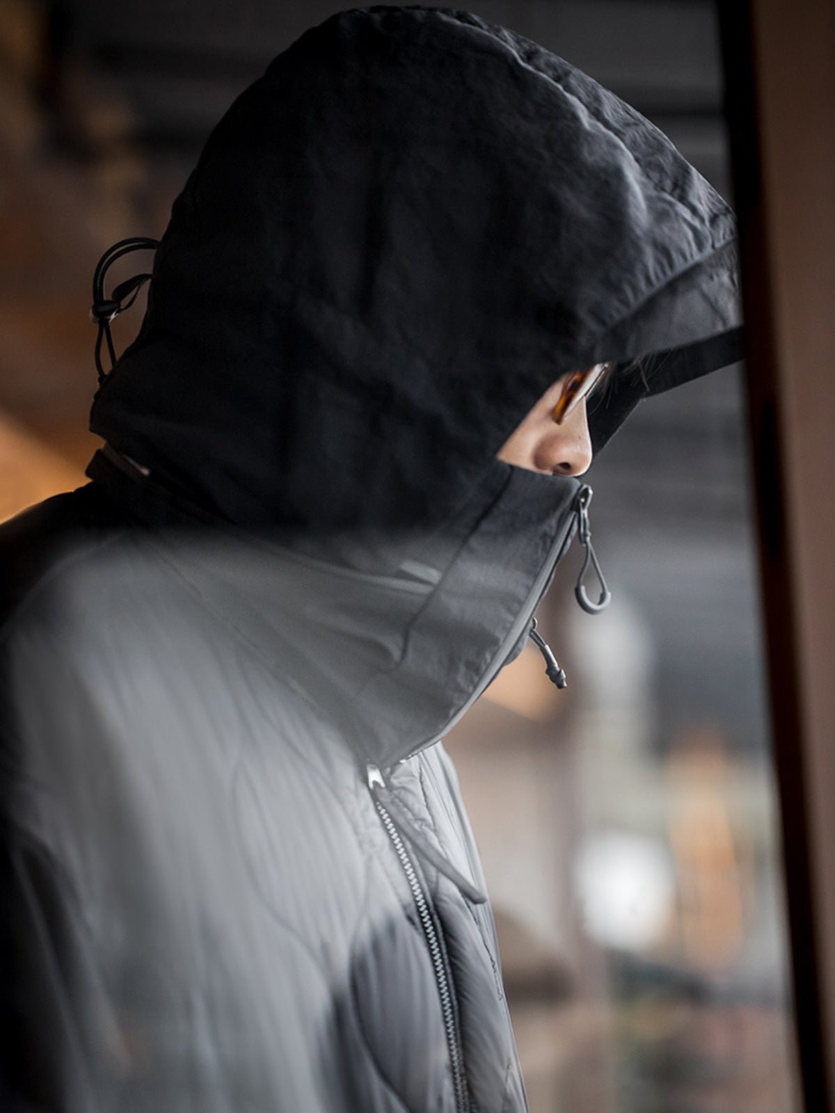 このフード付きネックウォーマーは、取り外し可能なデザインで、クラシックなアウトドア装備の実用性とレトロな要素を組み合わせ、古典的でありながらモダンな雰囲気を作り出しています。リラックスフィットを採用し、頭部と首の快適さと保温性を保証しながら、他の服とのレイヤードも容易にします。