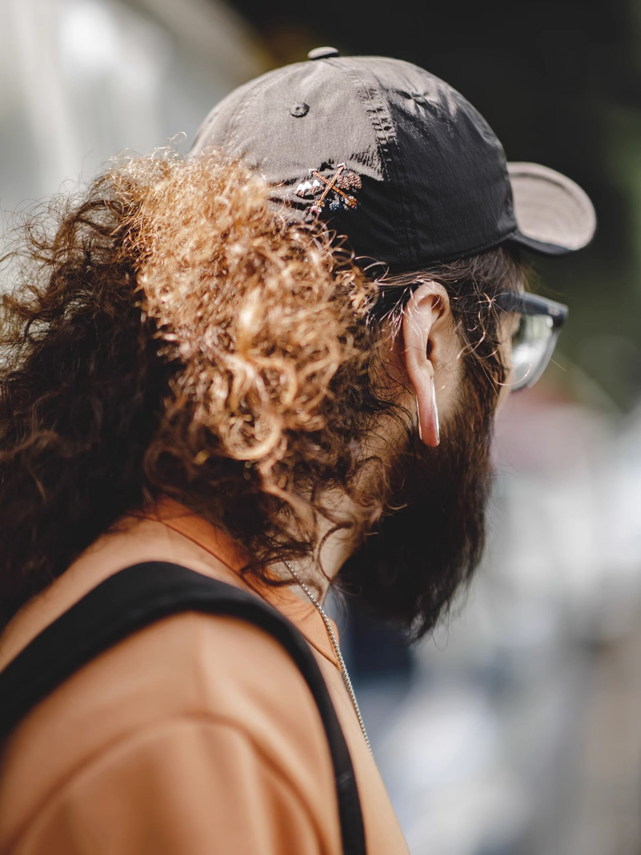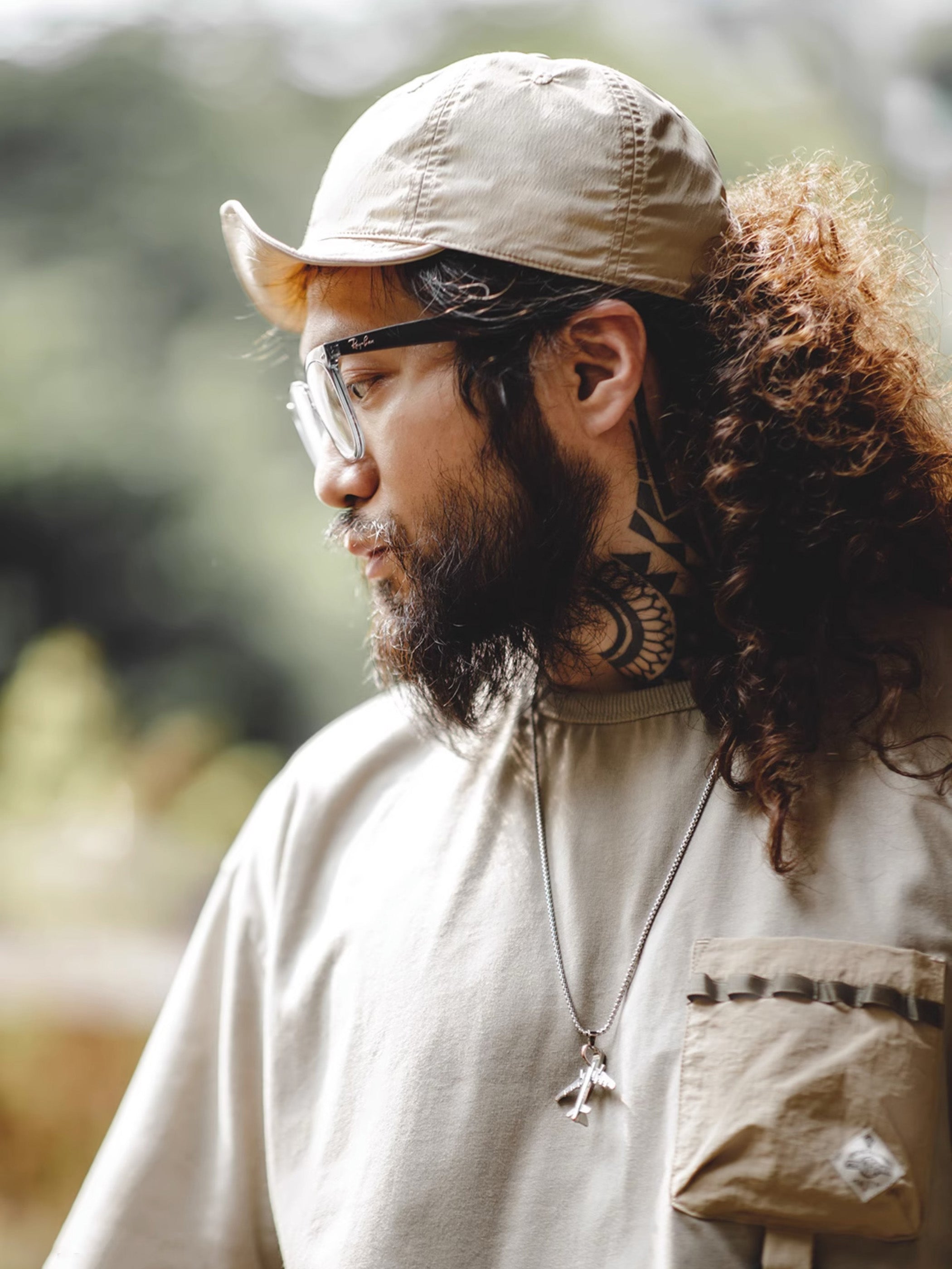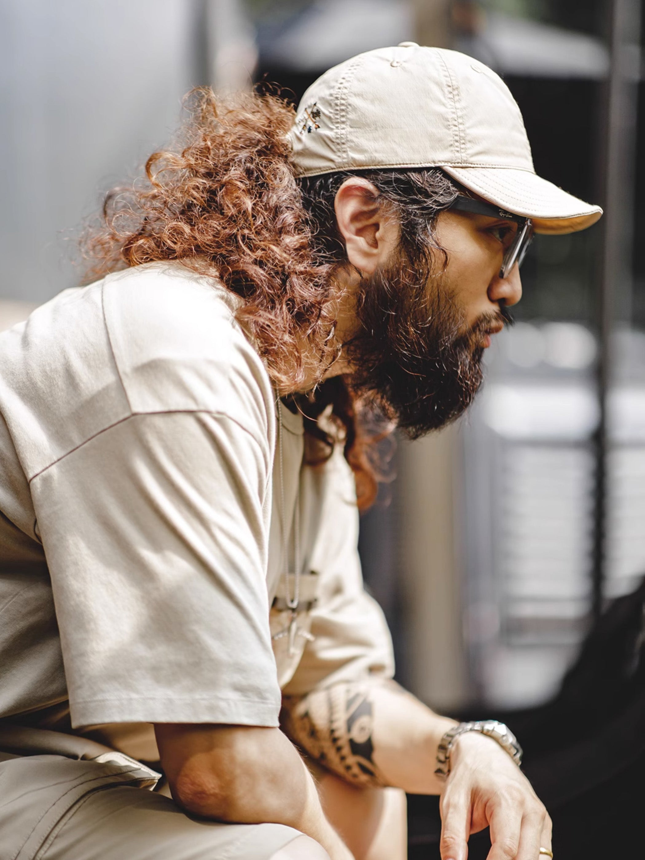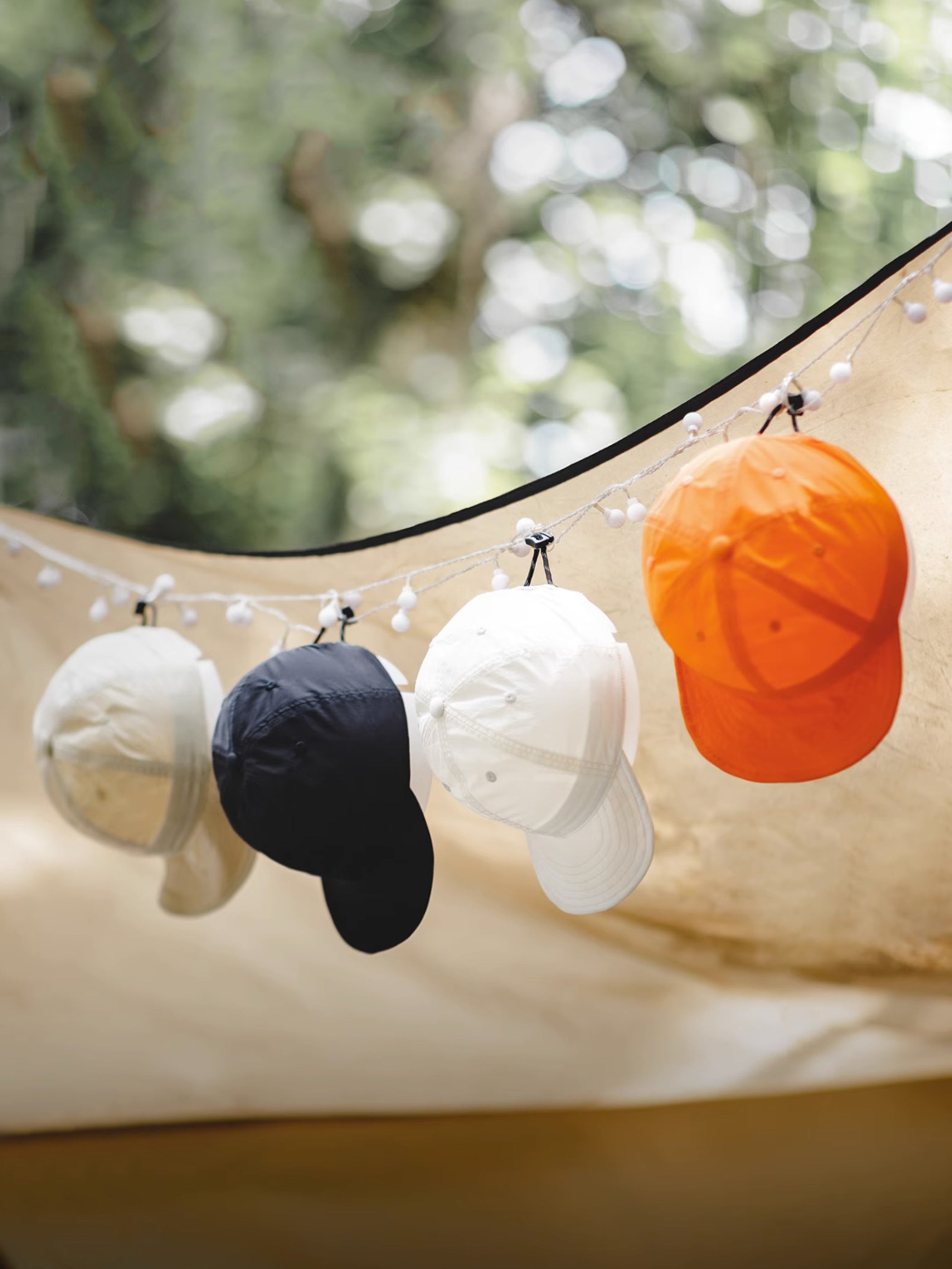 この帽子のツバは変形可能で、まっすぐなまま、上向きにして浅くかぶると少しやんちゃな印象に、ツバを深めに曲げて下向きにしてかぶると両目が隠れ気味でクールな雰囲気になります。後頭部のサイズ調整ドローコードは、幅広いヘッドサイズに対応しています。また、羽根アロー刺繡入りで、伝統的なスタイルを持ちつつも、モダンで強いエネルギーと躍動感を感じることができます。ブラック、ライトカーキ、ホワイト、オレンジの4色展開で、男らしさ満載でありながら、合わせやすい汎用性の高いアイテムです。