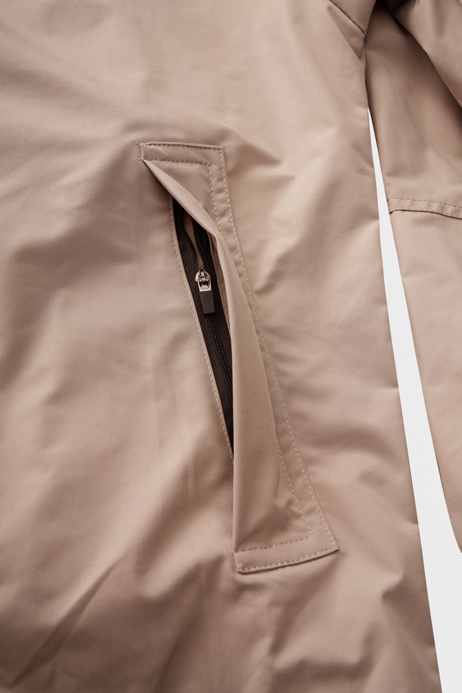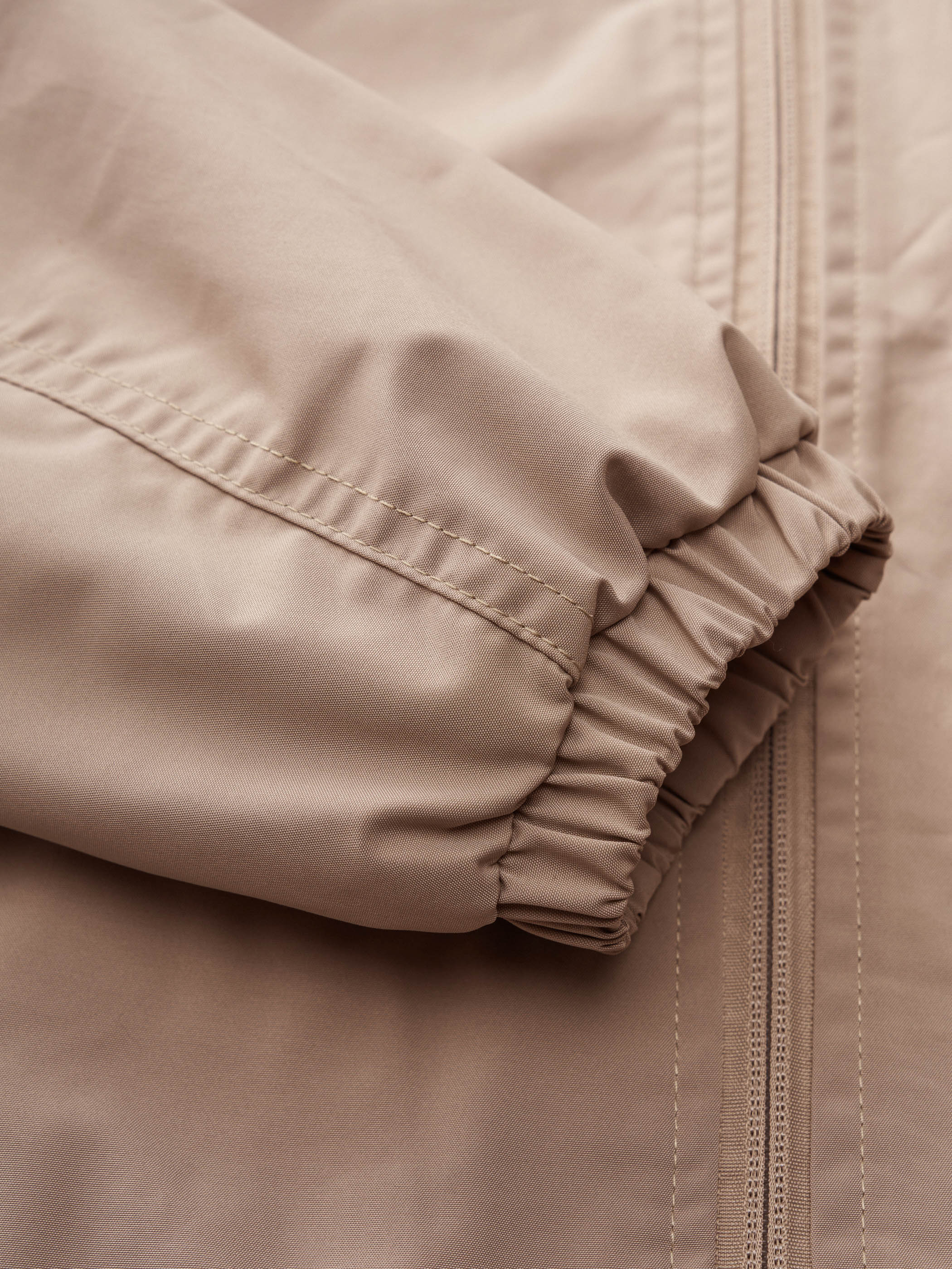 アウトドア用の防風防水ジャケットはフードからフロントファスナーまで、実用的で美しい外観を実現しています。