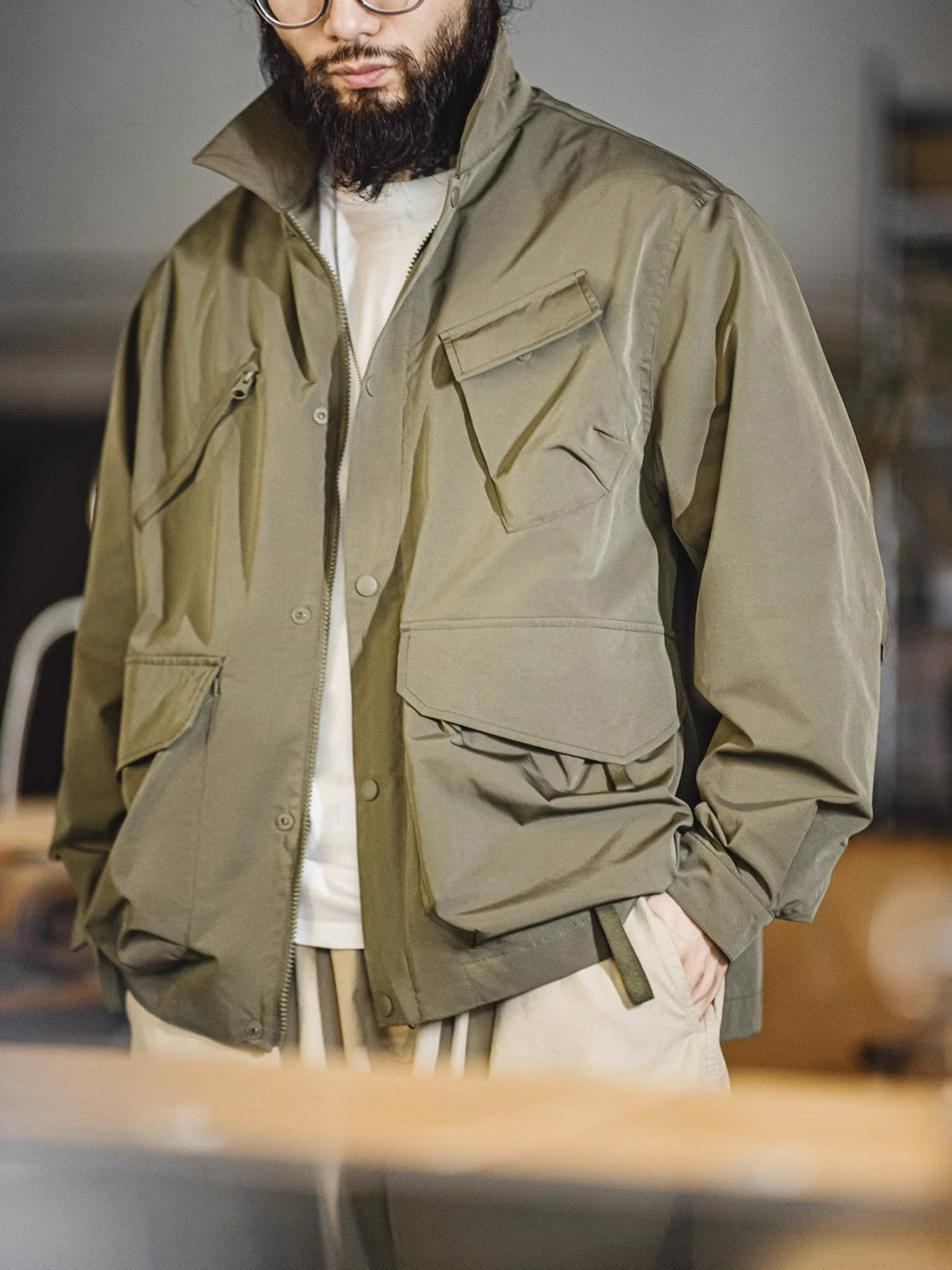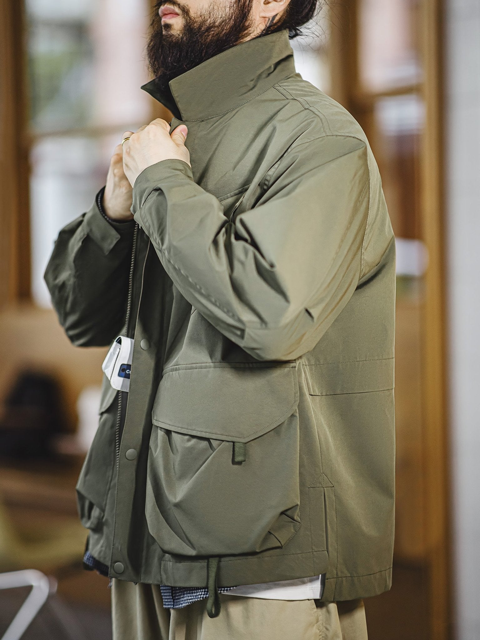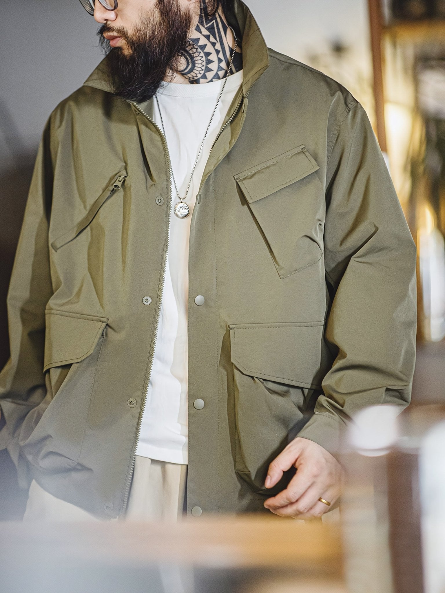 独特のダイヤモンドステッチの四角い襟デザインは、ジャケットにユニークな質感をもたらすだけでなく、折り返し襟とスタンド襟の2つの着こなしスタイルを実現し、多様なスタイルの変化を演出します。ポケットの機能性も新たな高みに押し上げています。単なる物の収納場所だけでなく、全体のスタイリングをサポートしています。