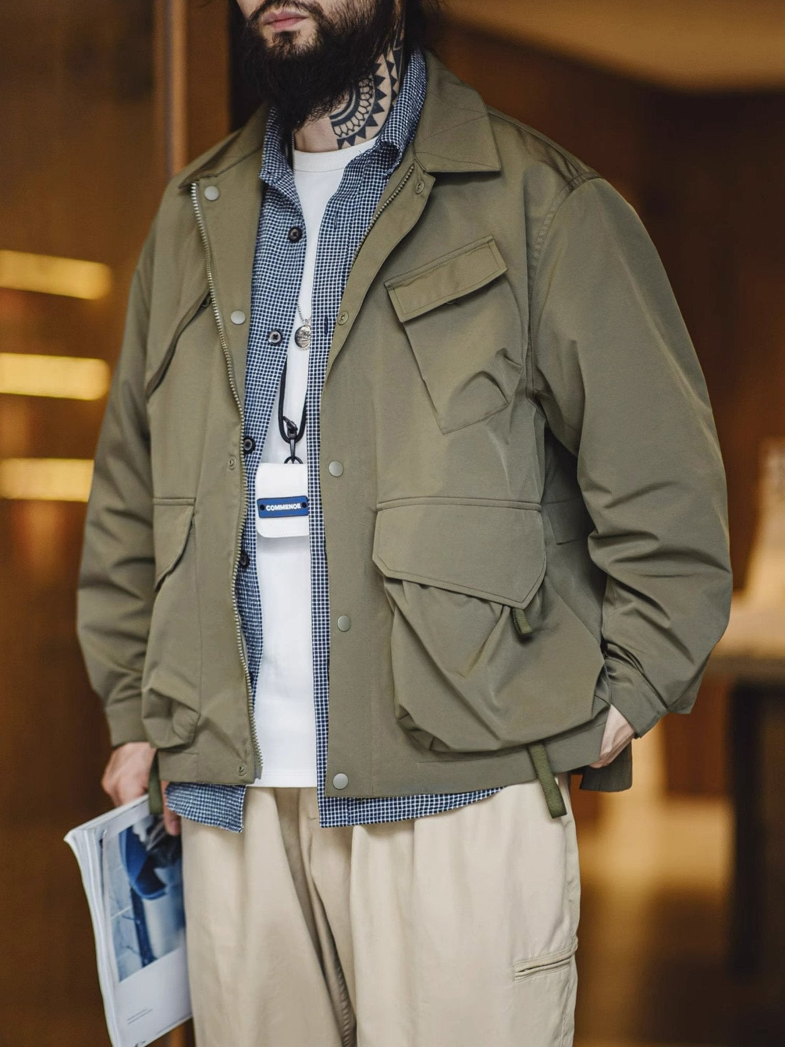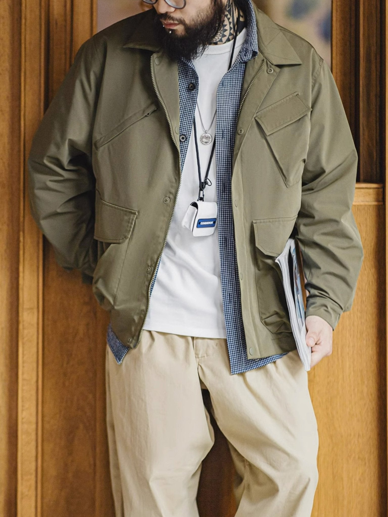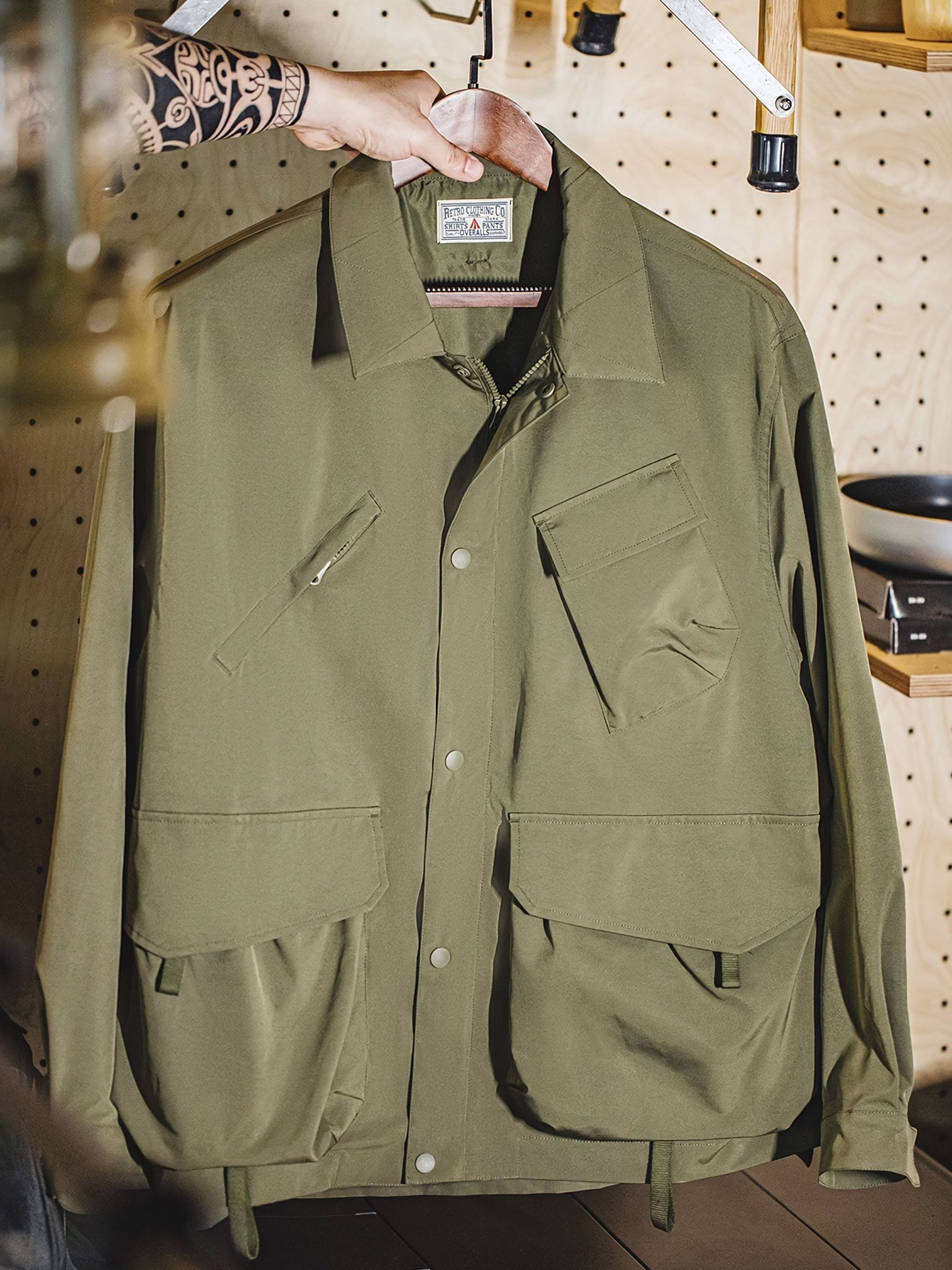 独特のダイヤモンドステッチの四角い襟デザインは、ジャケットにユニークな質感をもたらすだけでなく、折り返し襟とスタンド襟の2つの着こなしスタイルを実現し、多様なスタイルの変化を演出します。ポケットの機能性も新たな高みに押し上げています。単なる物の収納場所だけでなく、全体のスタイリングをサポートしています。