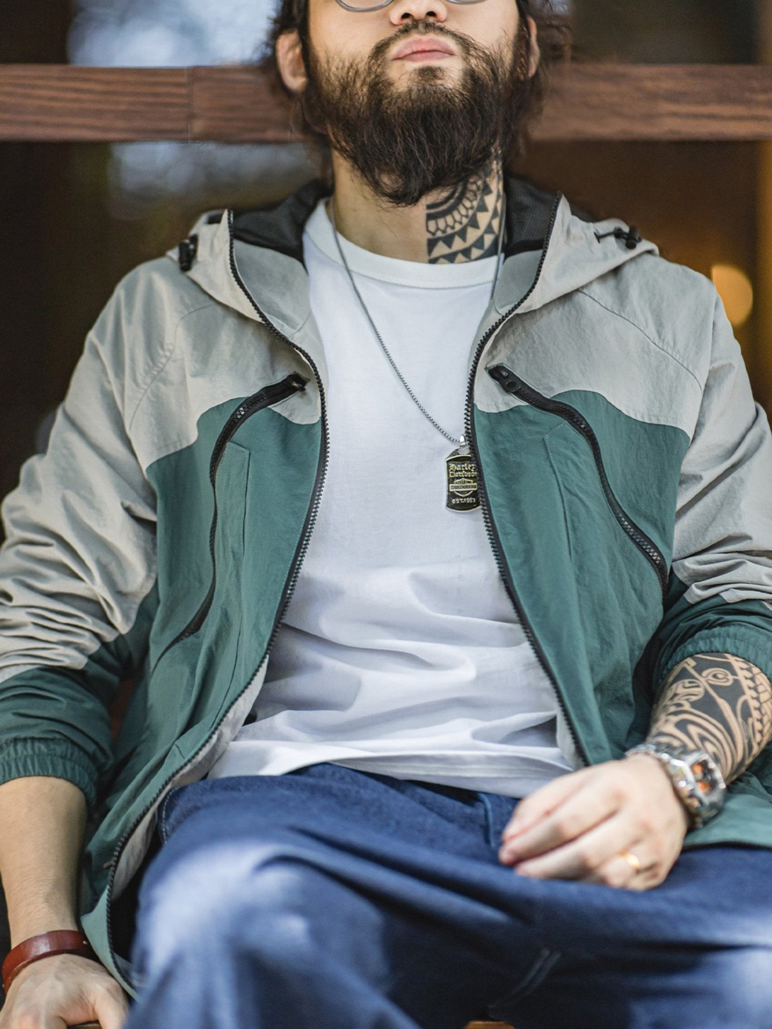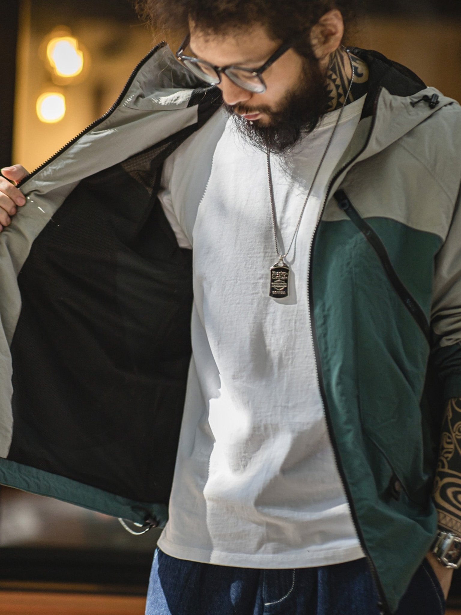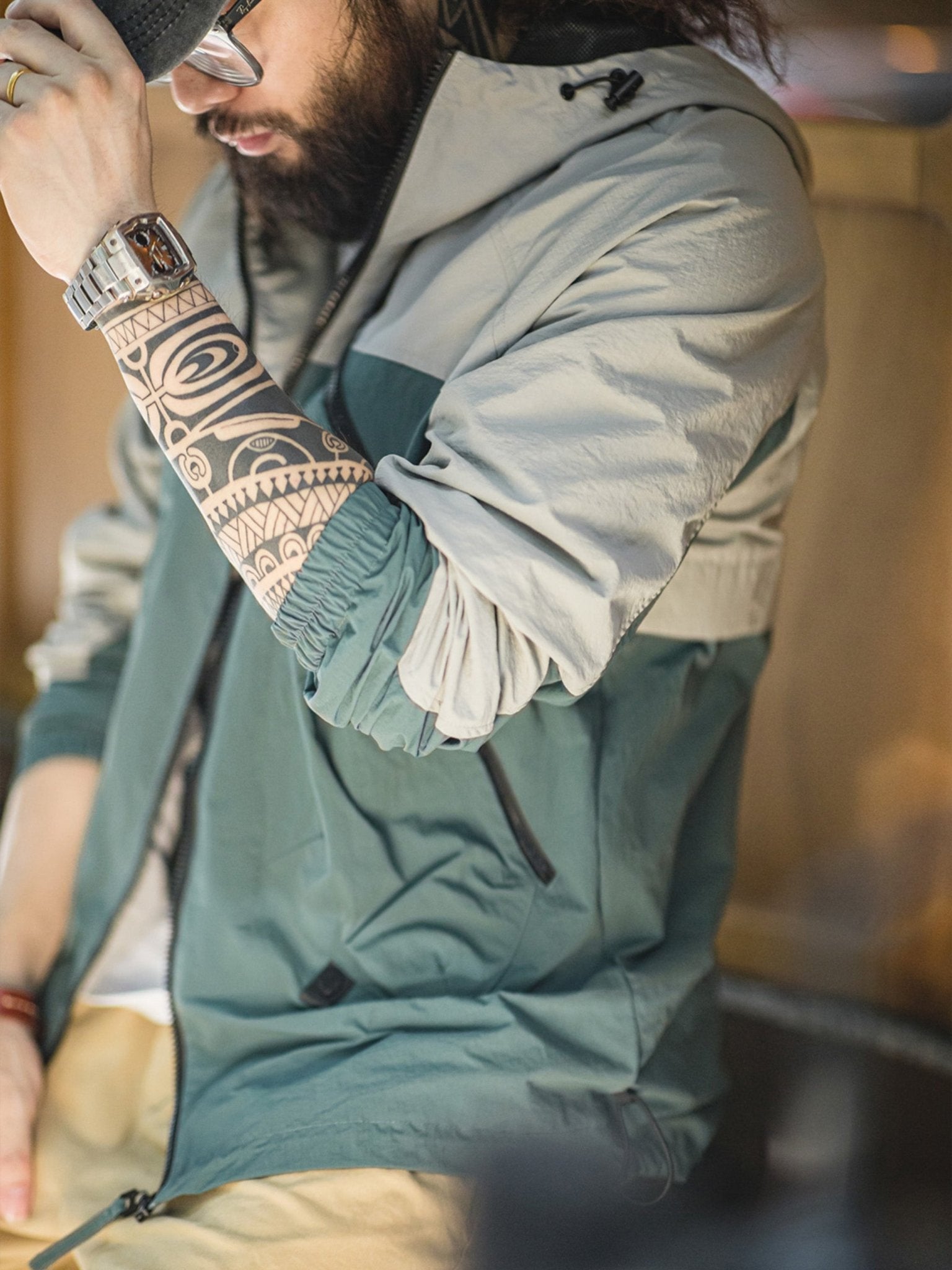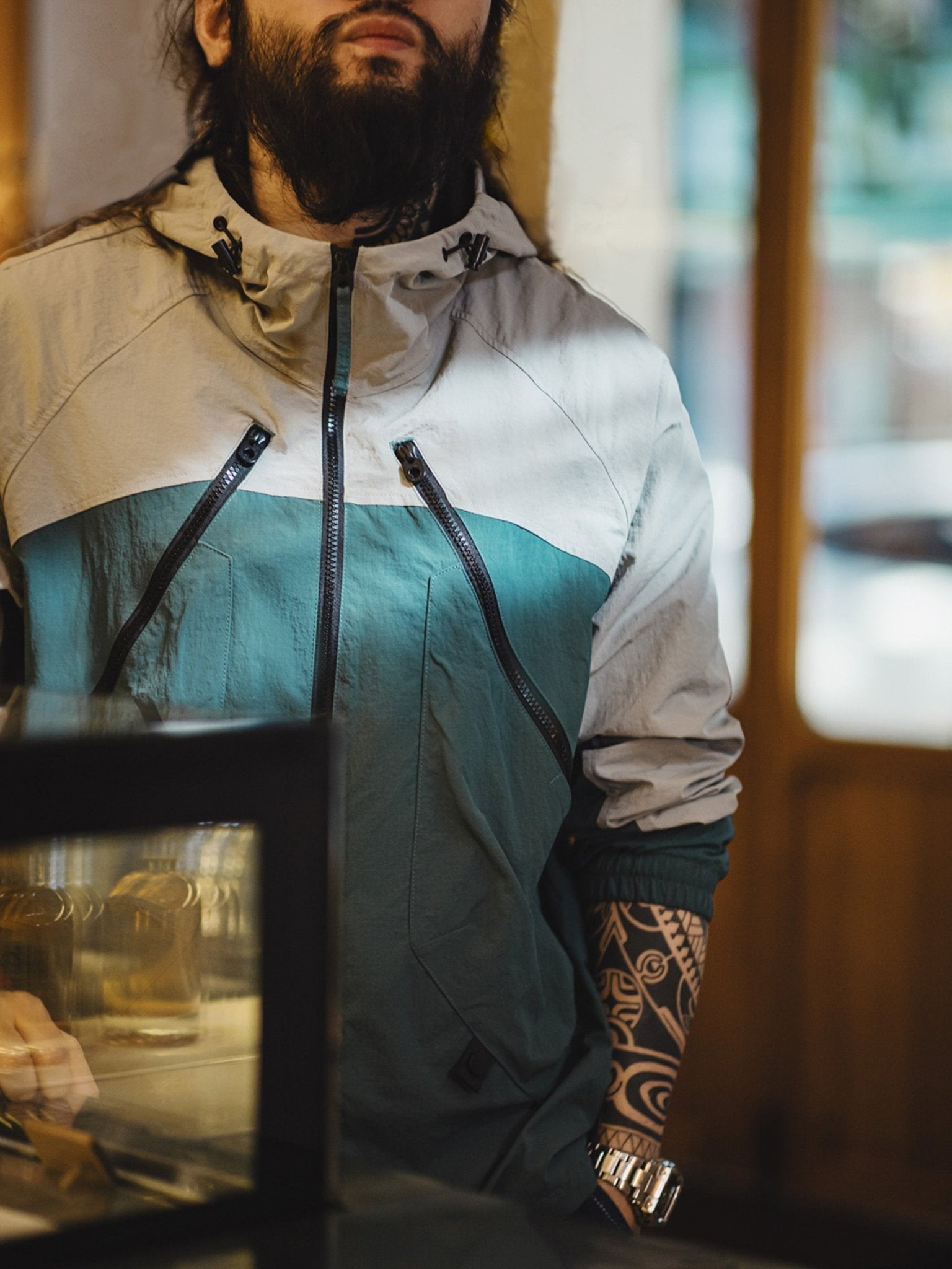 ジッパーやドローコードなどのデザイン要素を加え、マットな質感の生地がジャケットに軽度のレトロなダークなテクスチャーをもたらし、その特徴を際立たせています。