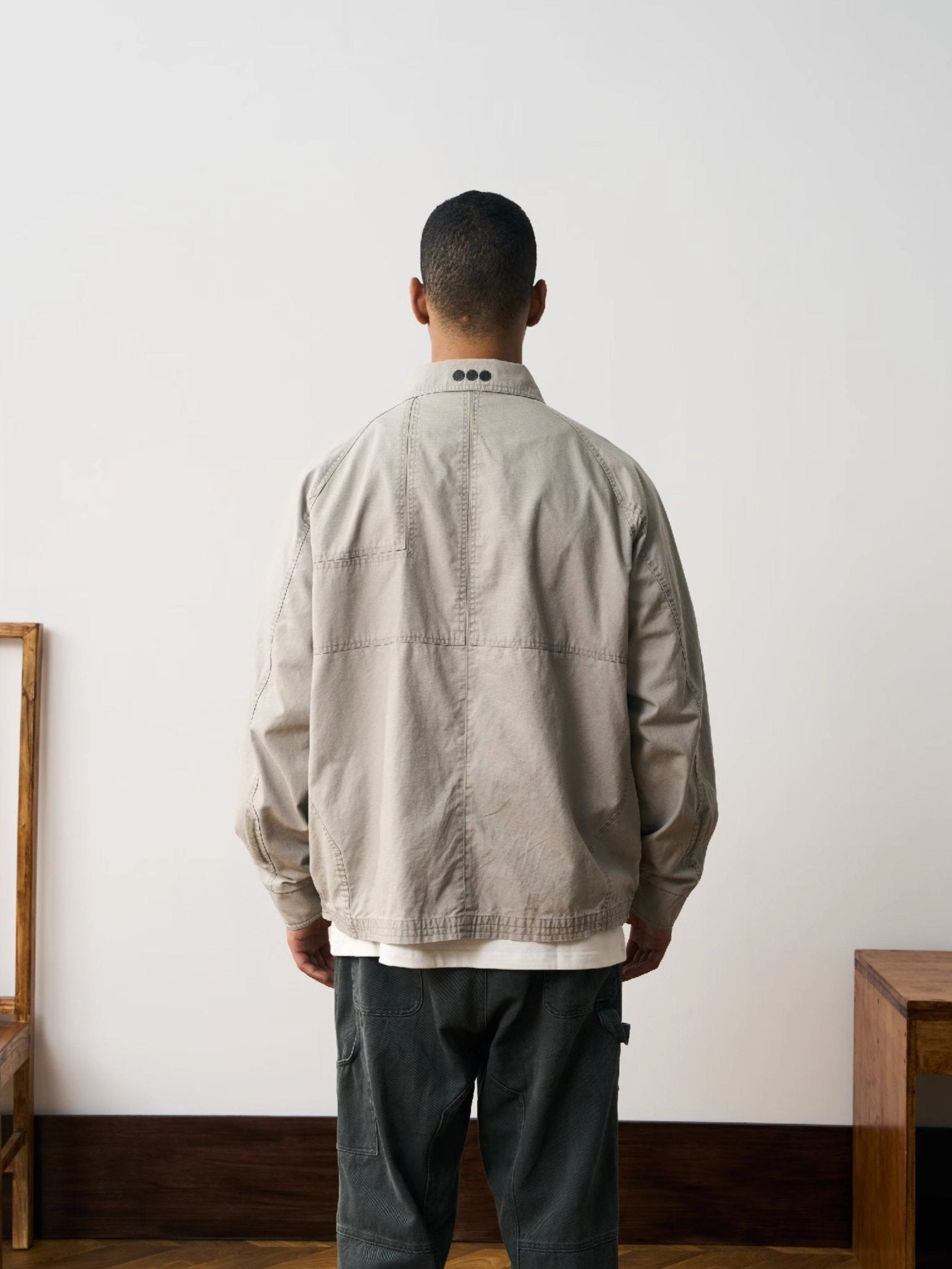 このジャケットはコットン生地を使用しています。その滑らかな感触が魅力です。ほどよい厚みがありながら、軽やかで重たさを感じることなく、快適な着用感を提供します。
