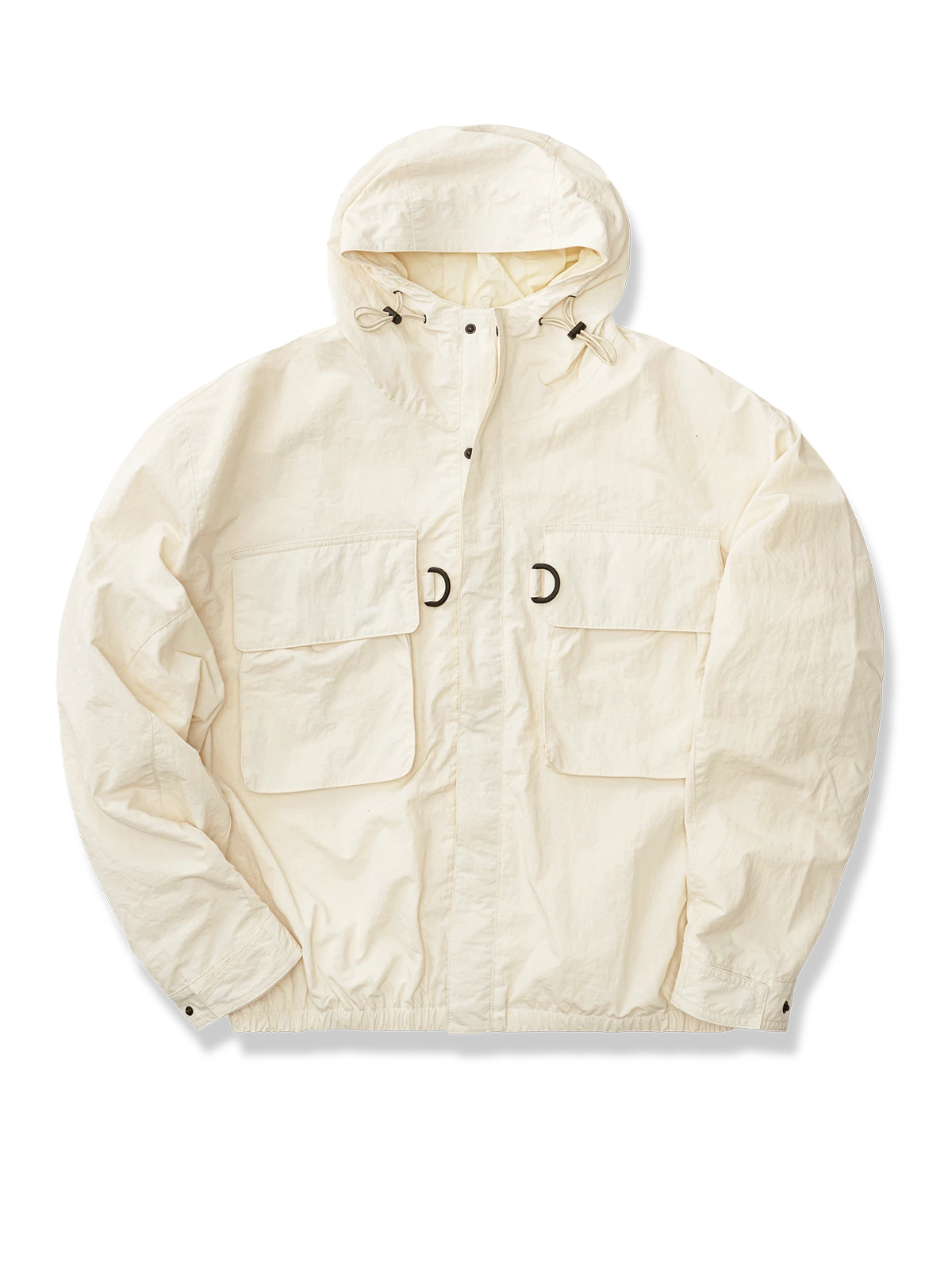 全体のカットはショートジャケットを基にして、ポケットの横にはフックがあり、小物を吊るすことができます。ボタンやジッパーのフロントファスナーやボタンの袖口、引き締められた裾のデザインは風を遮り寒さから守るのに役立ちます。