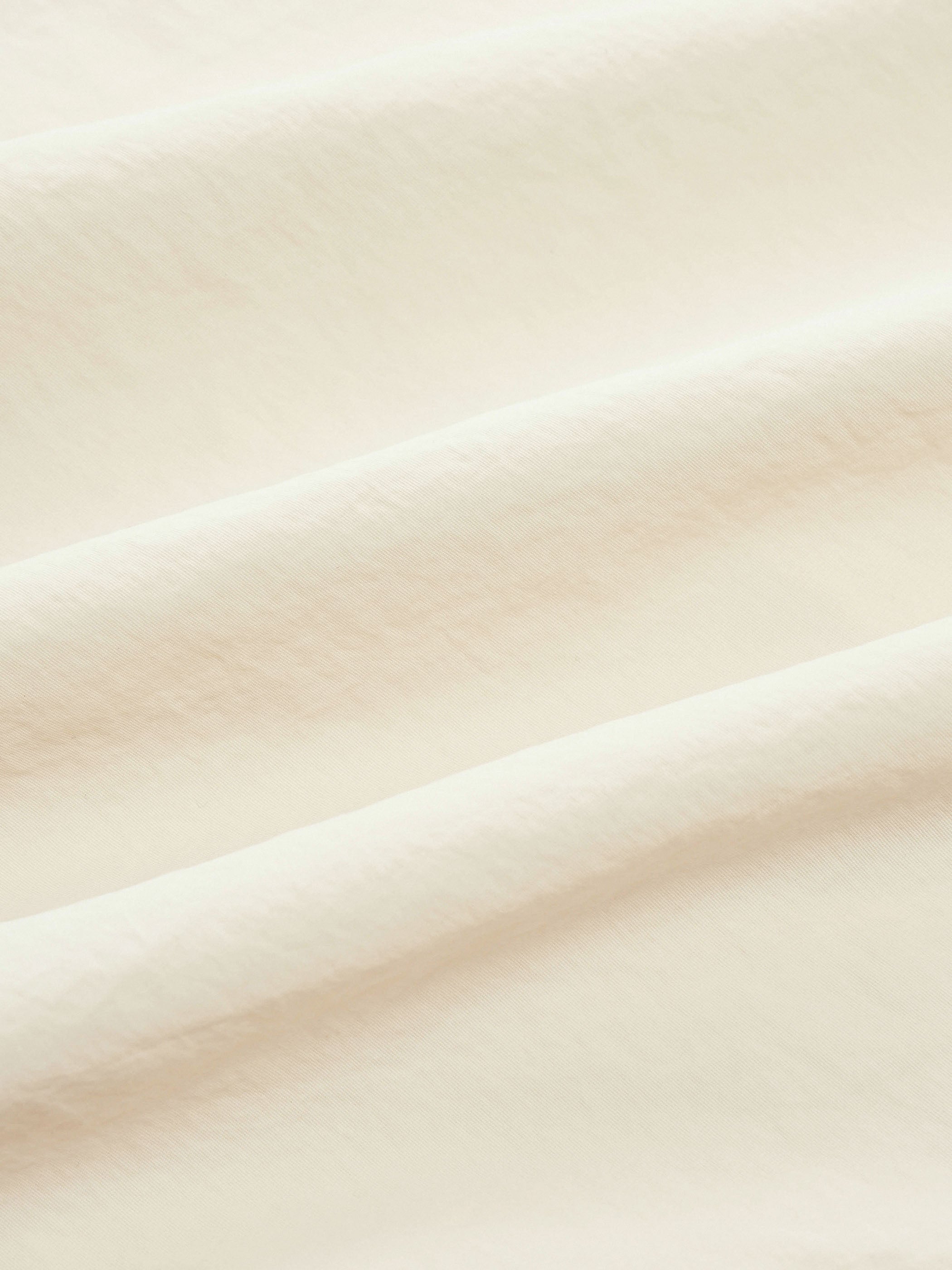 主素材には高密度ナイロンのクリンクル生地が使用されて、アイロンをかける必要がなく、さらりとした肌触りで快適であり、生活防水性と防風性を備えています。