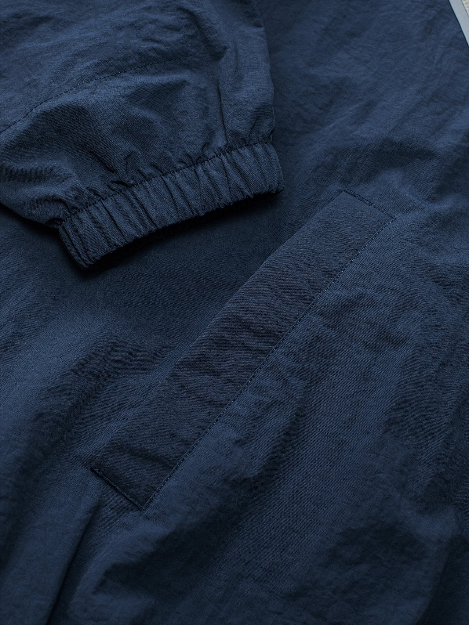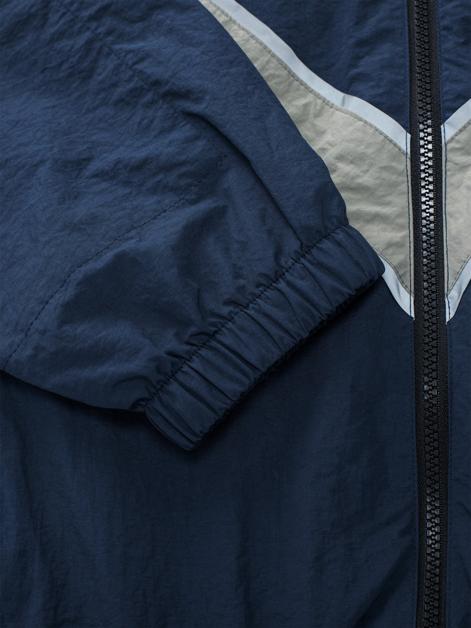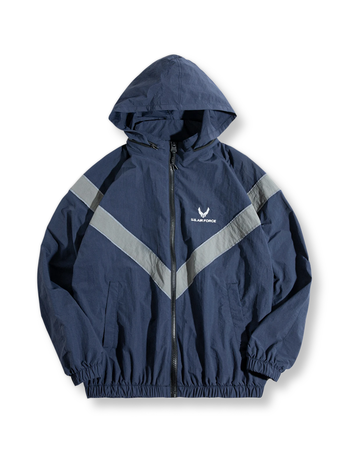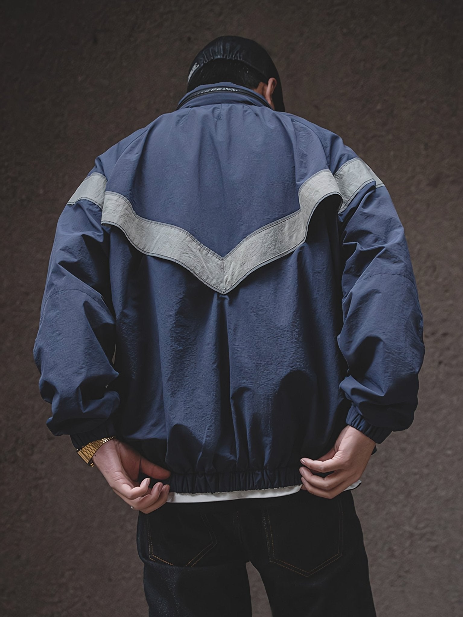 古着ブームの影響で若者にも人気のある、米陸軍・空軍のトレーニングジャケットにインスピレーションを得て改良されたデザインです。フロント・バックには光を反射する素材を使用したグレーの大きなV字のウイングがあしらわれ、クールでスポーティーな印象を与えます。
