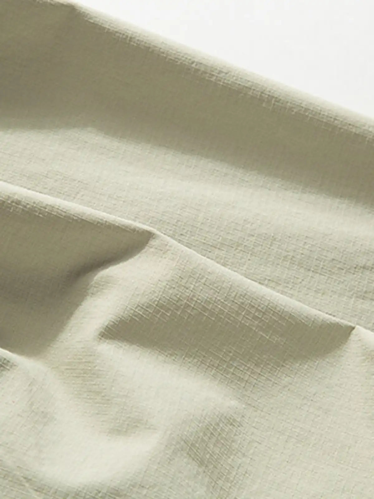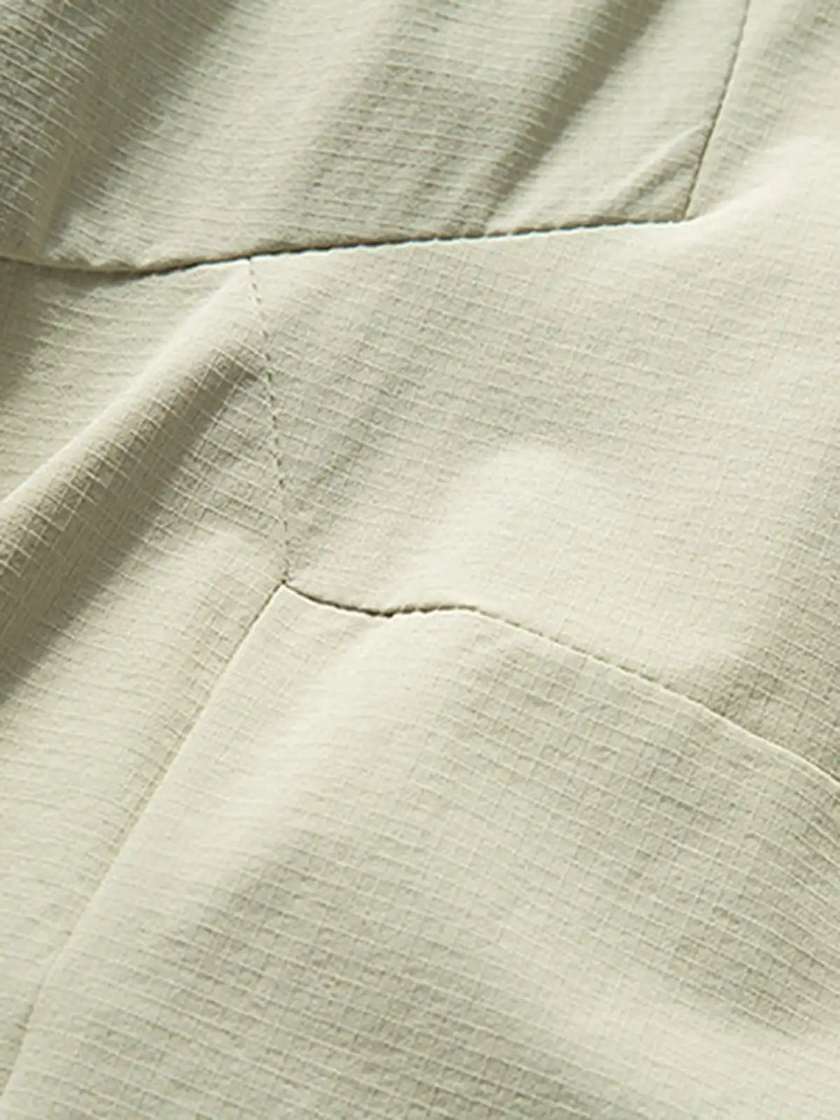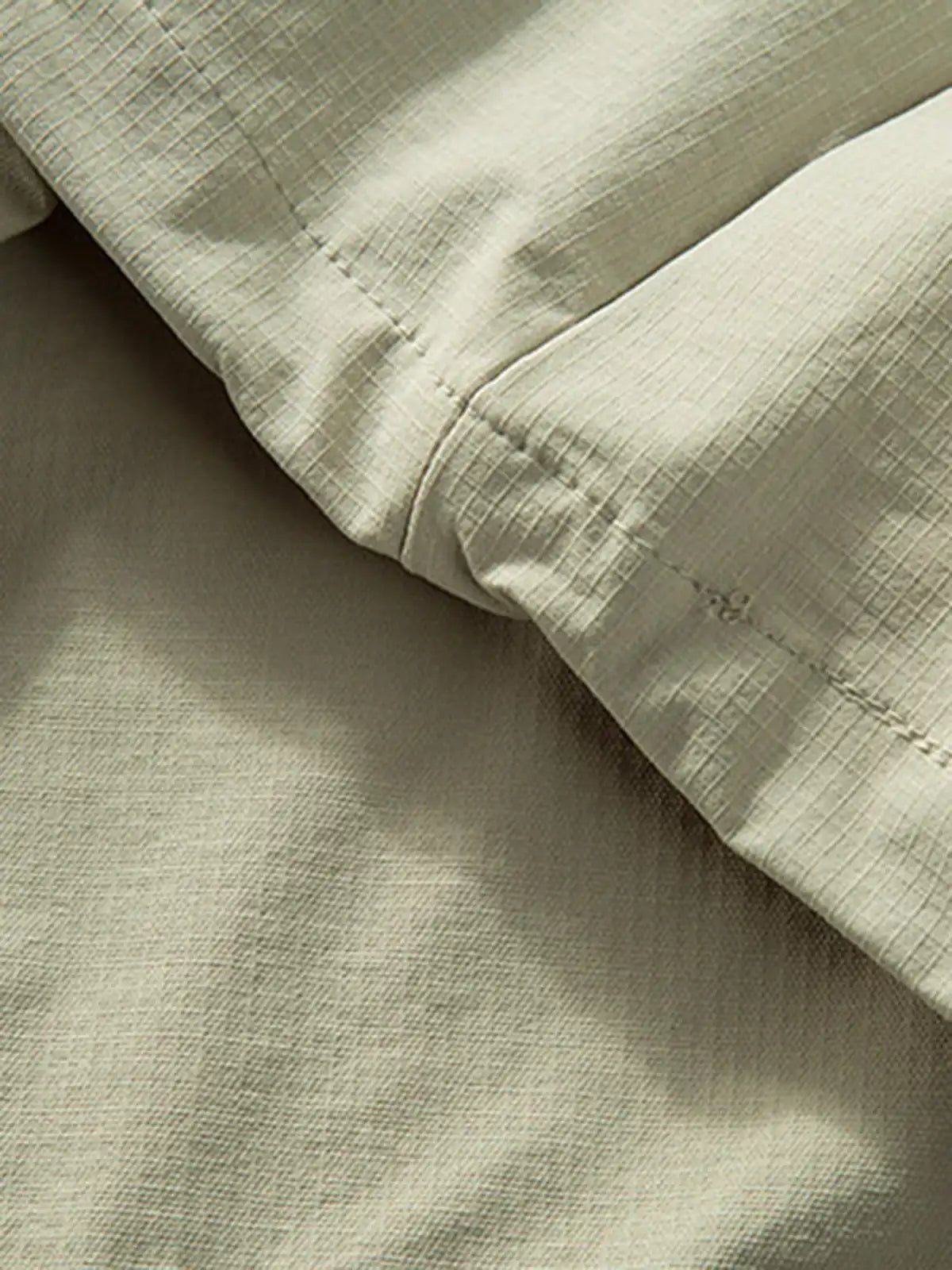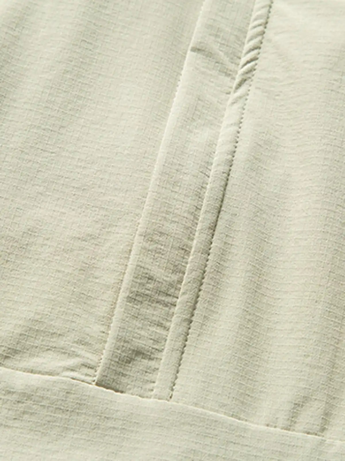 無駄のないシンプルなデザインながら、ハーフジップ仕様と立ち襟が程よいアクセントに。ゆとりある身幅と肩周りでストレスフリーな着心地を実現し、スウェット感覚で気軽に羽織れます。フロントには大きめのポケットを配置し、収納性とデザイン性を両立。軽量かつシワになりにくい生地を使用しており、春秋のライトアウターとしても活躍します。