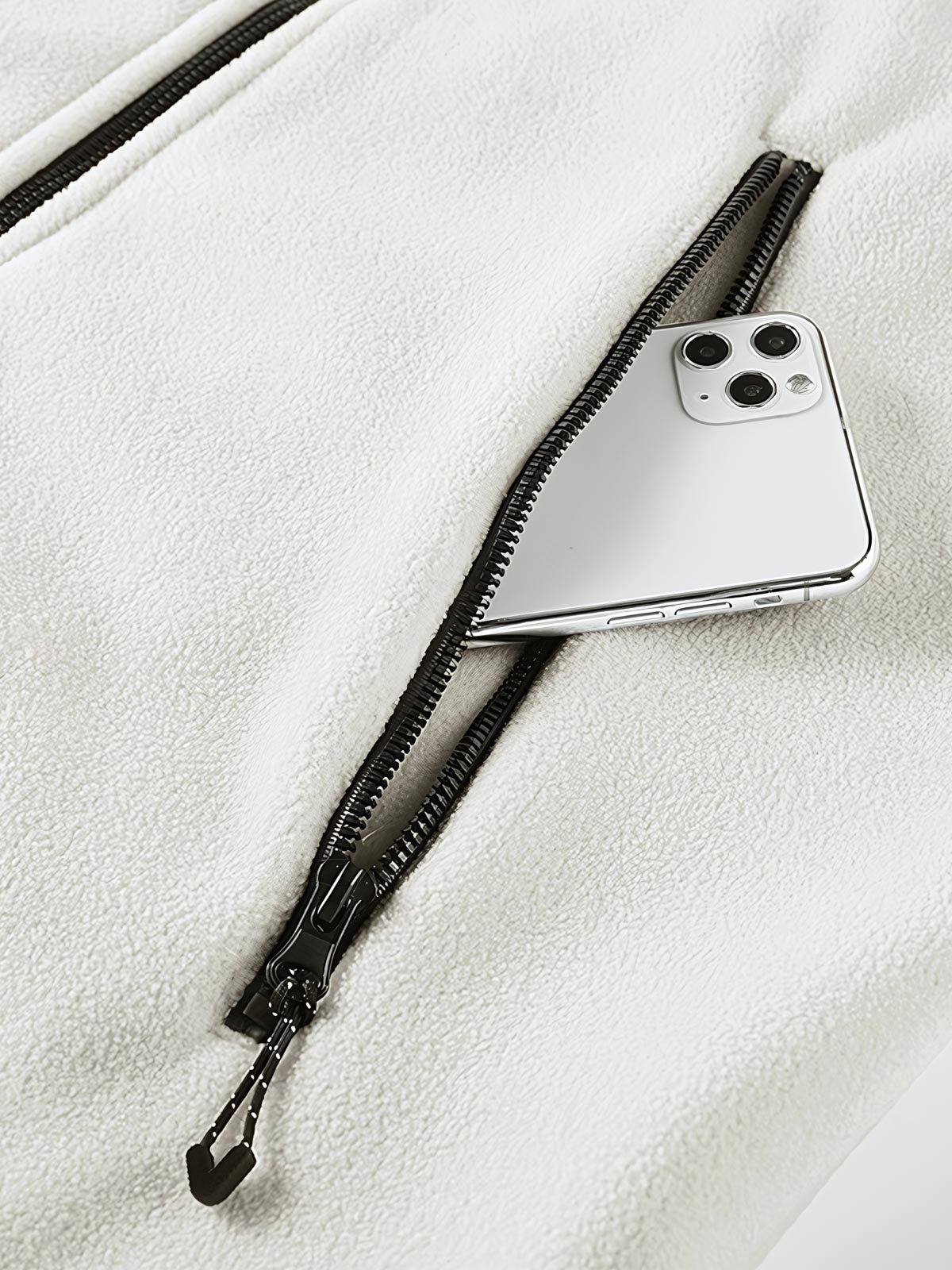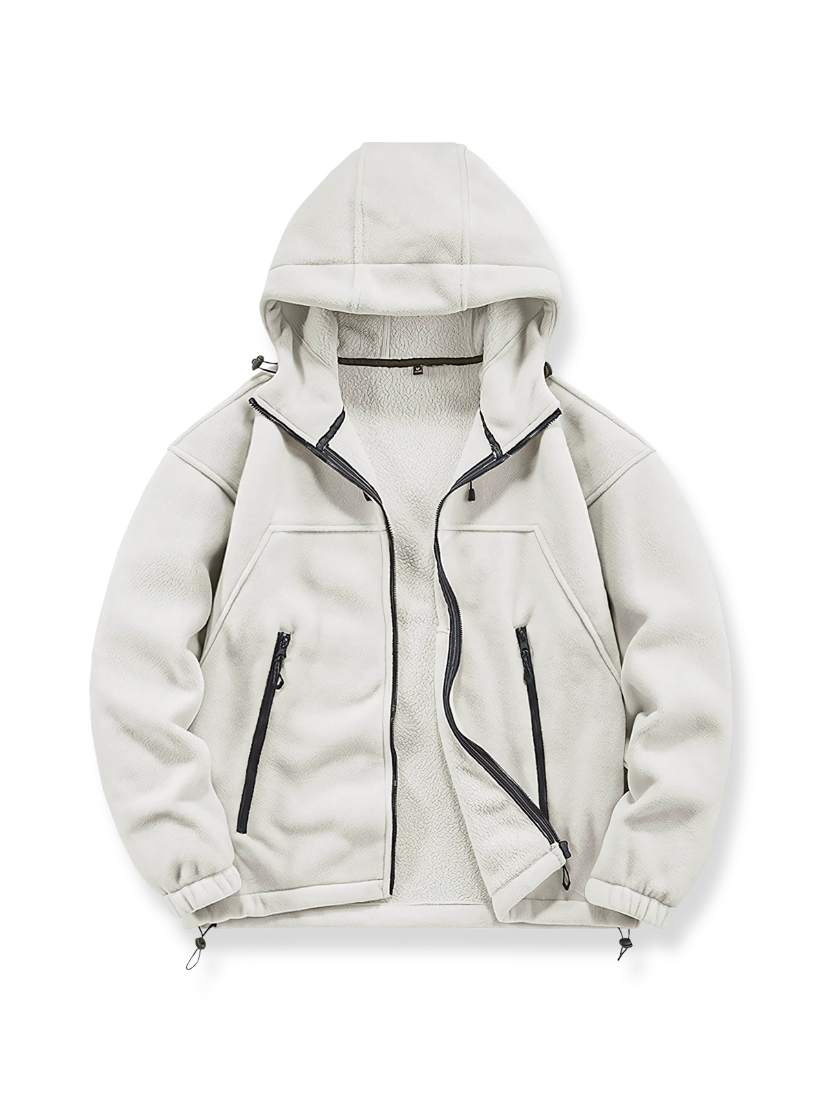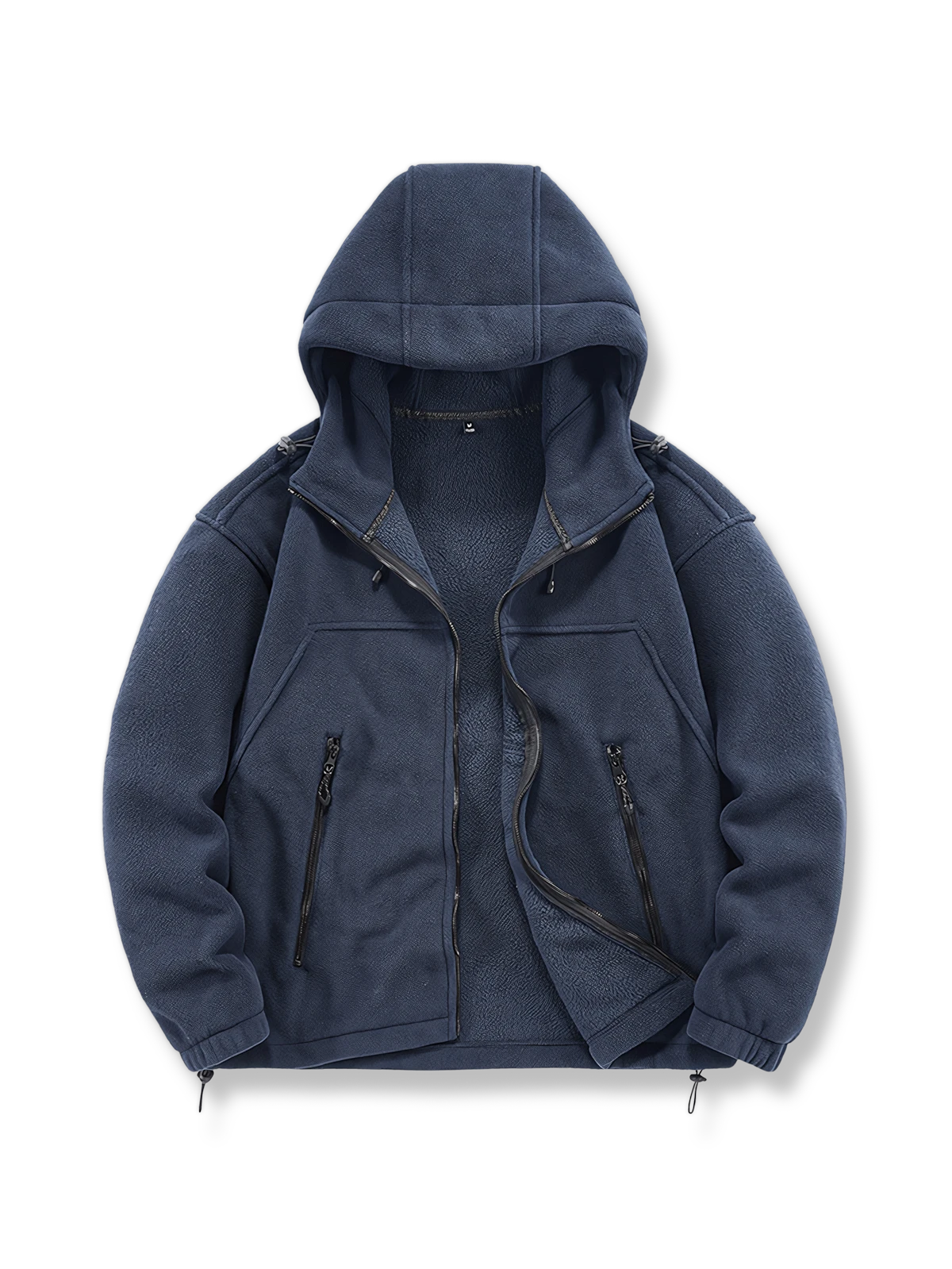フリース素材は柔らかく軽量で、暖かさを提供しながらもかさばりません。フードは寒い天候で頭部と耳を保護し、フルジップデザインは着脱を容易にし、体温調節に便利です。