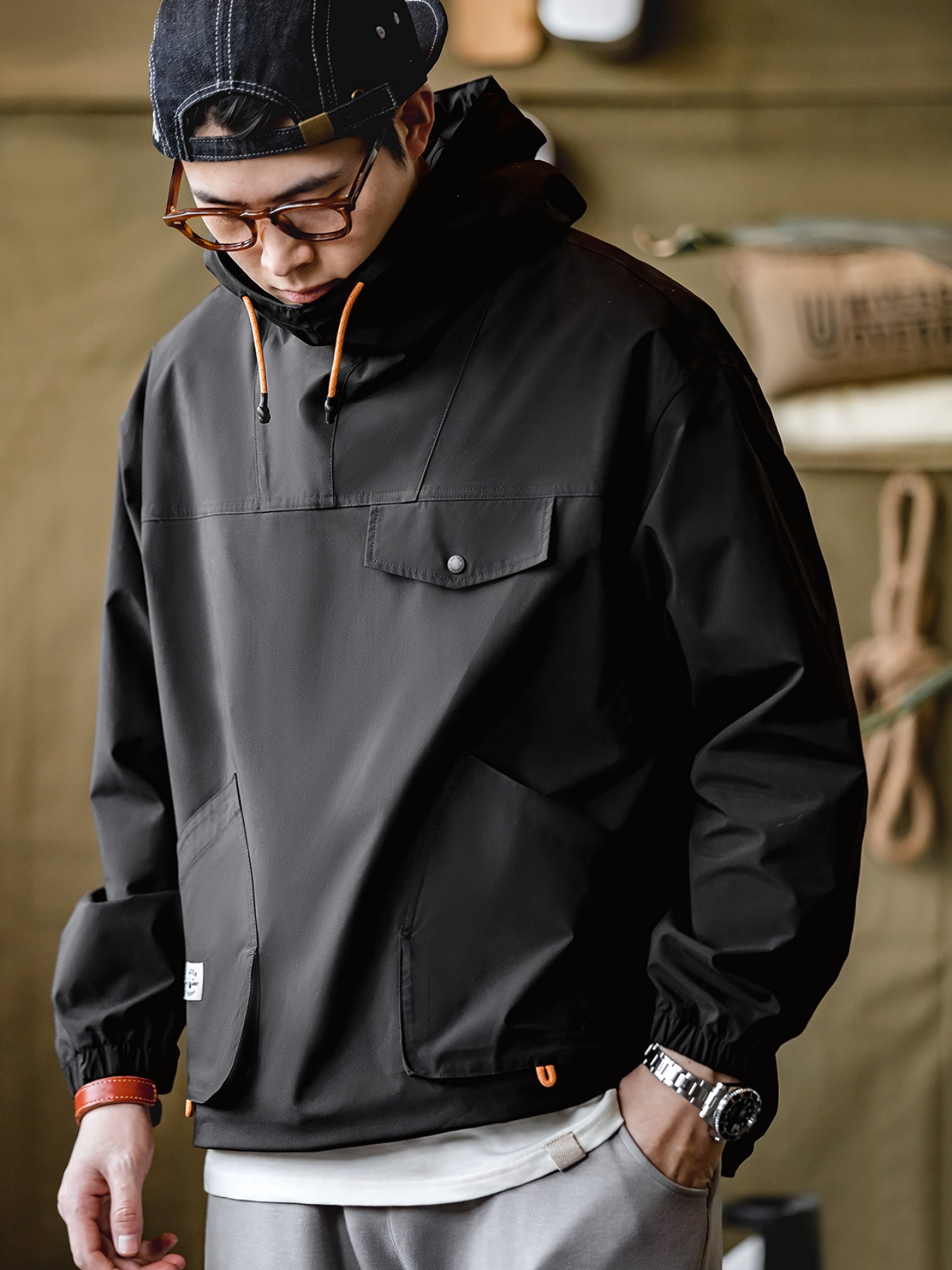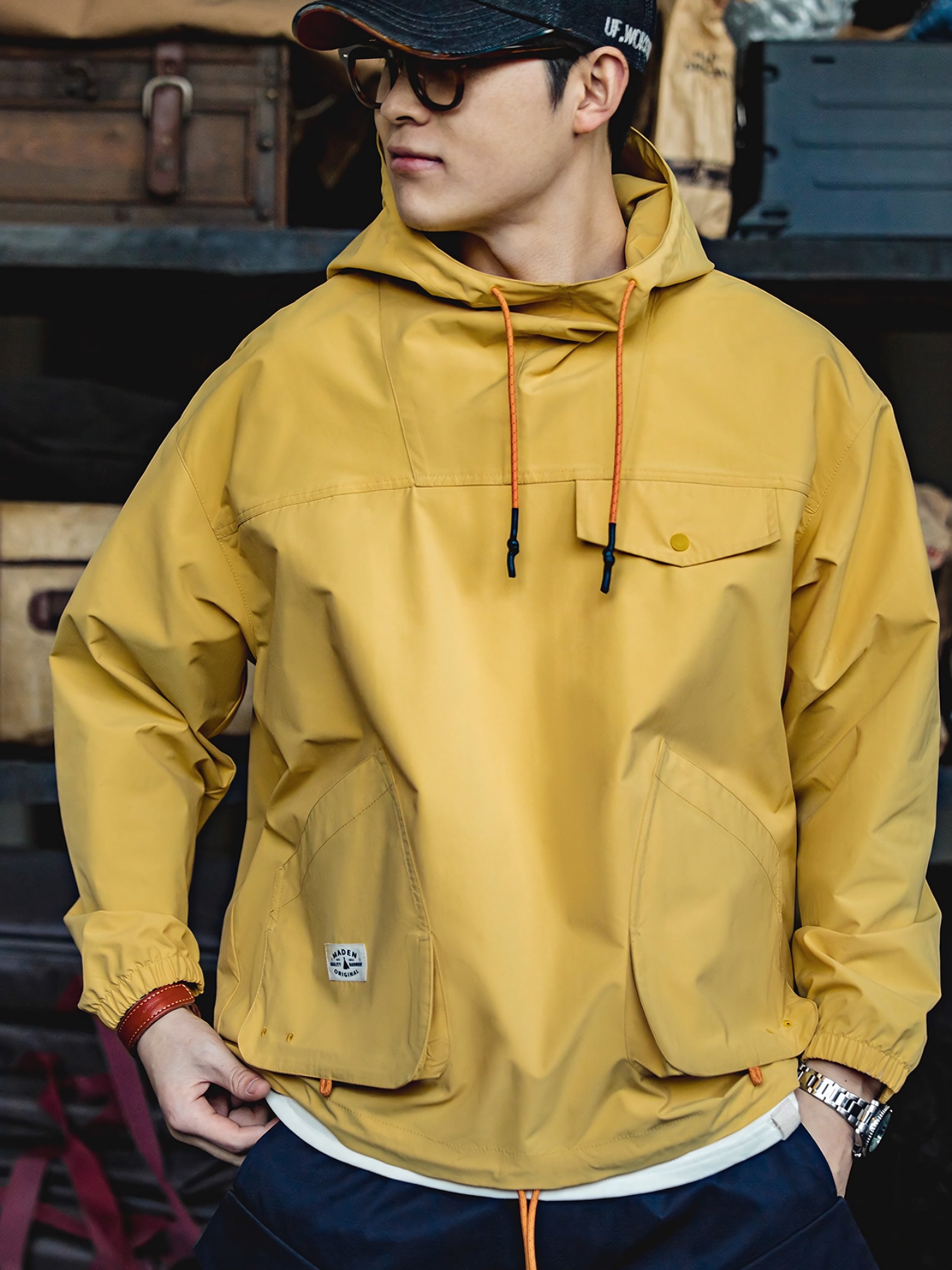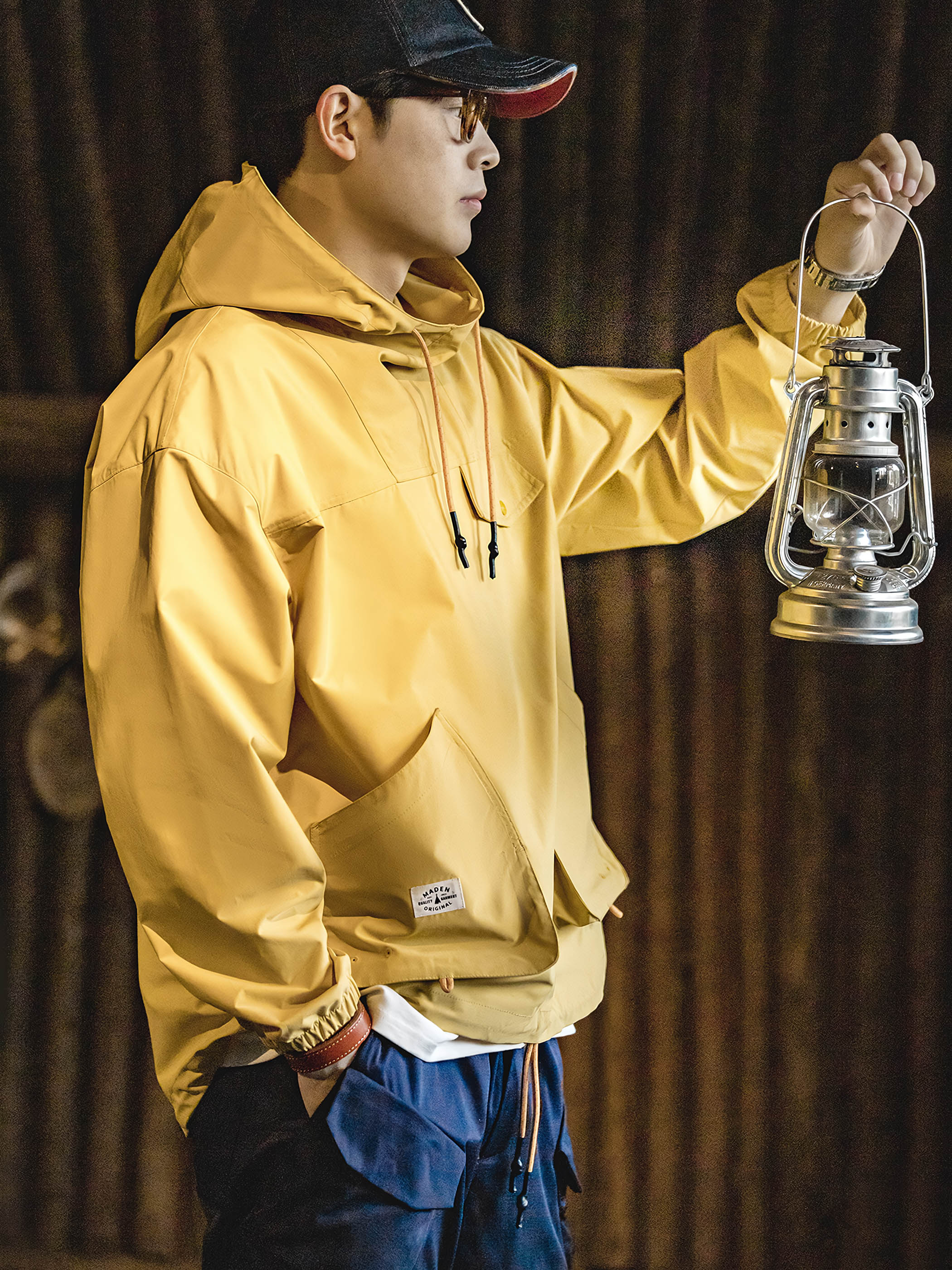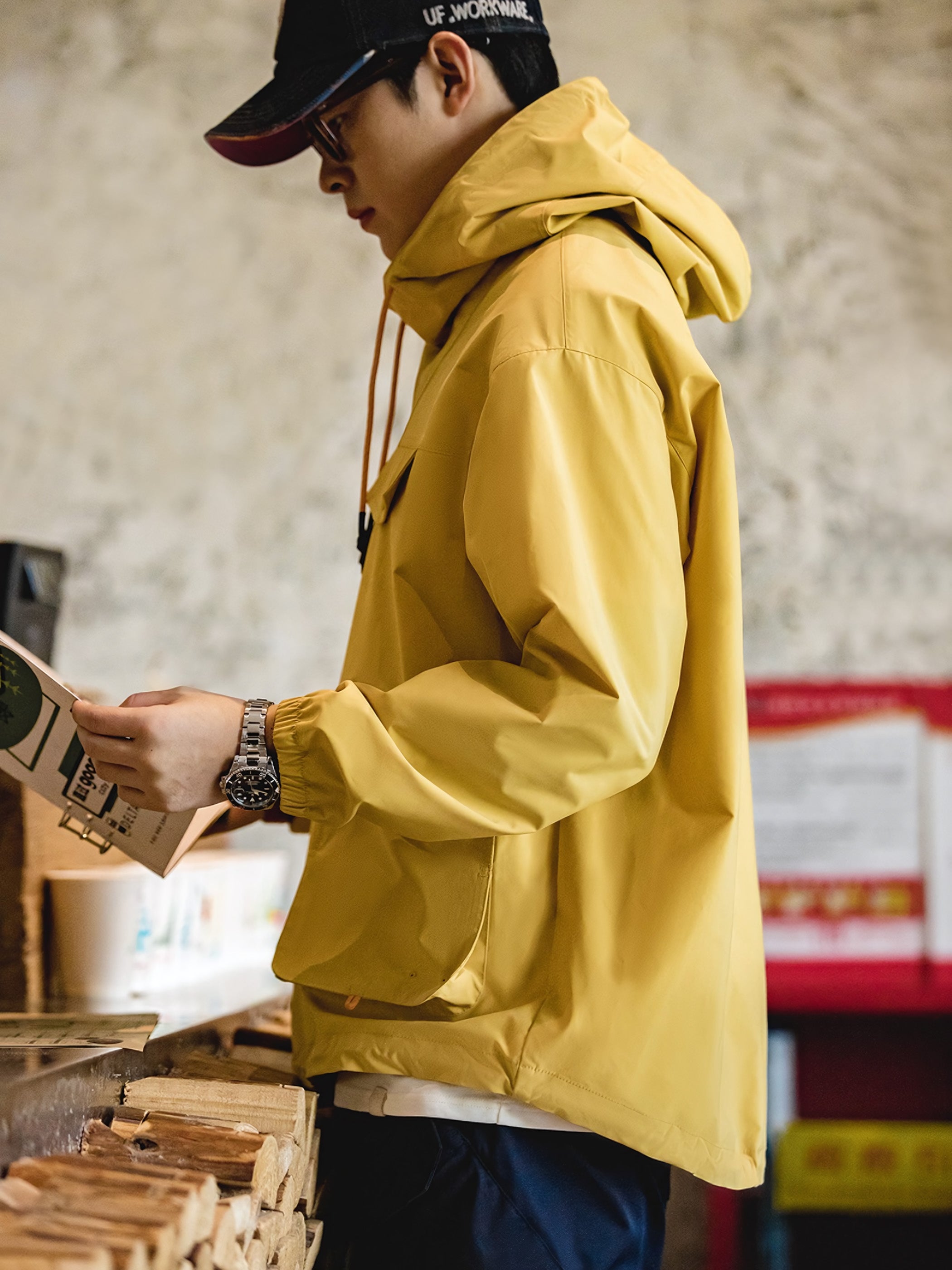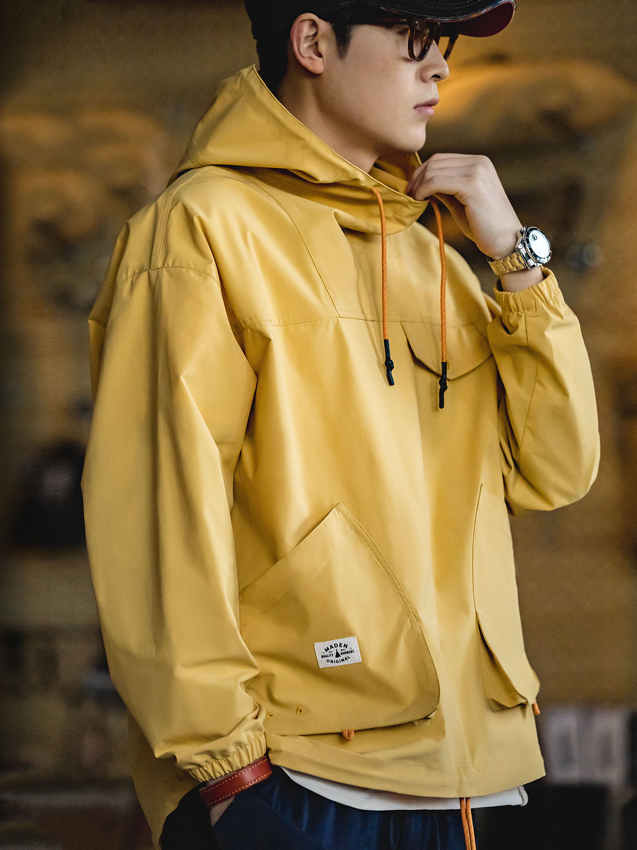 ポリエステル素材は防水性と防風性に優れており、着心地が軽く、さらっとした肌触りを持っています。また、水洗い処理により、古着風の質感と色あせを再現しています。このアウターウェアはアウトドア、スポーツ、スケーターのスタイルに適しており、メンズとレディースの両方が着用できるユニセックスアイテムです。