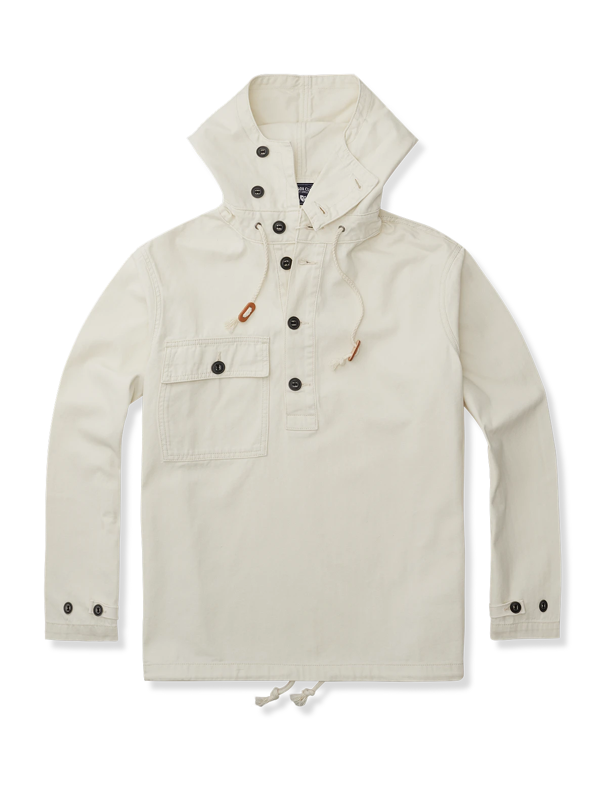 ボタンが付いたヘンリーネック、フード、そしてリブ仕様の袖口や裾など、細部までこだわりが見られます。特徴的なヘンリーネックのようにボタンが付いており、シーンに合わせたスタイリングが出来ます。