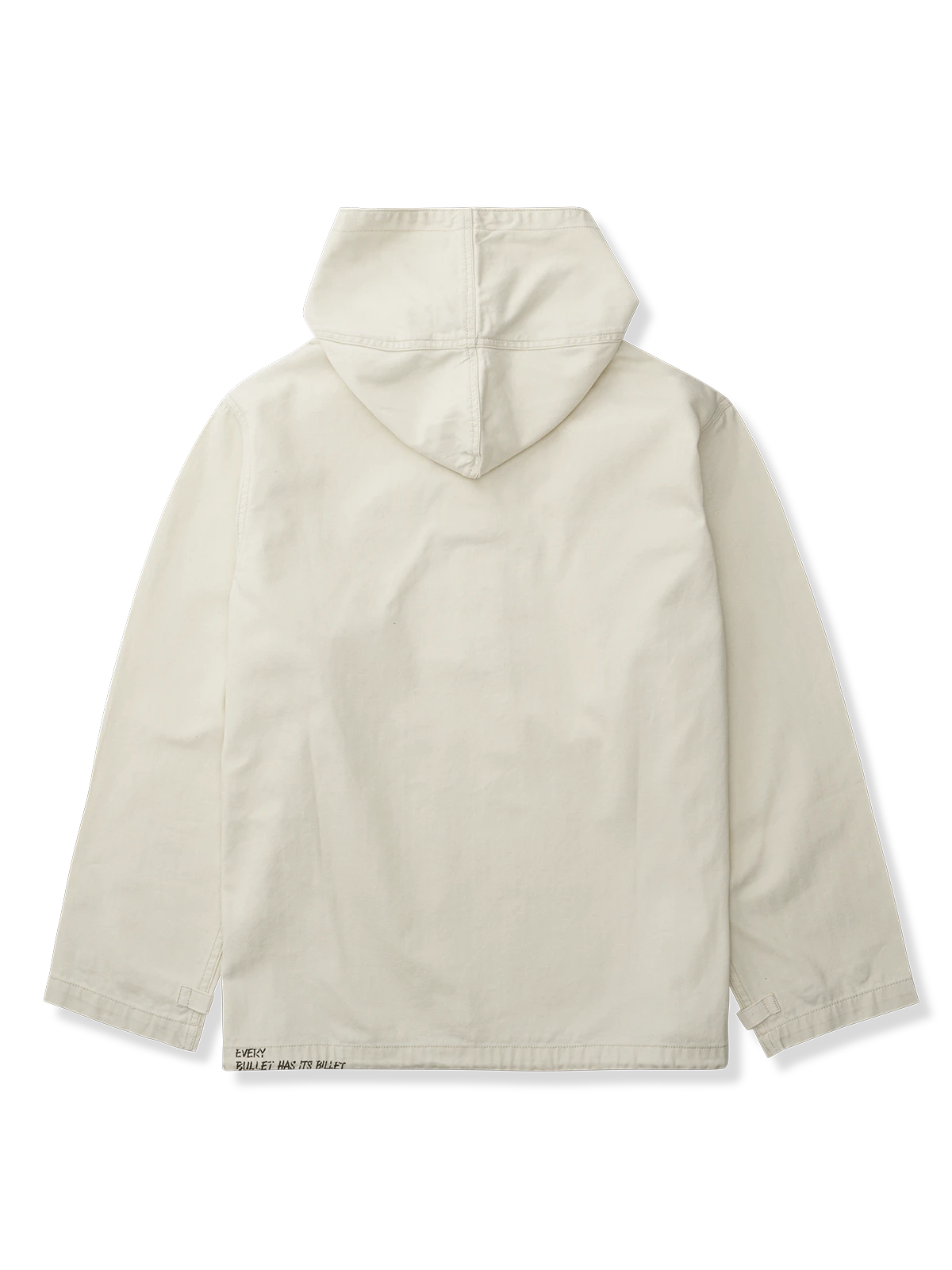 本アイテムはアメリカ海軍の作業用パーカーをモチーフにしたミリタリーサルベージフード付きパーカーであり、立体感のあるデザインが特徴的です。ざっくりとしたヘリンボーン編地で、シンプルでありながらも洗練された印象を与えます。