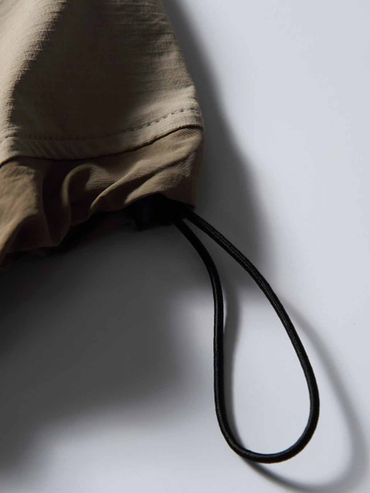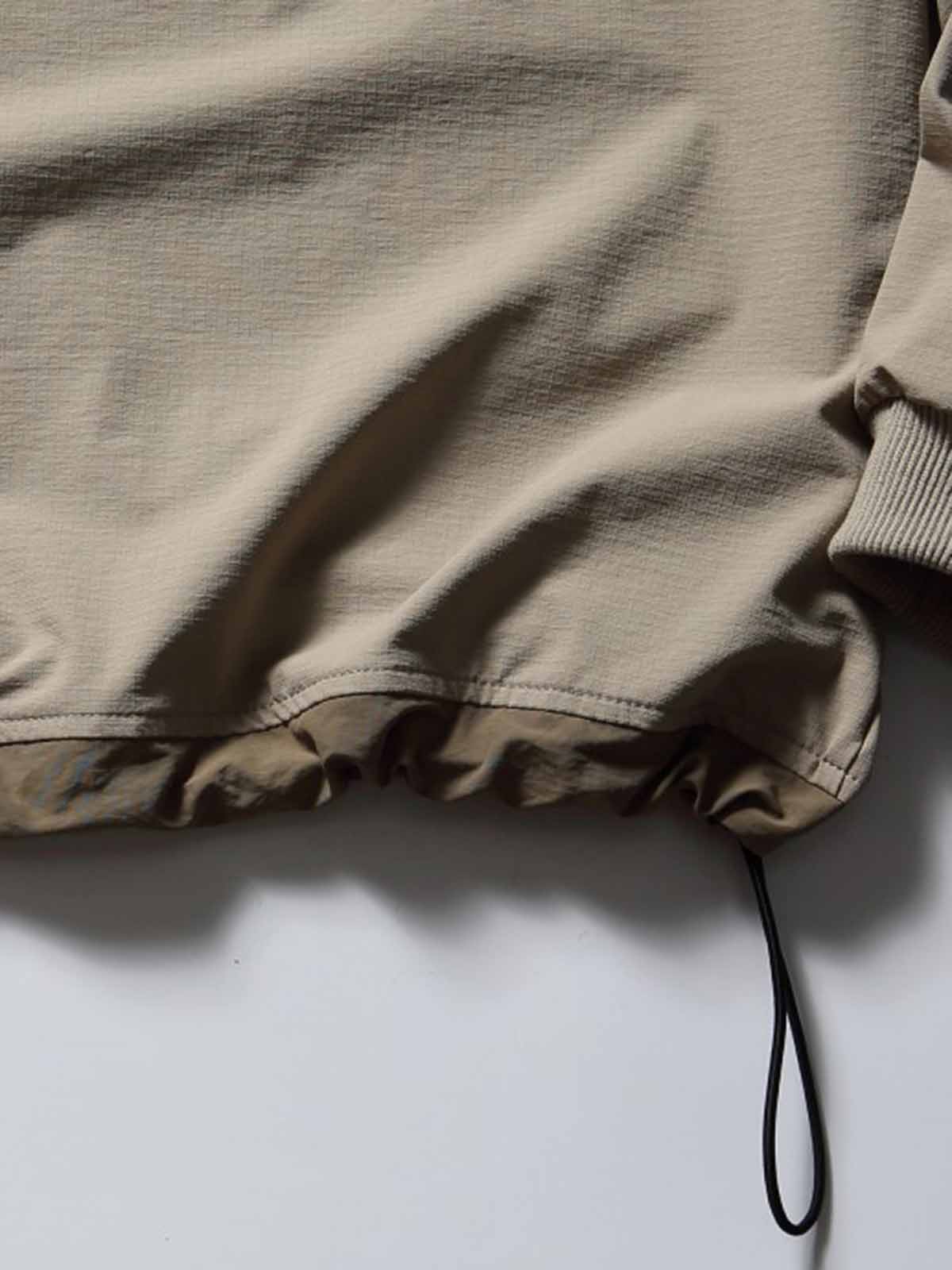 このロングスリーブTシャツは、88%ナイロンと12%ポリウレタンの生地を使用しており、軽量で弾力性に優れ、体に優しくフィットします。胸元の100%ナイロン製パッチポケットとジップデザインが、アウトドアにぴったりの機能性を提供。ドローコード付き裾とエラスティック袖口で、日常使いやアウトドアシーンに合わせて調整可能です。