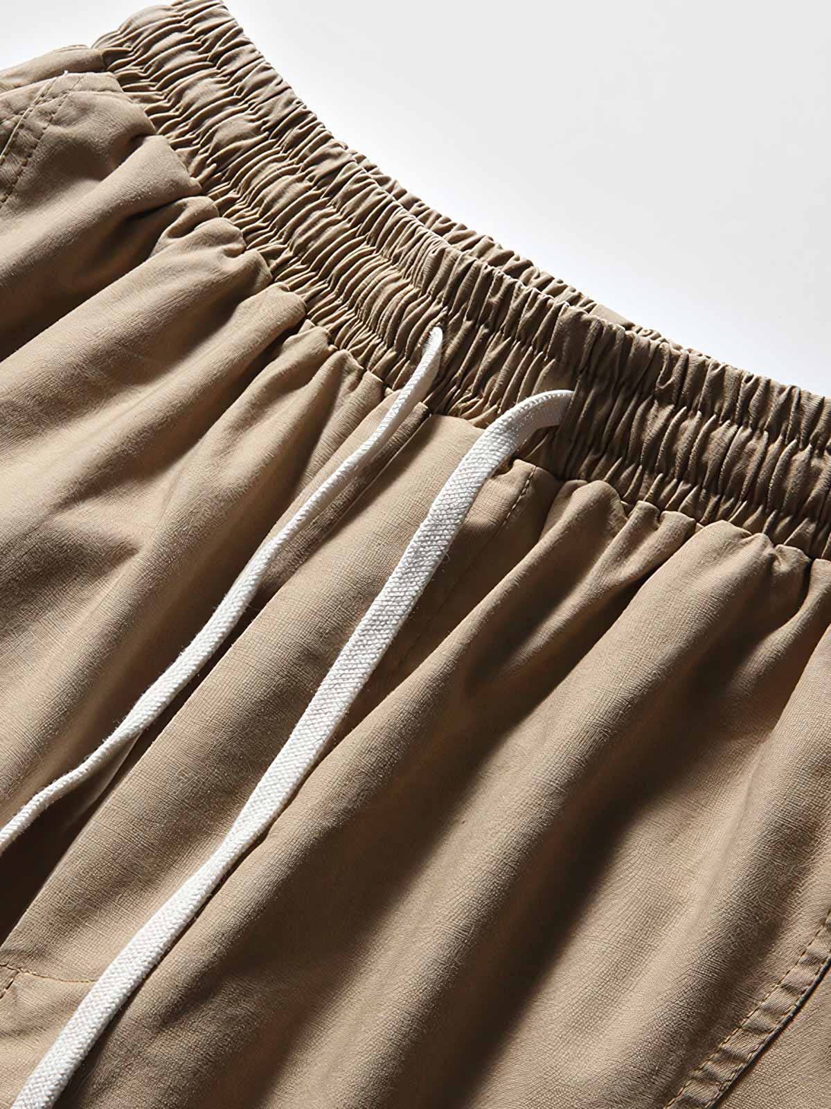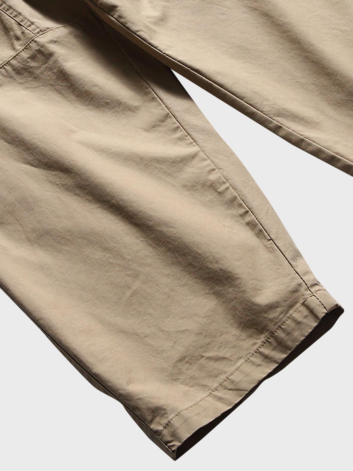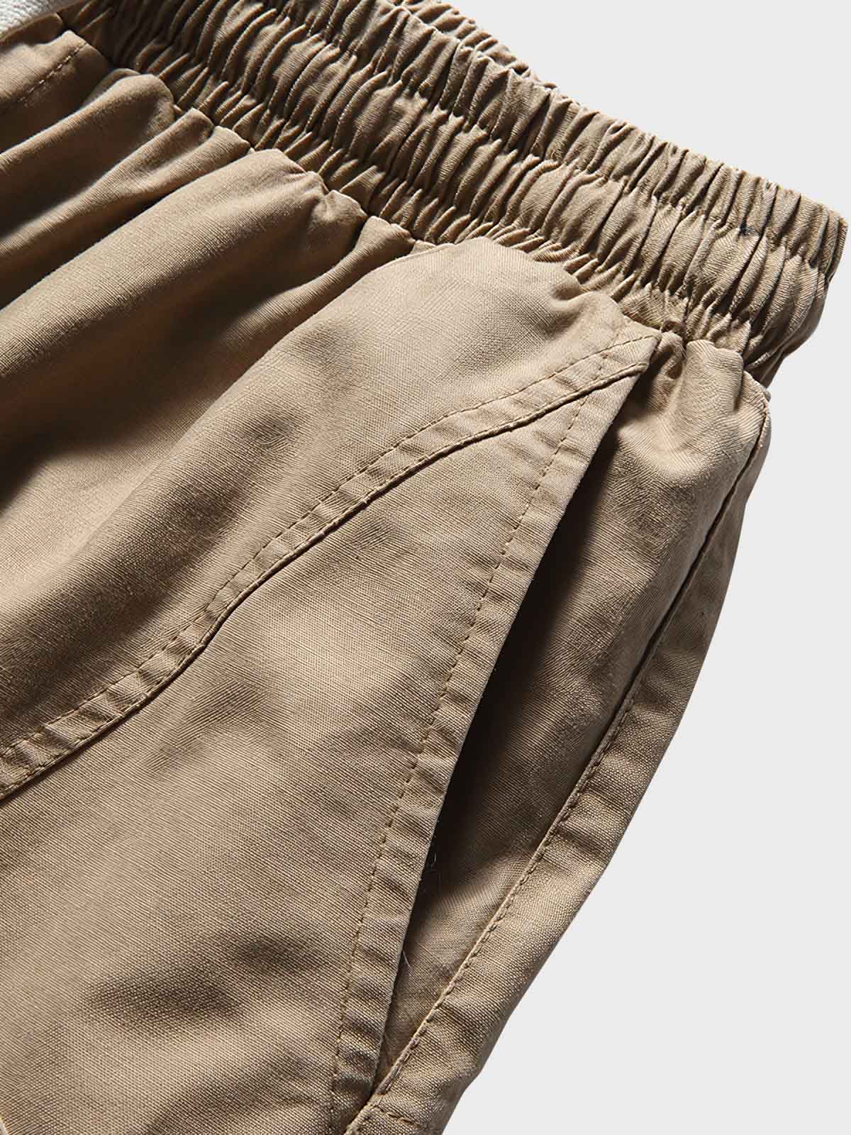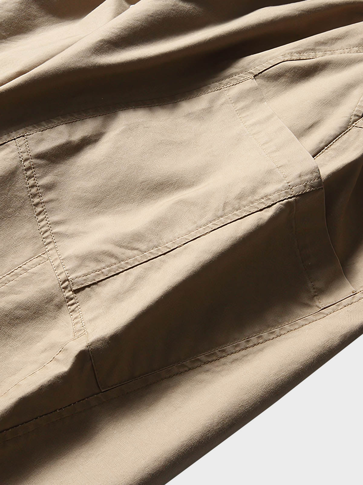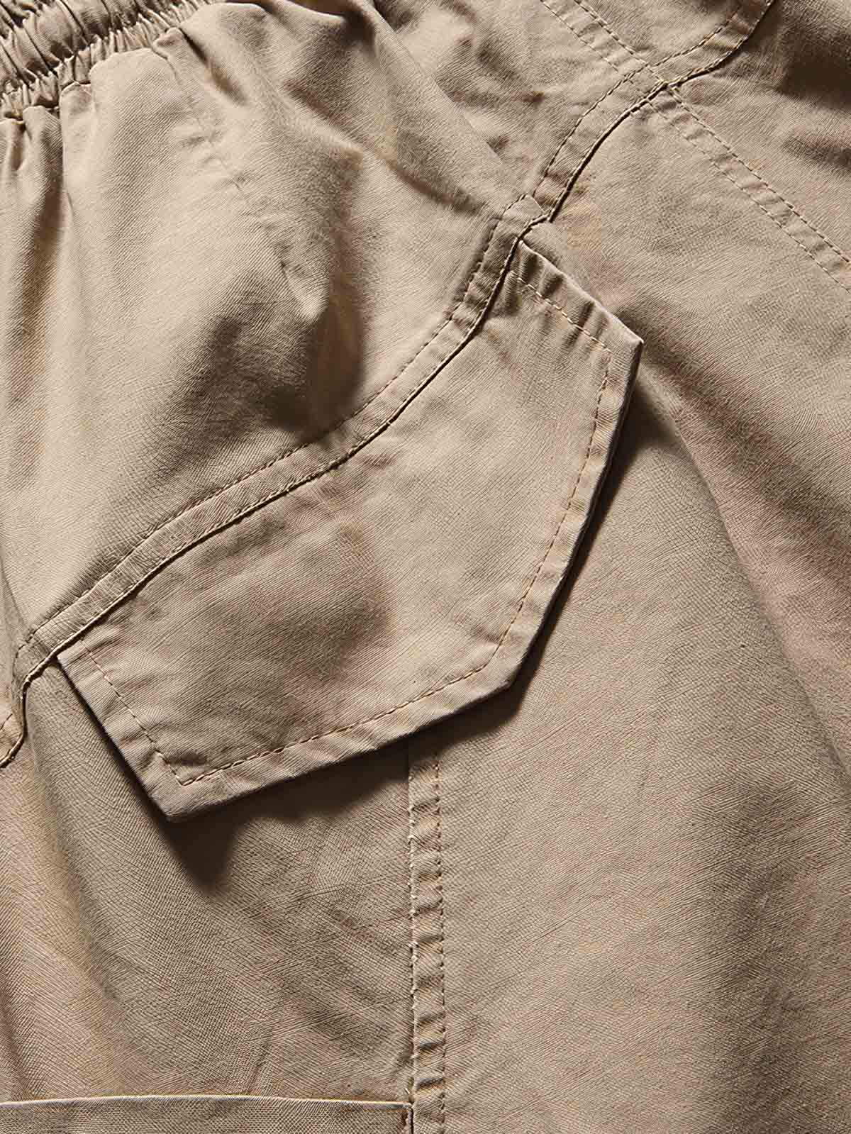 高品質のコットン素材を使用し、良好な通気性と快適さを提供します。パンツの複数のポケットデザインは実用的であり、カジュアルでアドベンチャラスな雰囲気を加えています。