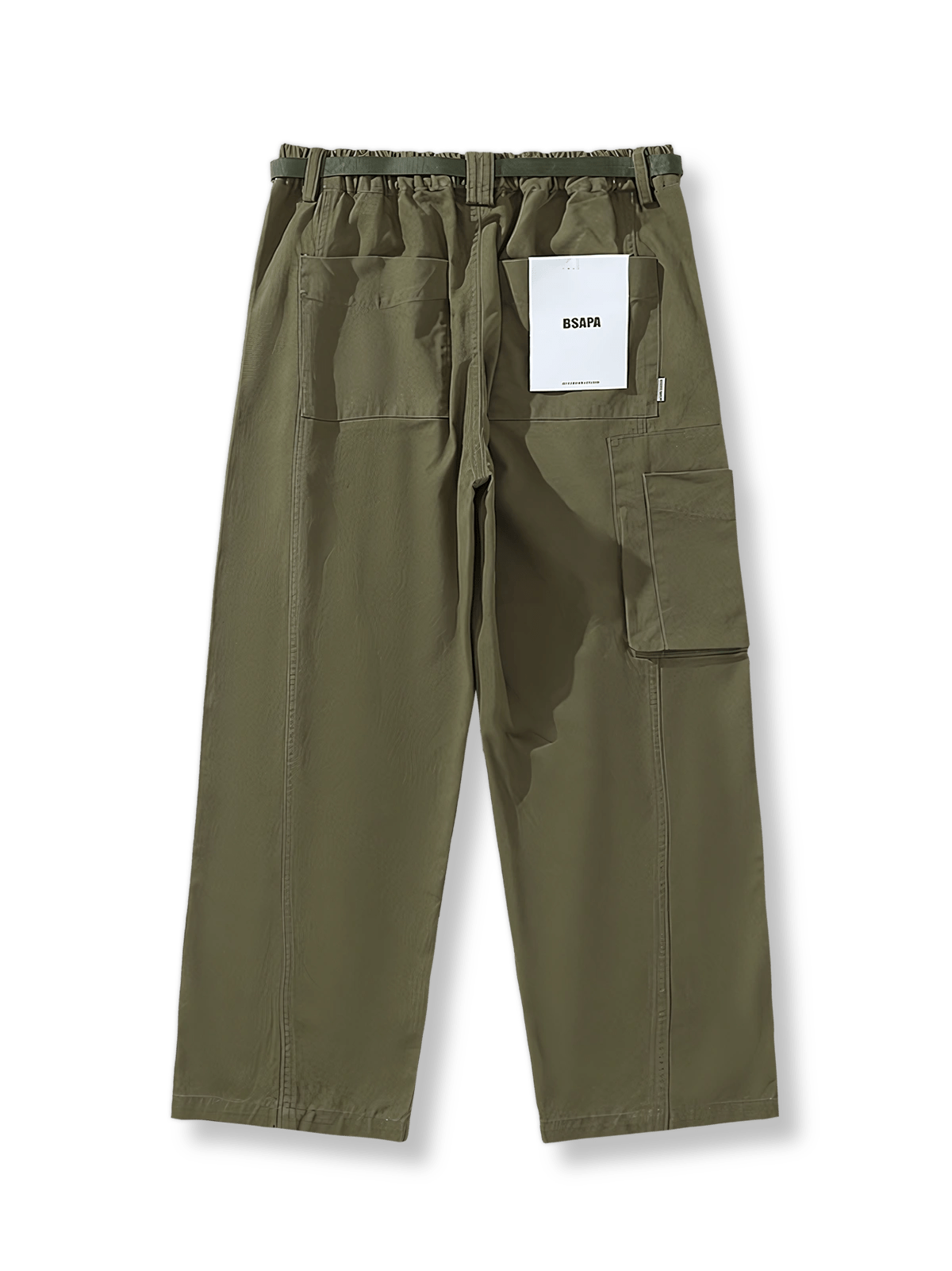 実用的なシングルポケットデザインと着脱可能なベルトを組み合わせた、クラシックなヴィンテージスタイルのワークパンツ。