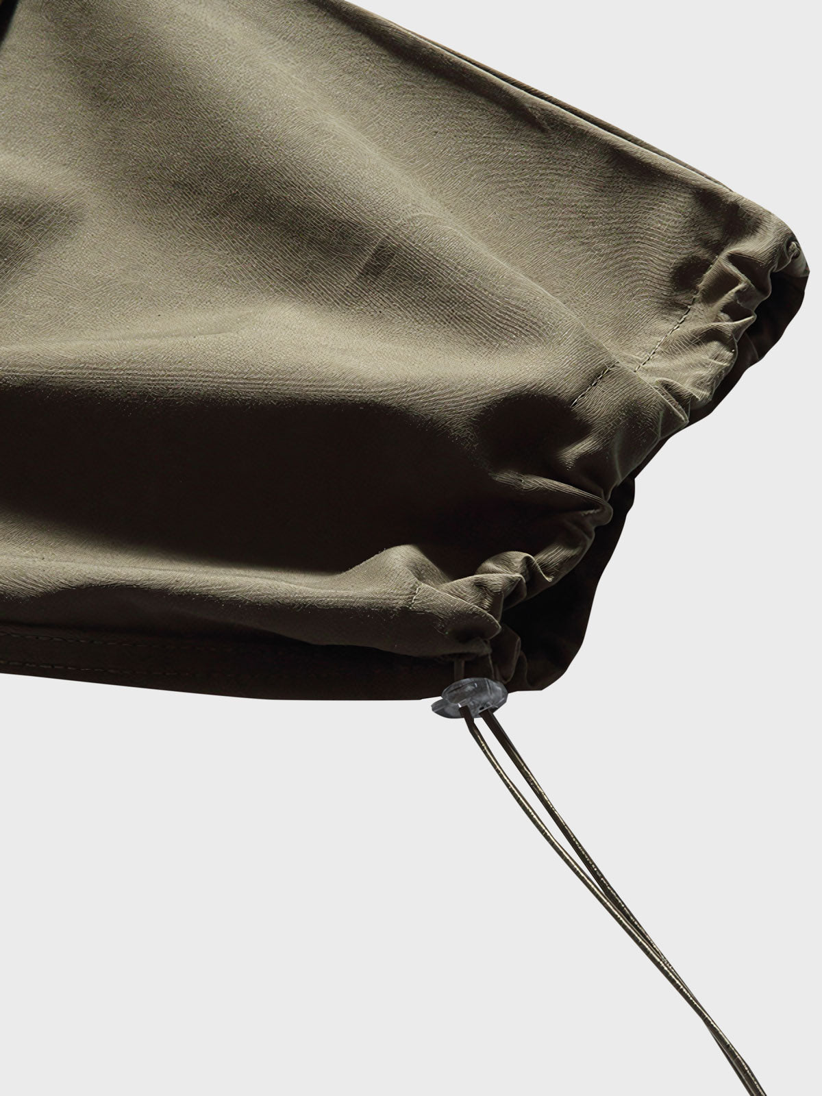 パンツにはダブルプリーツのデザインが採用されており、よりゆったりとしたフィット感を提供し、より多くの動きの自由と快適さを実現しています。裾のドローコードデザインは、着用者が必要に応じてフィット感を調整できるようにし、着用の柔軟性を高めています。