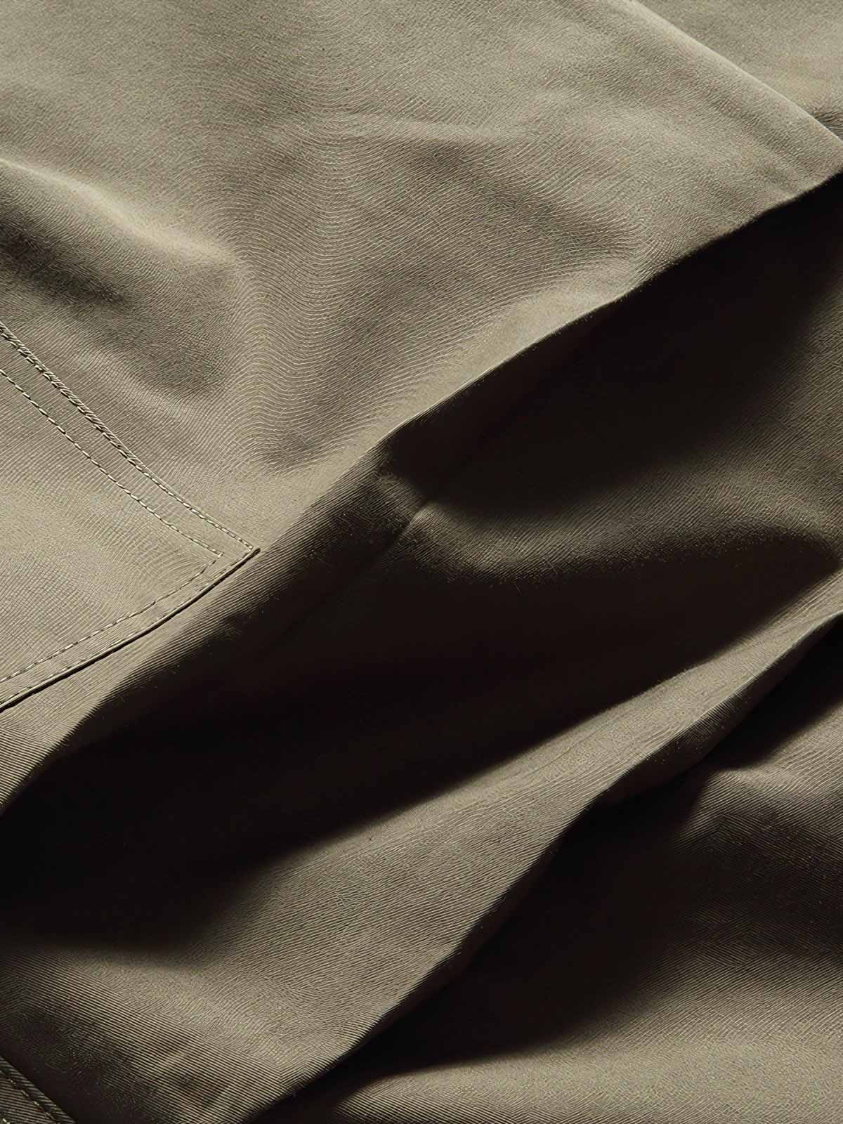 このパンツは、第二次世界大戦時のパラシューターの装備を原型にしており、現代のデザイン要素を取り入れています。レトロな色彩とカットは、当時の服の実用性と耐久性を表現しています。このデザインは、歴史への敬意を示しつつ、現代のレトロなワークスタイルへの追求を満たしています。