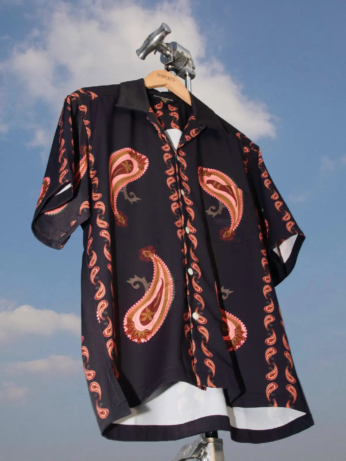 ペイズリー柄が目を引く、落ち感と通気性に優れたショートスリーブアロハシャツ。