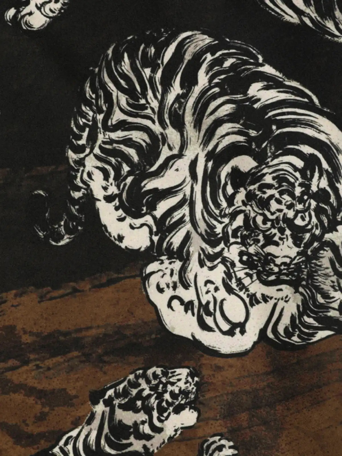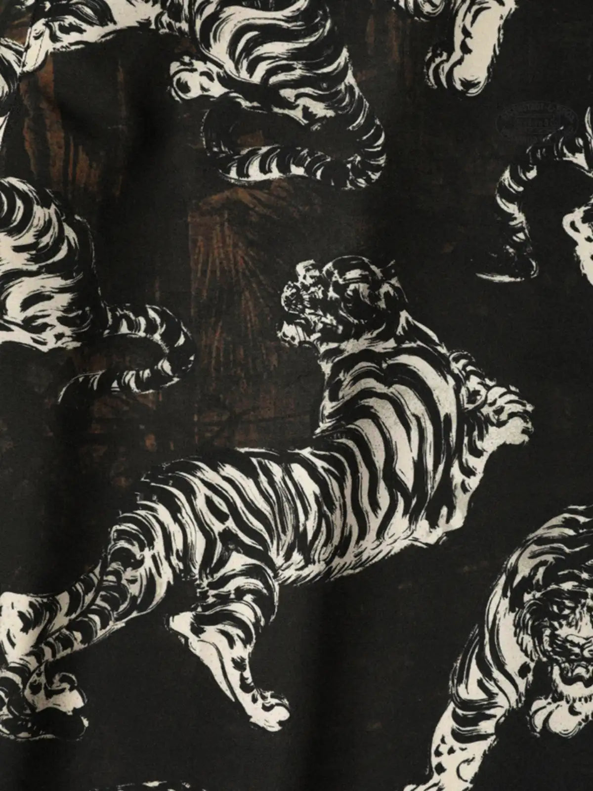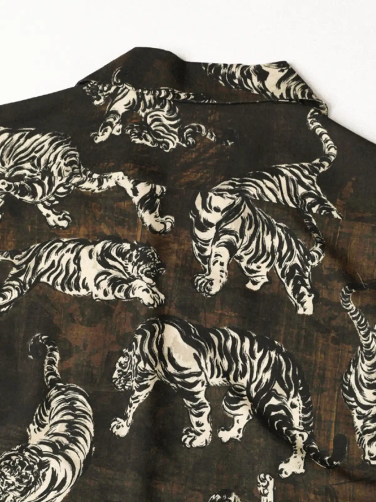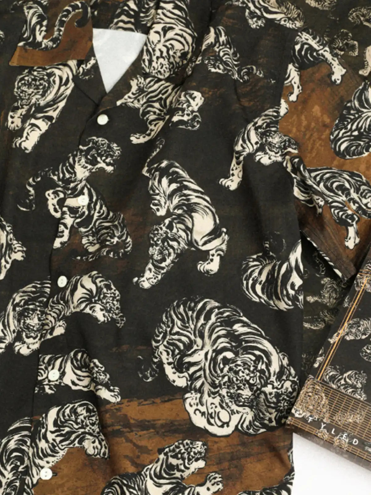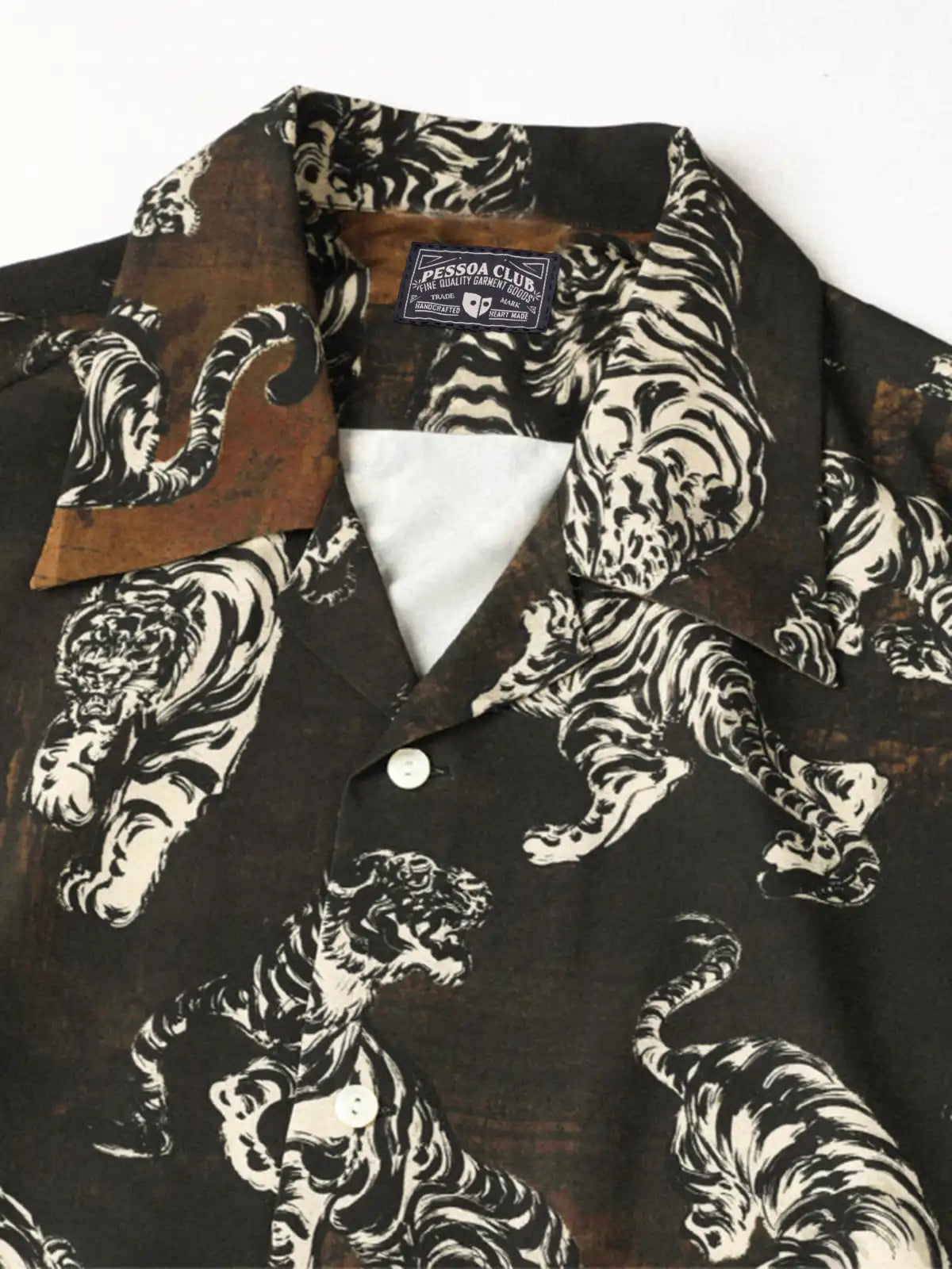 百虎柄が大胆に浮かび上がる、リヨセル混紡のゆったり古巴カラーシャツ。