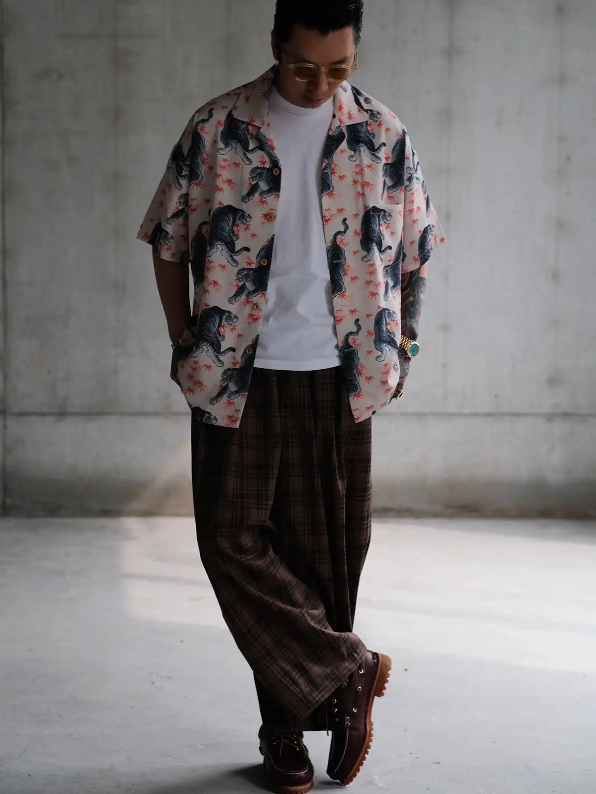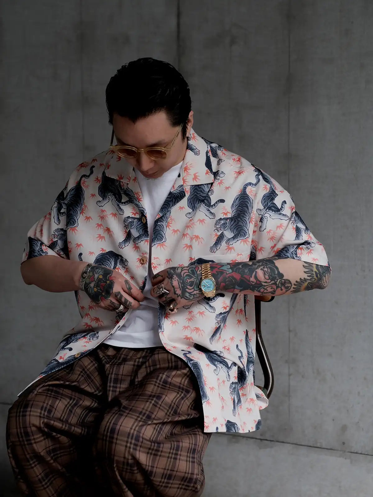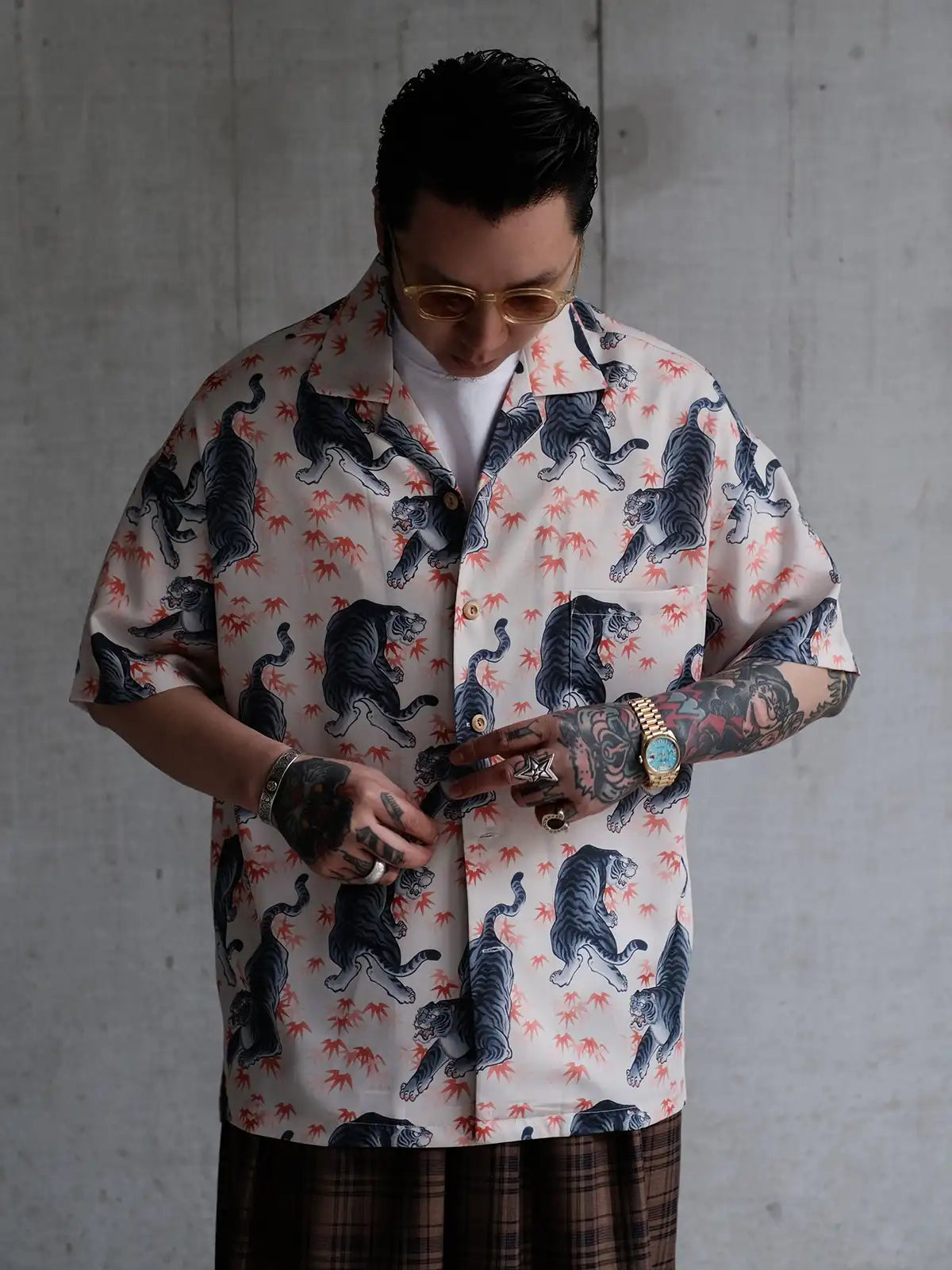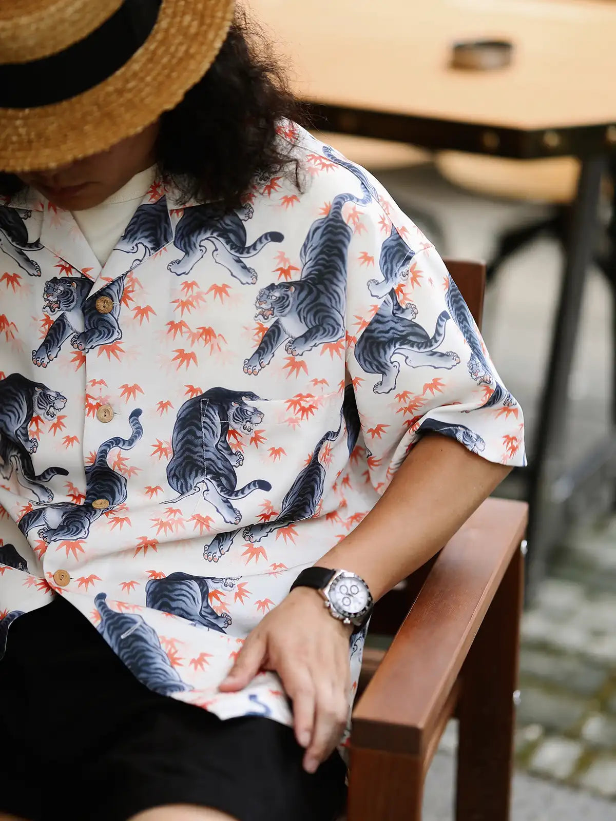 ジャパニーズテイストの虎柄が映える、リヨセル混紡のゆったりアロハシャツ。